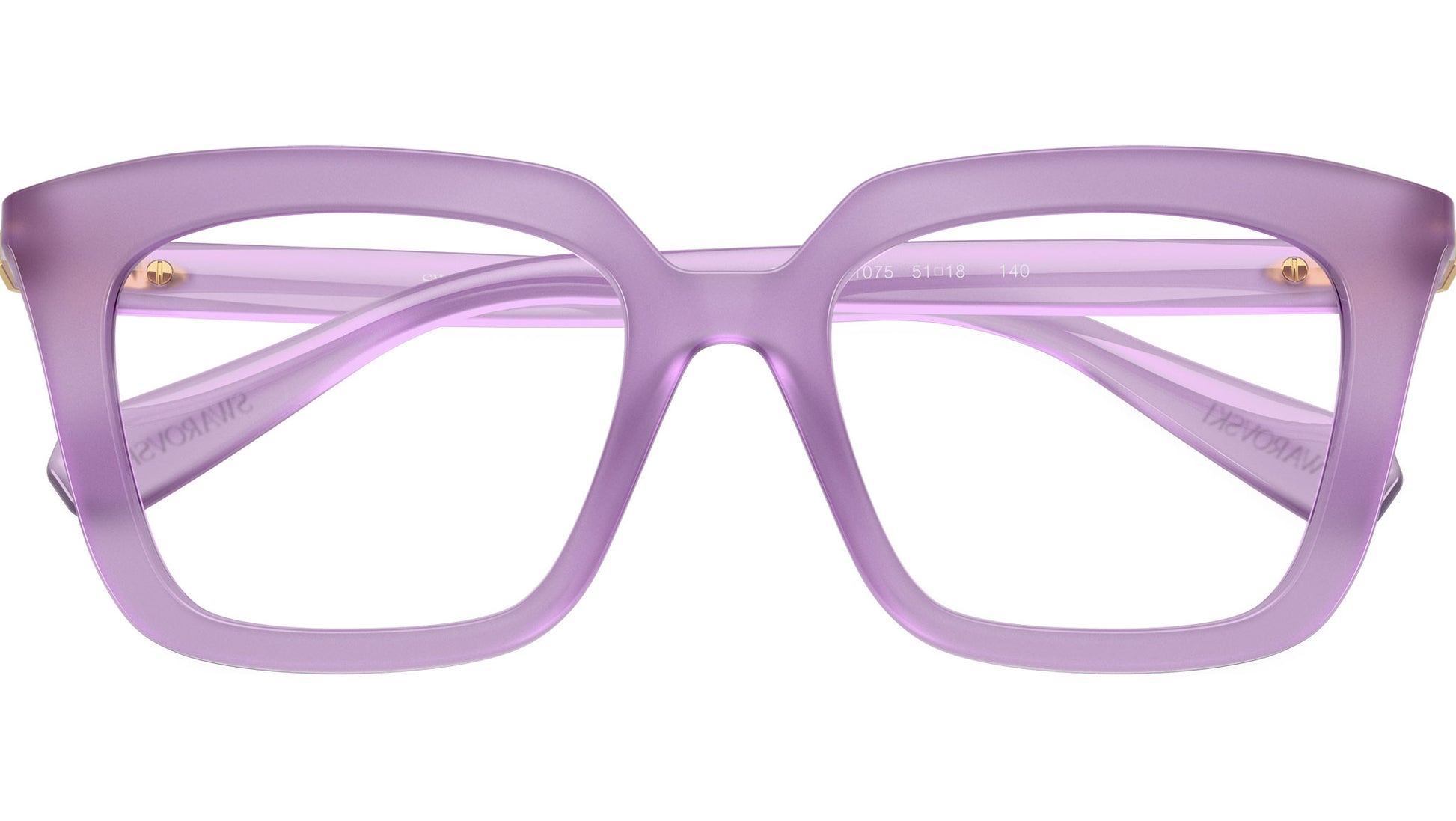Swarovski SK2043 1075 glasses for women, featuring milky lilac squared propionate frame and demo lenses. High bridge fit. Brand line: Science of Facets. Style code: SK2043. Color code: 1075. Authorized Swarovski online reseller. Your glasses will include the original case and accessories and are covered by a 12-month global warranty.