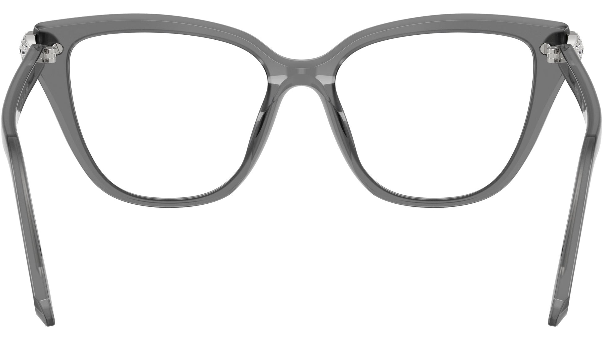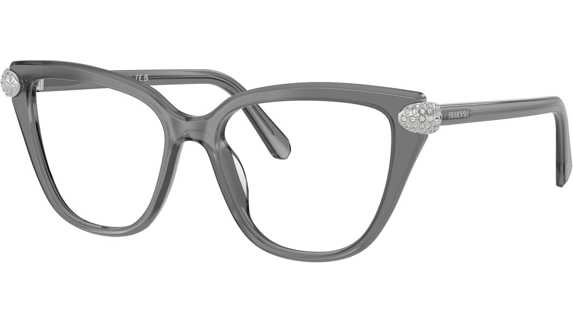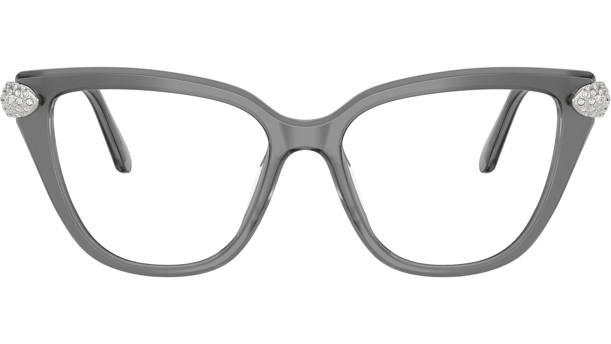 Swarovski SK2045 1072 glasses for women, featuring milky grey cat eye acetate frame and demo lenses. High bridge fit. Brand line: Science of Facets. Style code: SK2045. Color code: 1072. Authorized Swarovski online reseller. Your glasses will include the original case and accessories and are covered by a 12-month global warranty.