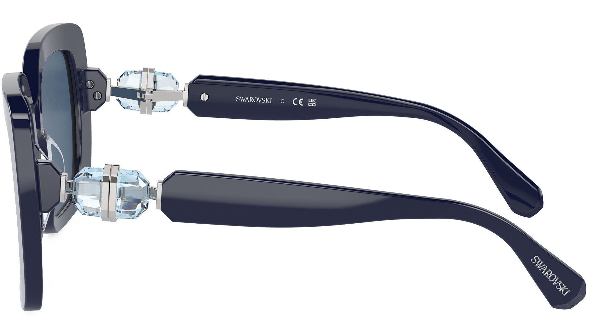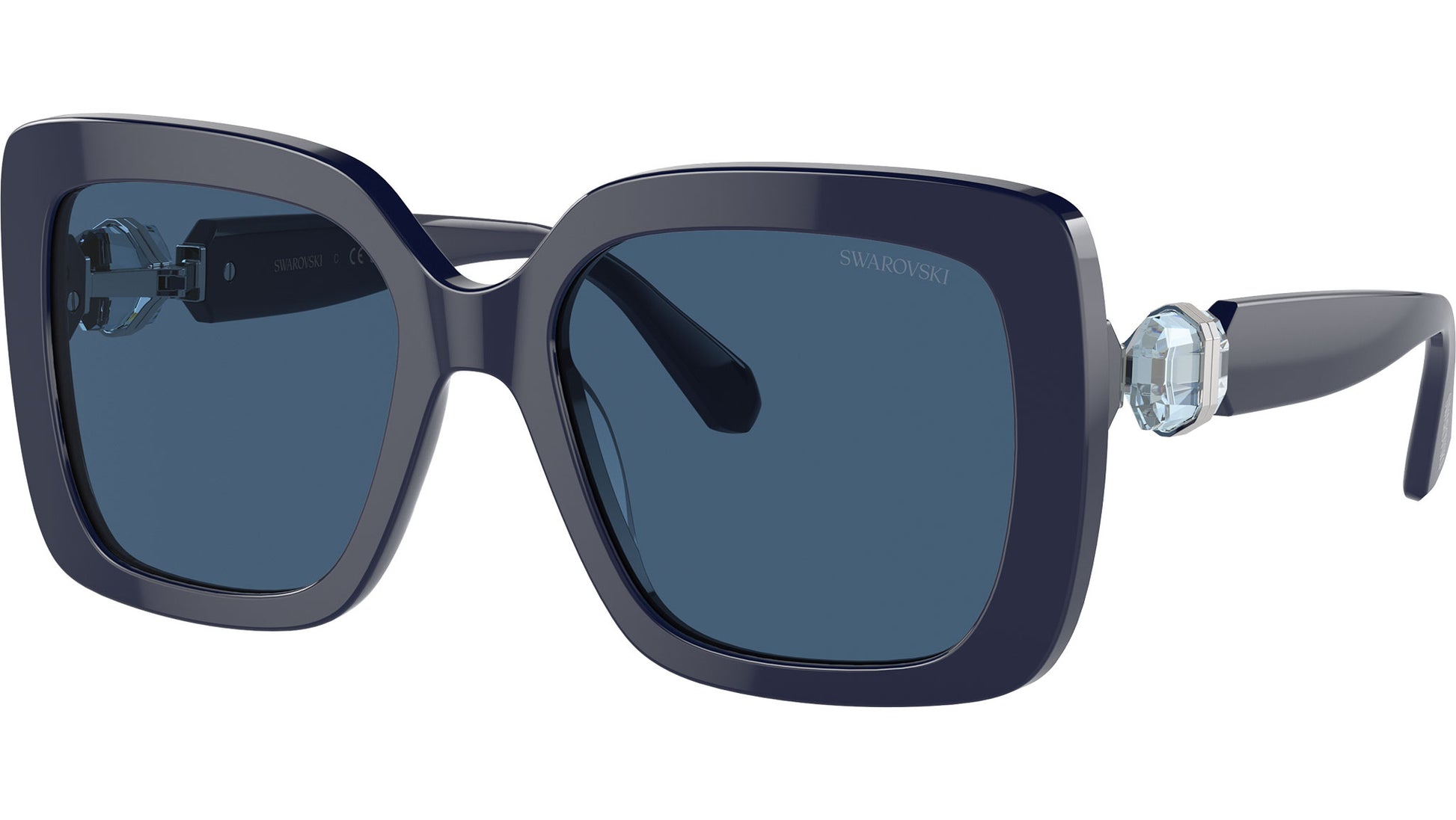 Swarovski sunglasses for women model 6001 featuring opal blue full rim acetate frame and base 4 dark blue lenses. High bridge fit. Frame line: Science of Facets. Brand code: 0SK6001. Color code: 100455. Authorised Swarovski Eyewear Online Reseller. Your glasses will come including the original case and accessories and will be covered by 12 month global warranty.