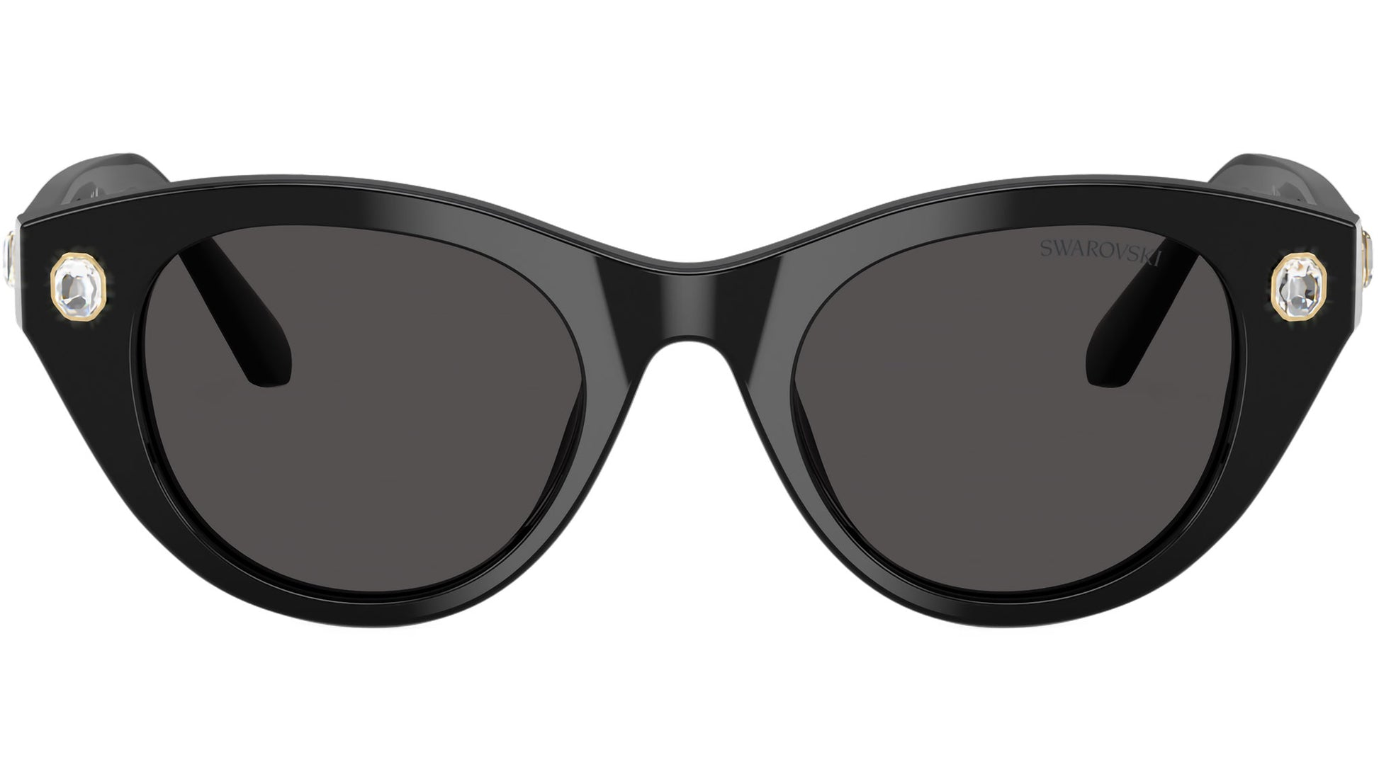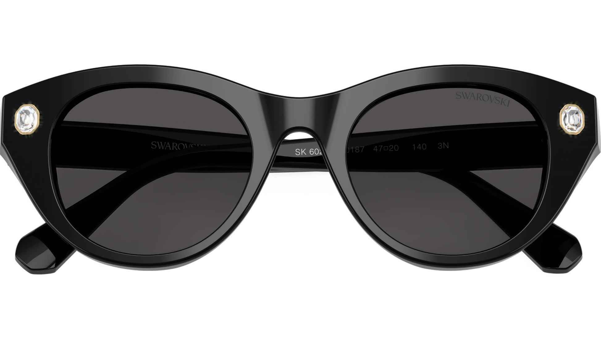 Swarovski sunglasses for women model 6025 featuring black full rim acetate frame and base 4 dark grey lenses. High bridge fit. Frame line: Science of Facets. Brand code: 0SK6025. Color code: 100187. Authorised Swarovski Eyewear Online Reseller. Your glasses will come including the original case and accessories and will be covered by 12 month global warranty.