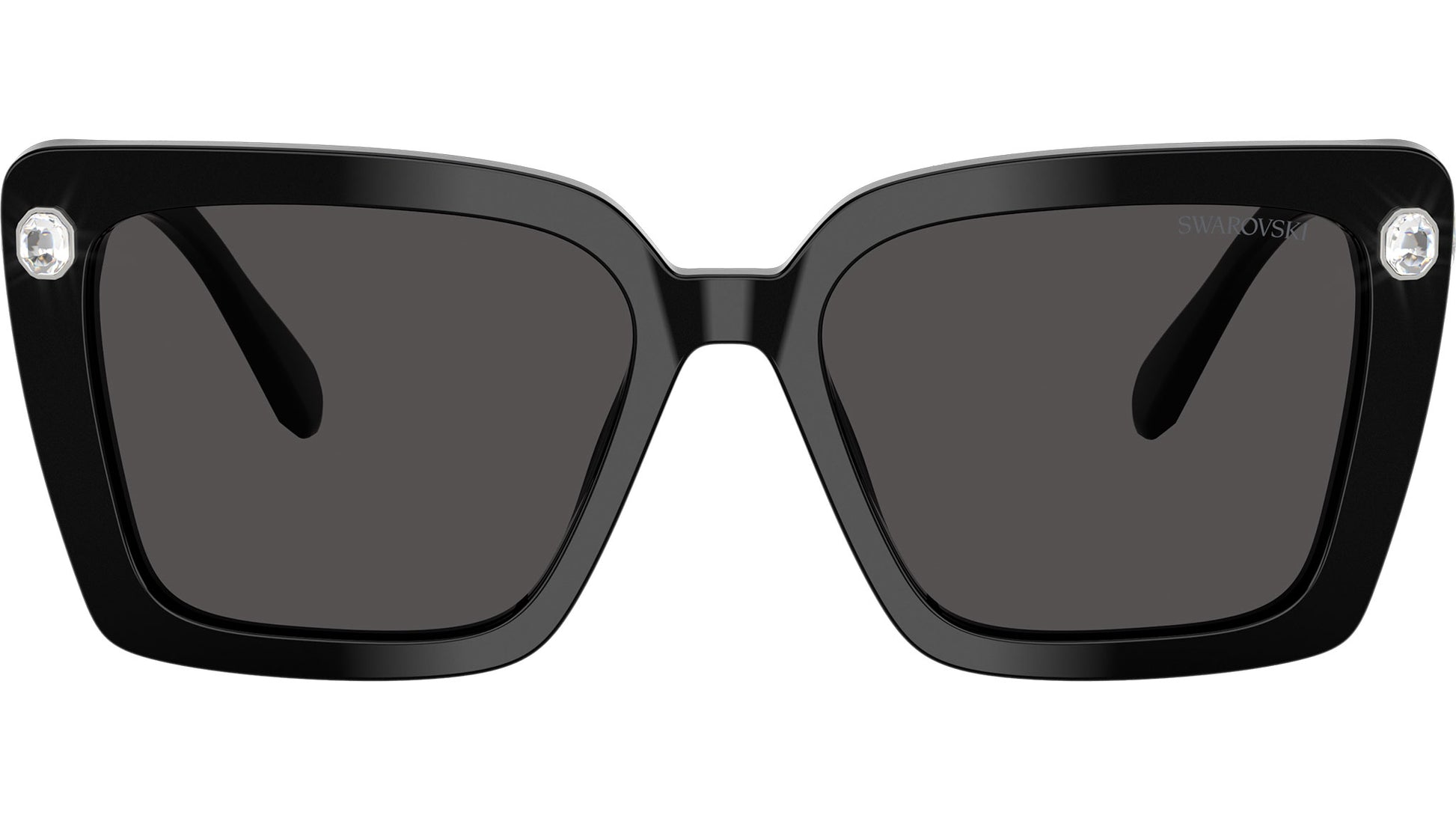 Swarovski sunglasses for women model 6032 featuring black full rim acetate frame and base 4 dark grey lenses. High bridge fit. Frame line: Science of Facets. Brand code: 0SK6032. Color code: 100187. Authorised Swarovski Eyewear Online Reseller. Your glasses will come including the original case and accessories and will be covered by 12 month global warranty.