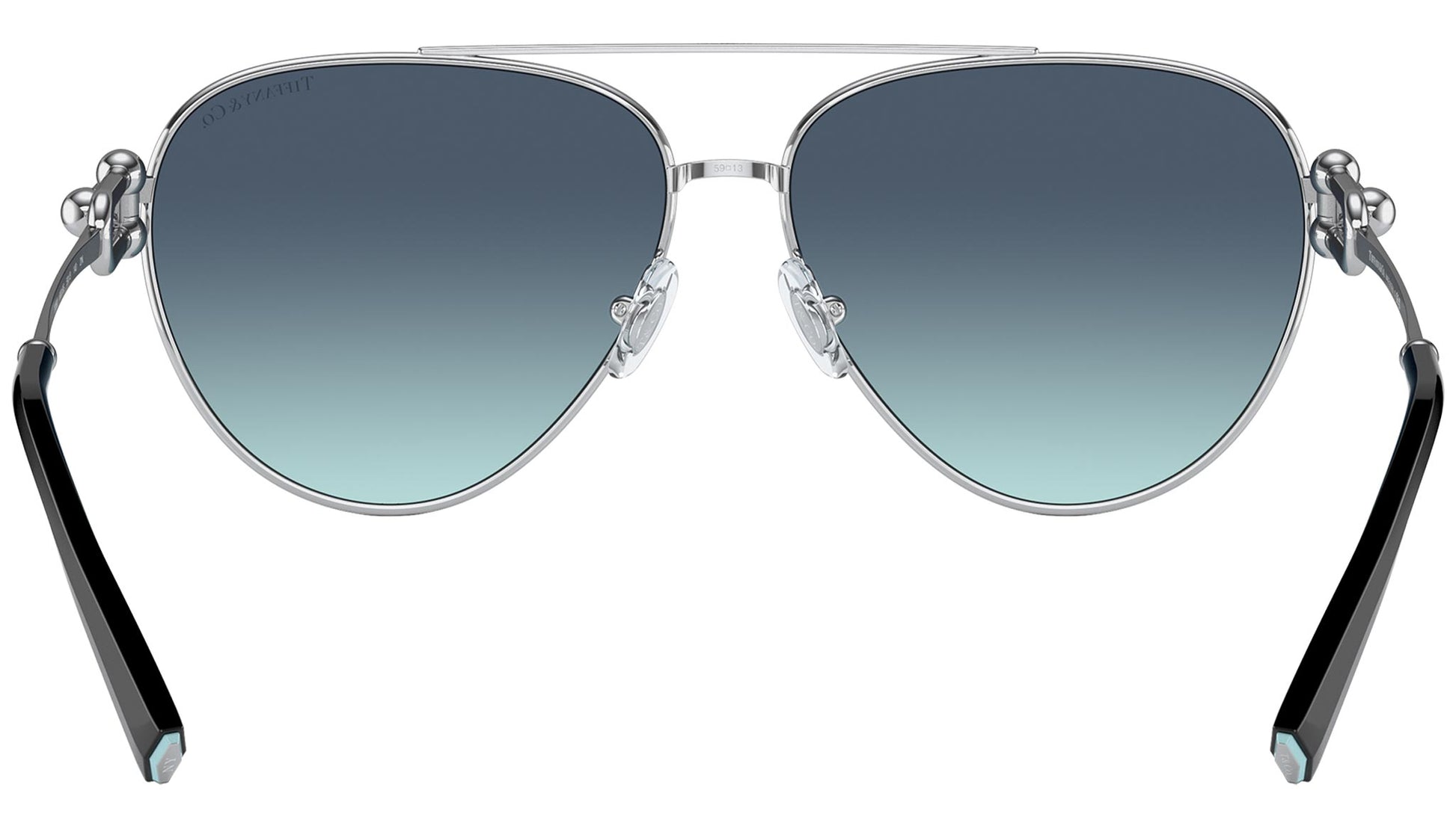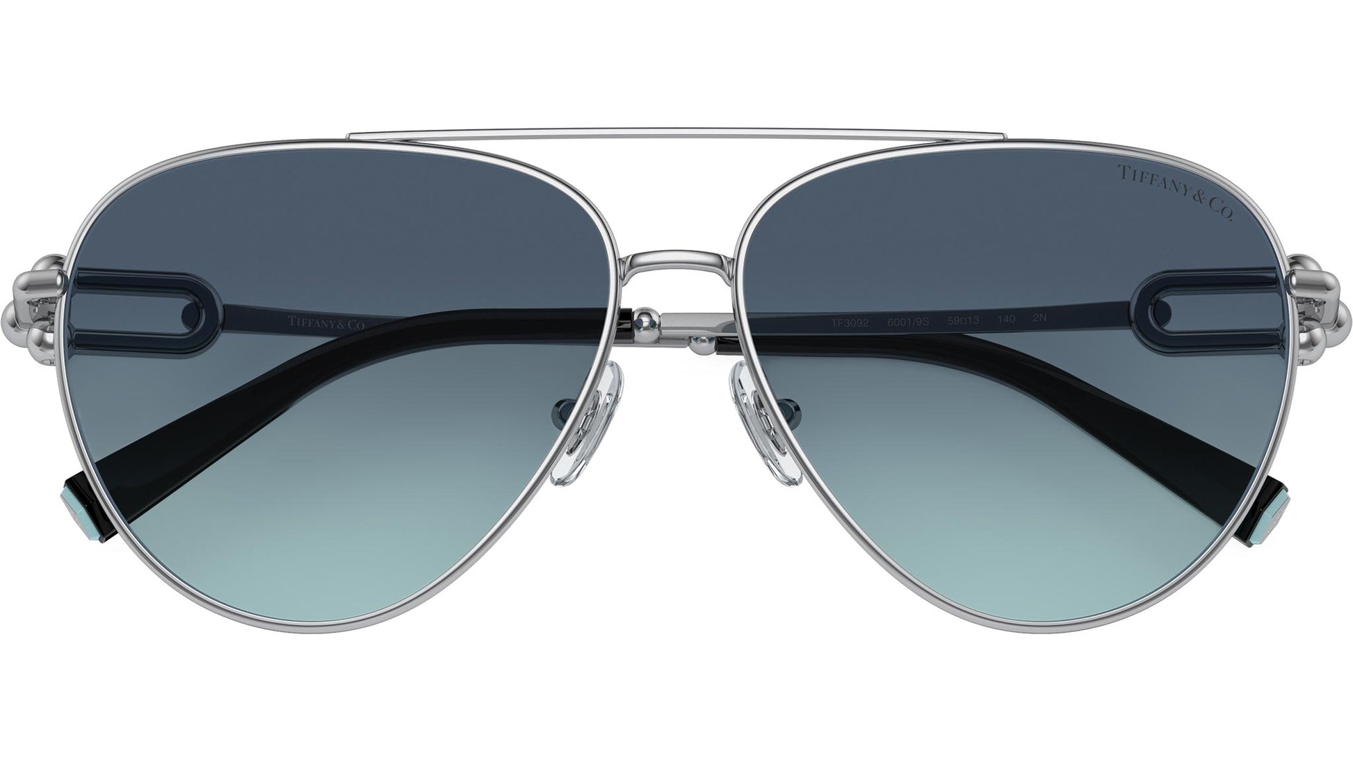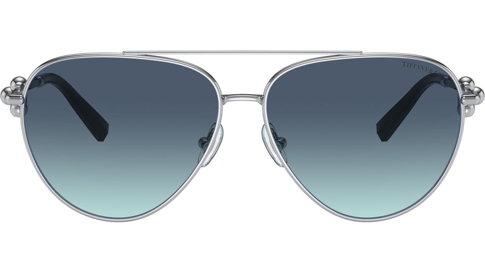 Tiffany sunglasses for women model 0TF3092 featuring silver full rim metal frame and base 4 azure gradient blue lenses. Adjustable nosepads. Frame line: Icons. Brand code: 0TF3092. Color code: 60019S. Authorised Tiffany Eyewear Online Reseller. Your glasses will come including the original case and accessories and will be covered by 12 month global warranty.