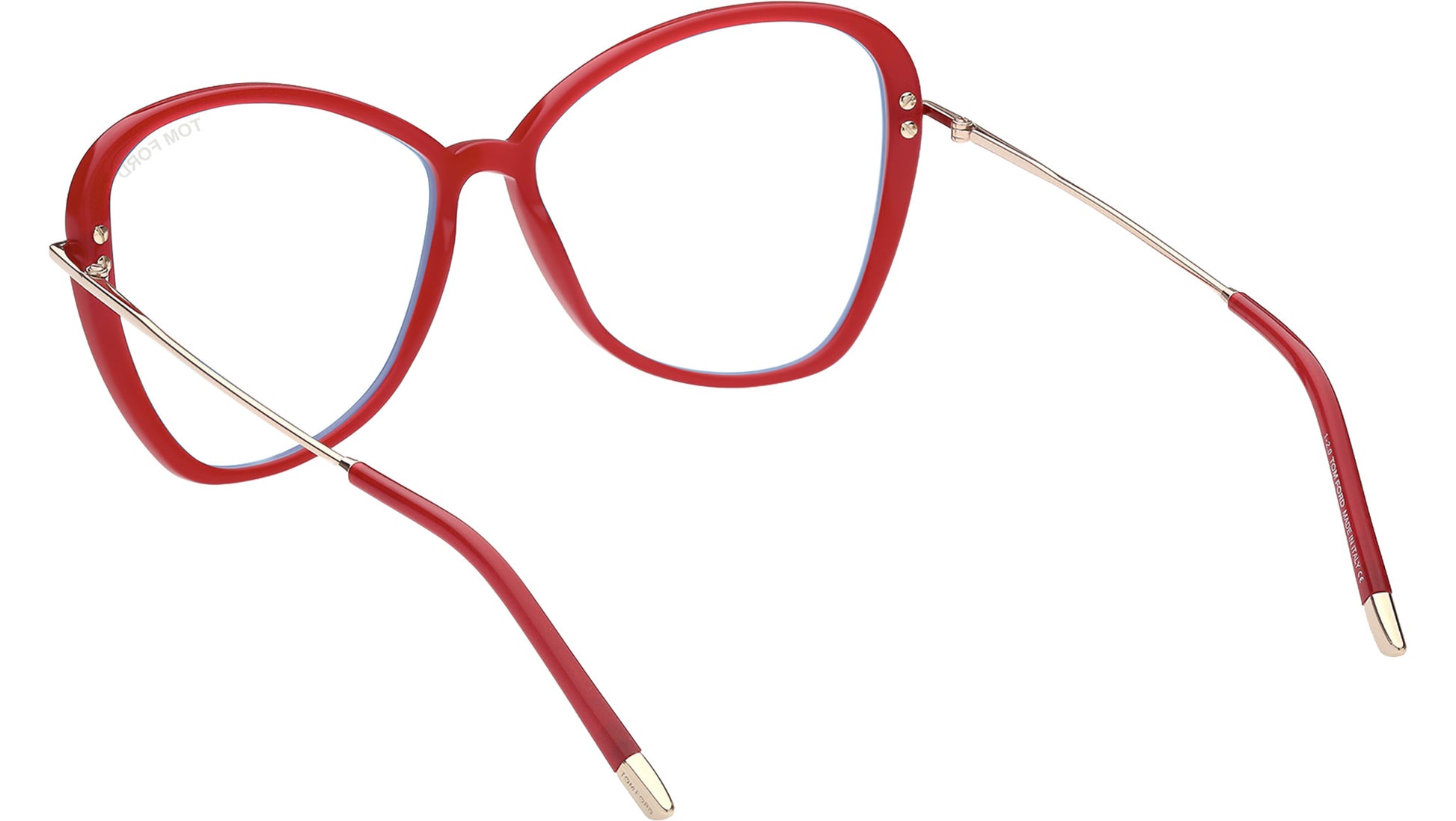 Tom Ford glasses for women model FT5769-B featuring fuchsia gold full-rim acetate frame and transparent demo lenses. Brand code: 5769-B. Color code: 077. Authorised Tom Ford Eyewear Online Reseller. Your glasses will include the original case and accessories and will be covered by a 12-month global warranty.