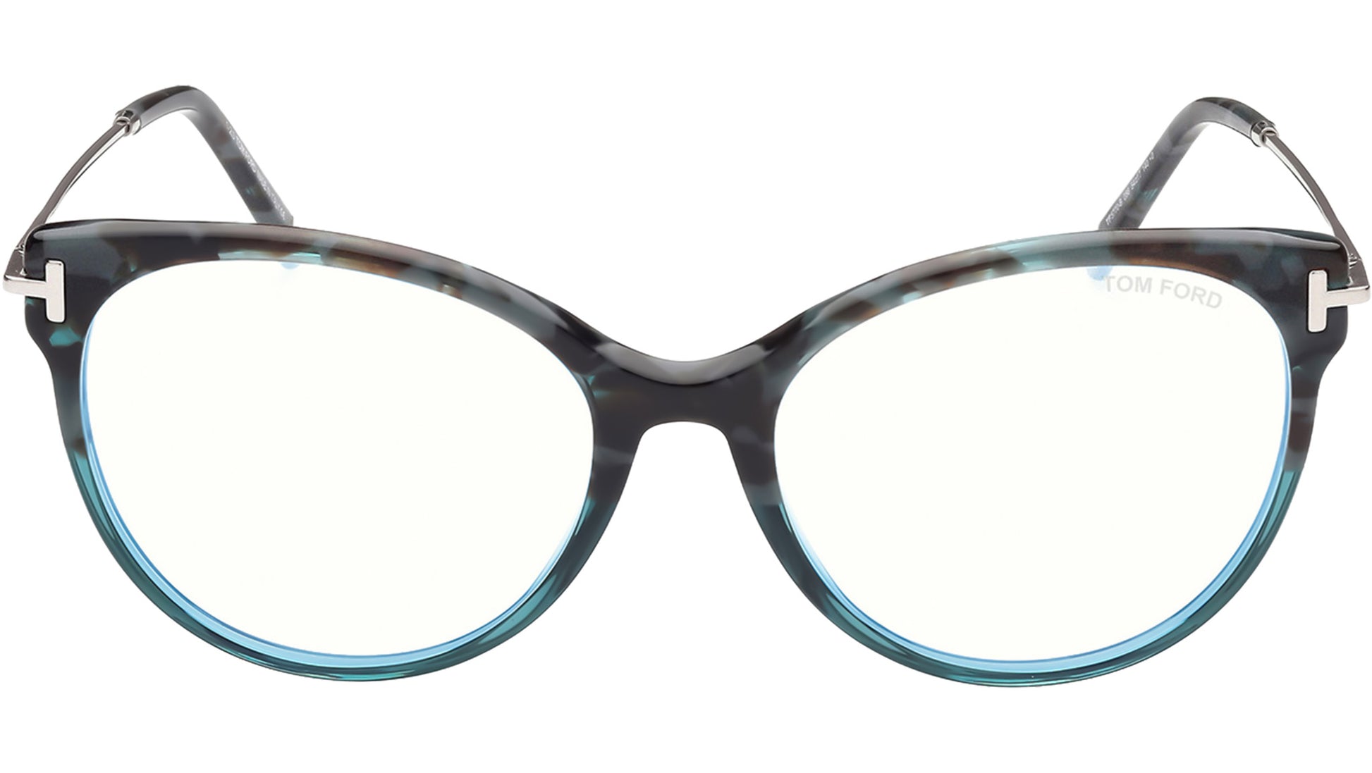 Tom Ford glasses for women model FT5770-B featuring havana blue full-rim acetate frame and transparent demo lenses. Brand code: 5770-B. Color code: 056. Authorised Tom Ford Eyewear Online Reseller. Your glasses will include the original case and accessories and will be covered by a 12-month global warranty.