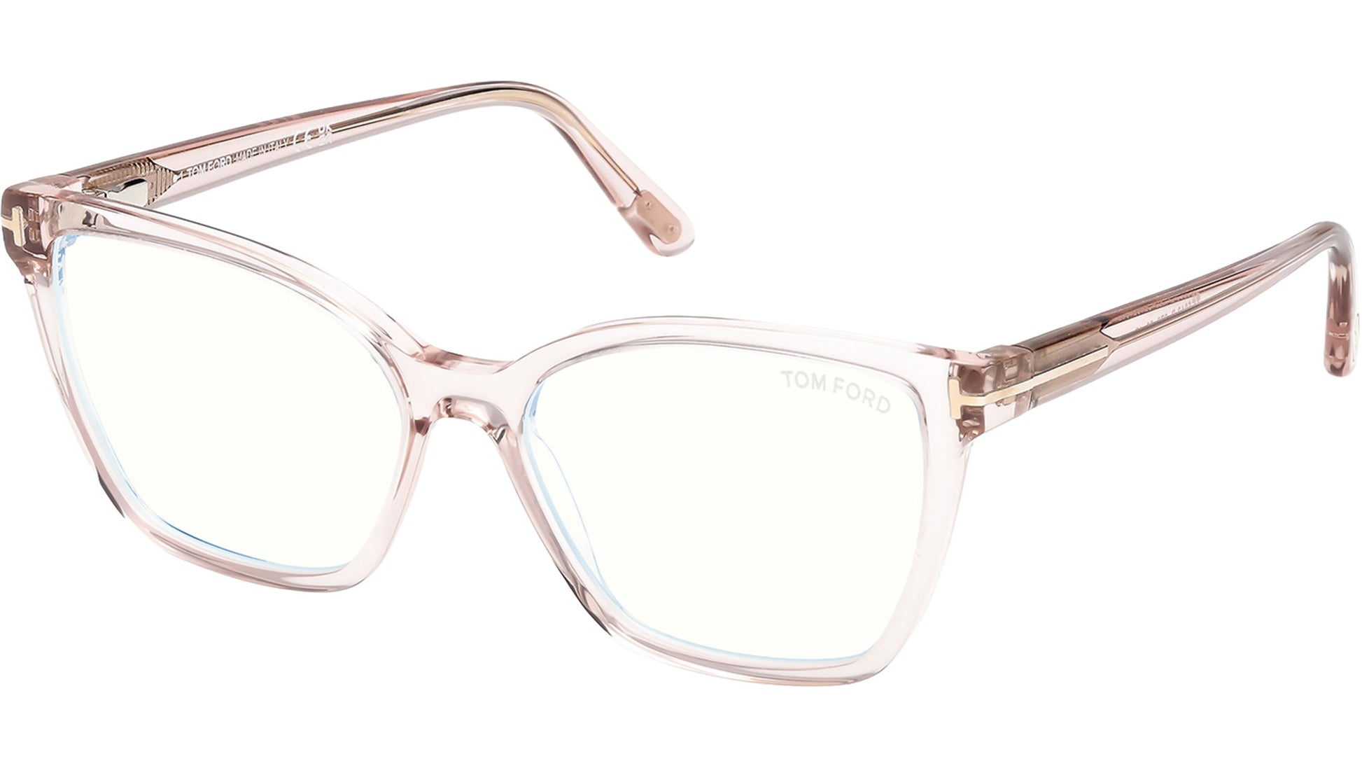 Tom Ford glasses for women model FT5812-B featuring pink full-rim acetate frame and transparent demo lenses. Brand code: 5812-B. Color code: 072. Authorised Tom Ford Eyewear Online Reseller. Your glasses will include the original case and accessories and will be covered by a 12-month global warranty.