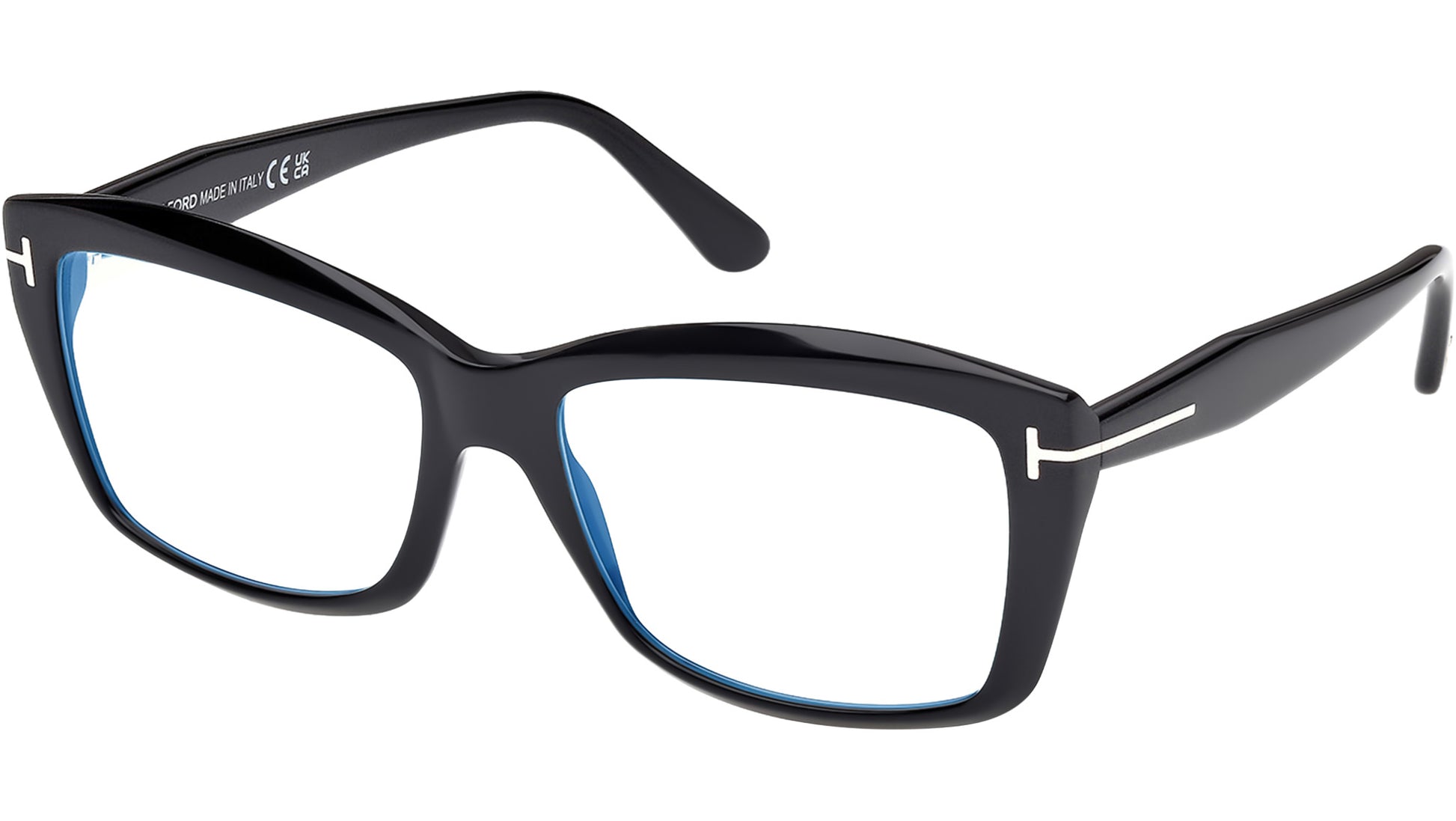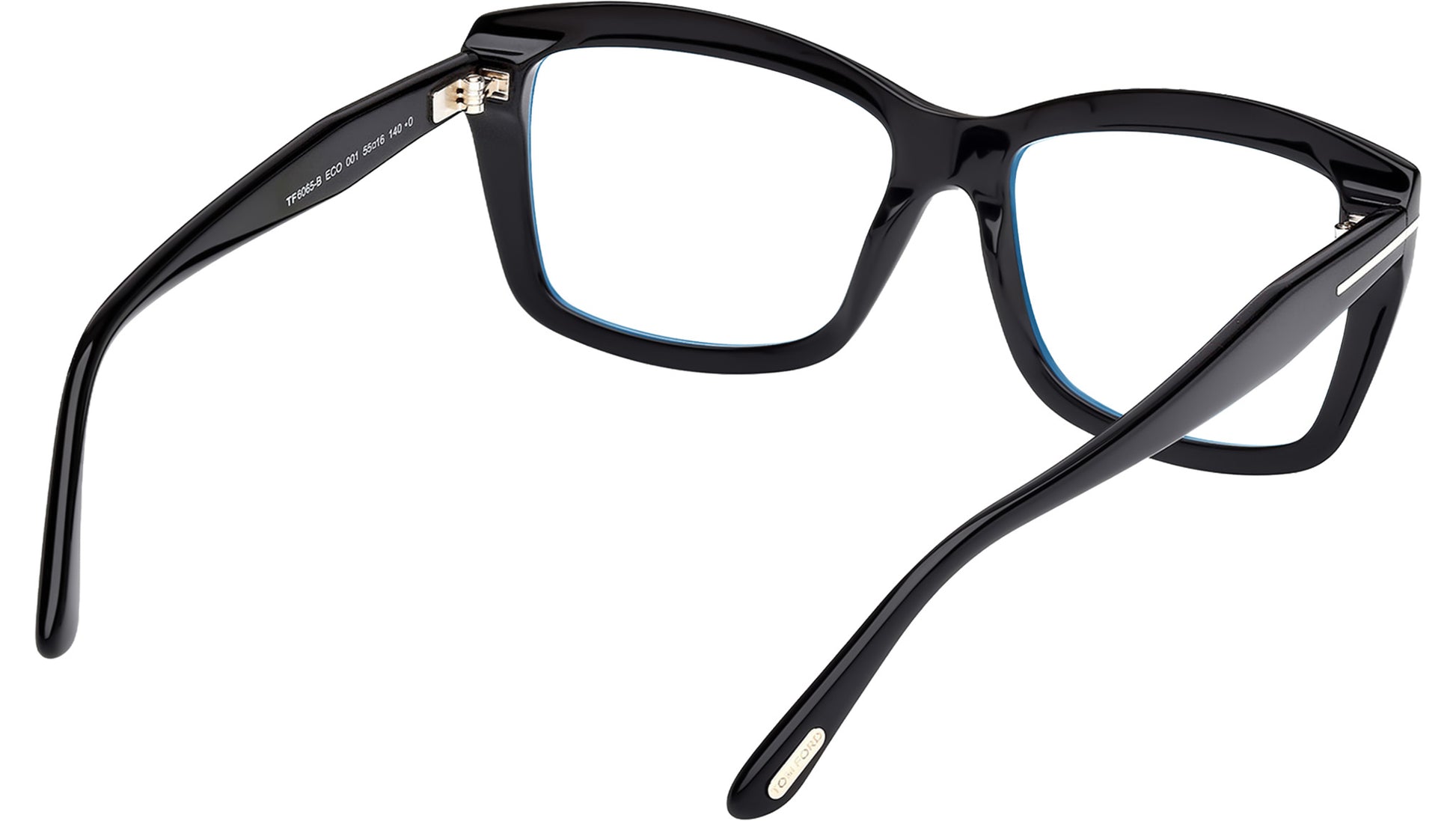 Tom Ford glasses for women model FT6065-B featuring shiny black full-rim acetate frame and transparent demo lenses. Brand code: 6065-B. Color code: 001. Authorised Tom Ford Eyewear Online Reseller. Your glasses will include the original case and accessories and will be covered by a 12-month global warranty.