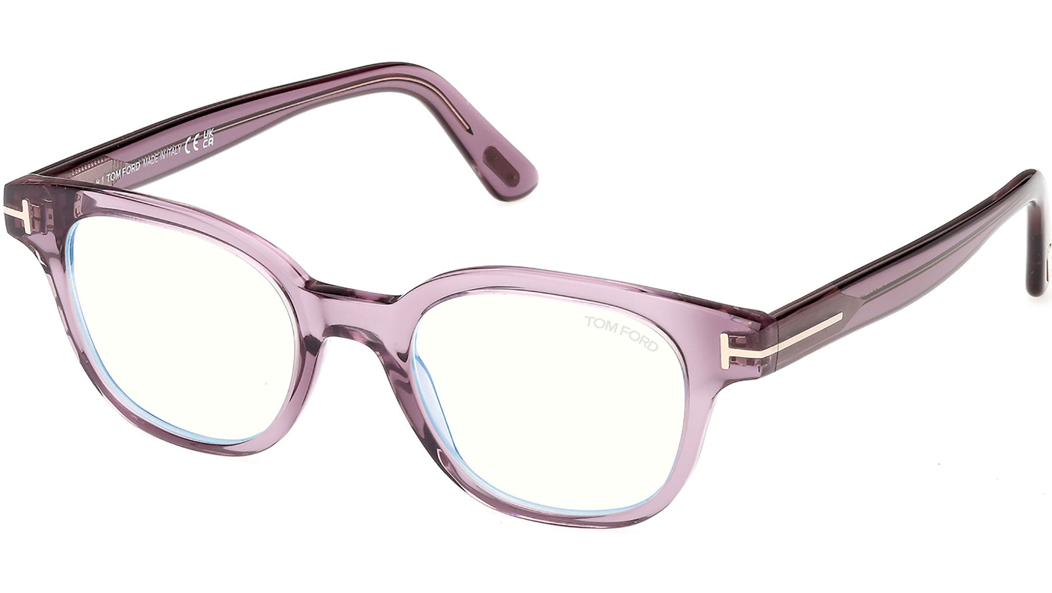 Tom Ford glasses for men and women model FT6130-B featuring shiny violet full-rim acetate frame and transparent demo lenses. Brand code: 6130-B. Color code: 081. Authorised Tom Ford Eyewear Online Reseller. Your glasses will include the original case and accessories and will be covered by a 12-month global warranty.