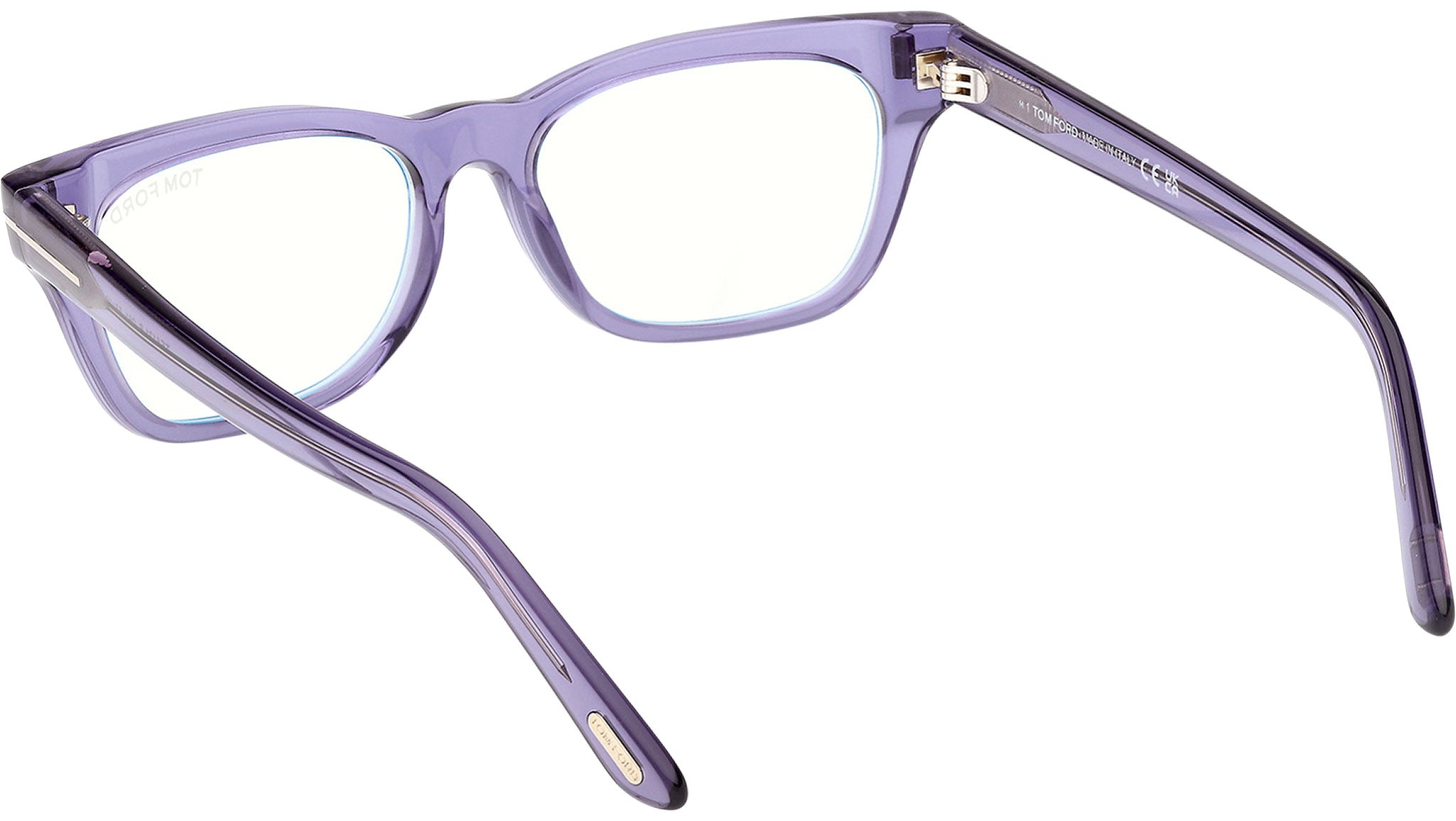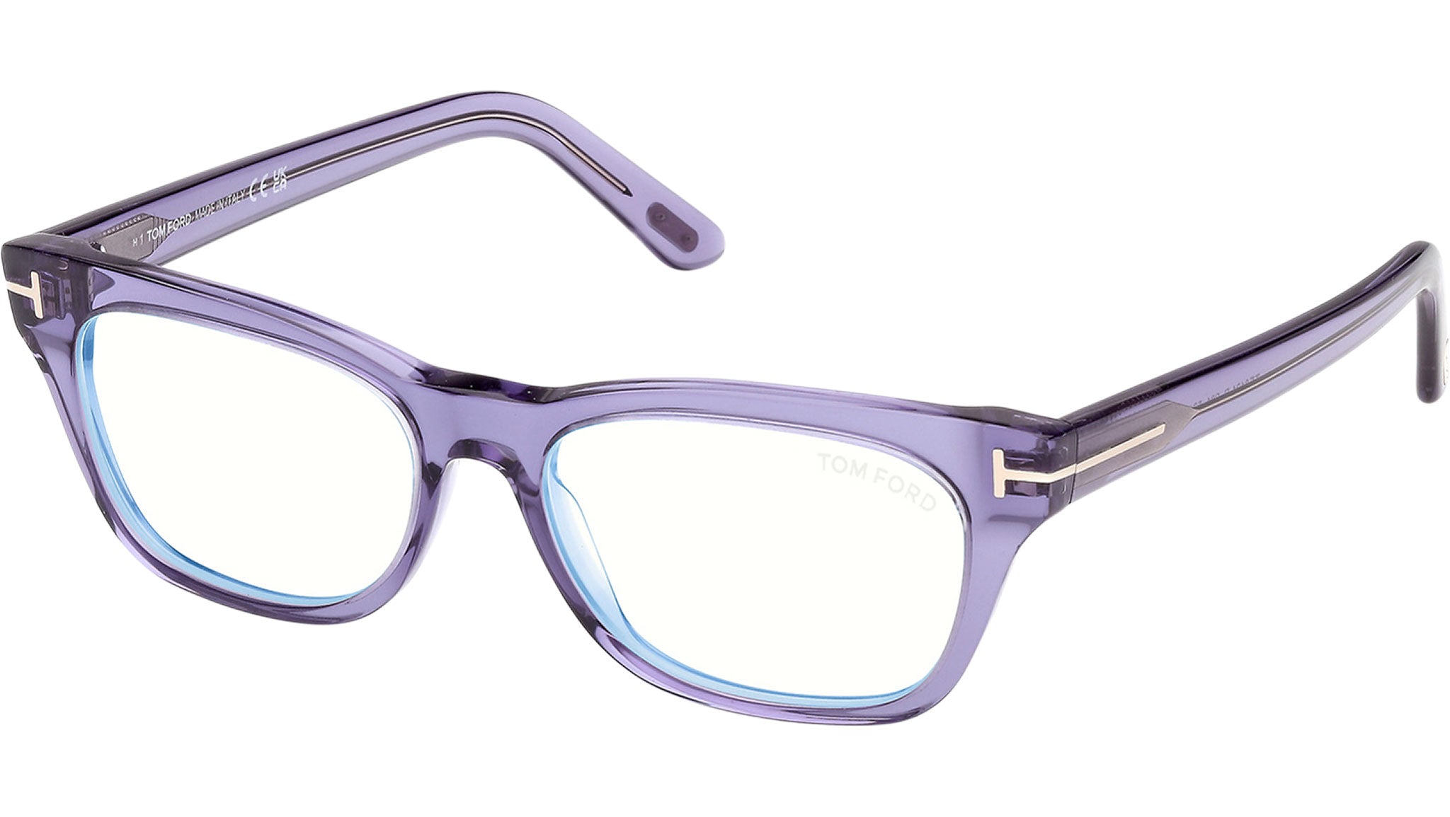 Tom Ford glasses for men and women model FT6131-B featuring shiny violet full-rim acetate frame and transparent demo lenses. Brand code: 6131-B. Color code: 081. Authorised Tom Ford Eyewear Online Reseller. Your glasses will include the original case and accessories and will be covered by a 12-month global warranty.