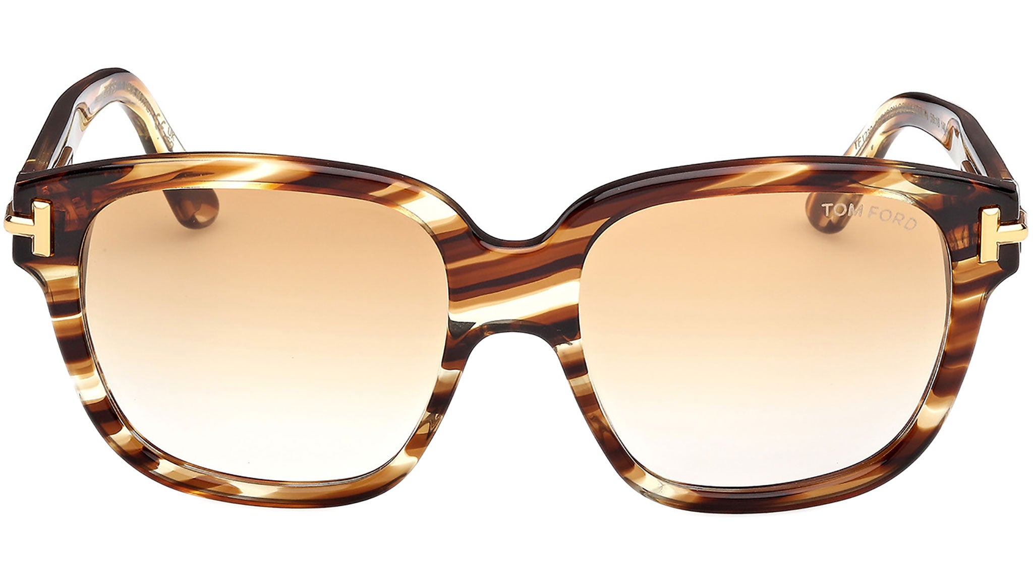 Tom Ford Icon sunglasses for women model FT1236 featuring coloured havana full-rim acetate frame and gradient brown lenses. Brand code: 1236. Color code: 55F. Authorised Tom Ford Online Reseller. Your glasses will include the original case and accessories and will be covered by a 12-month global warranty.