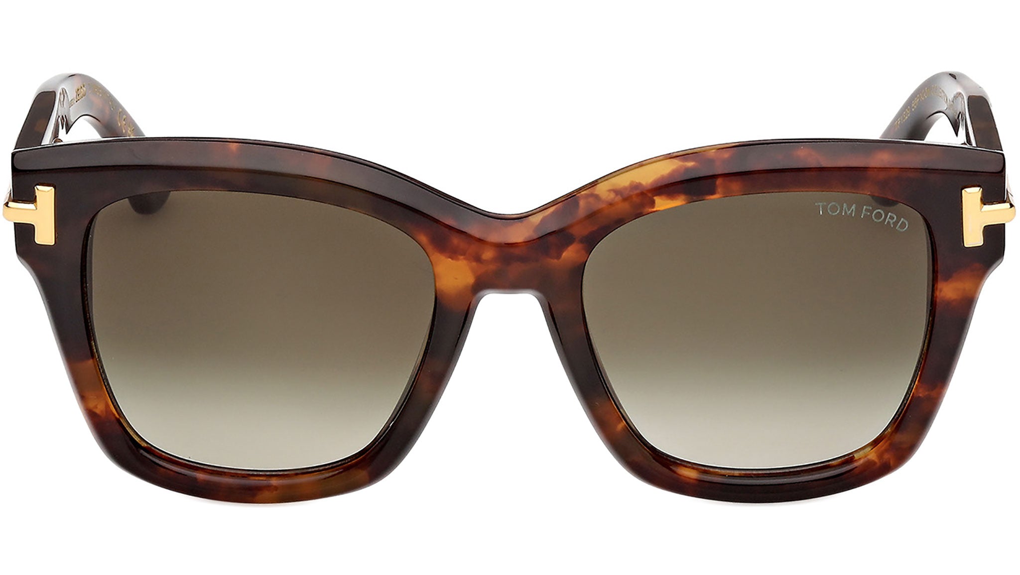 Tom Ford Icon sunglasses for women model FT1329 featuring coloured havana full-rim acetate frame and gradient green lenses. Brand code: 1329. Color code: 55P. Authorised Tom Ford Online Reseller. Your glasses will include the original case and accessories and will be covered by a 12-month global warranty.