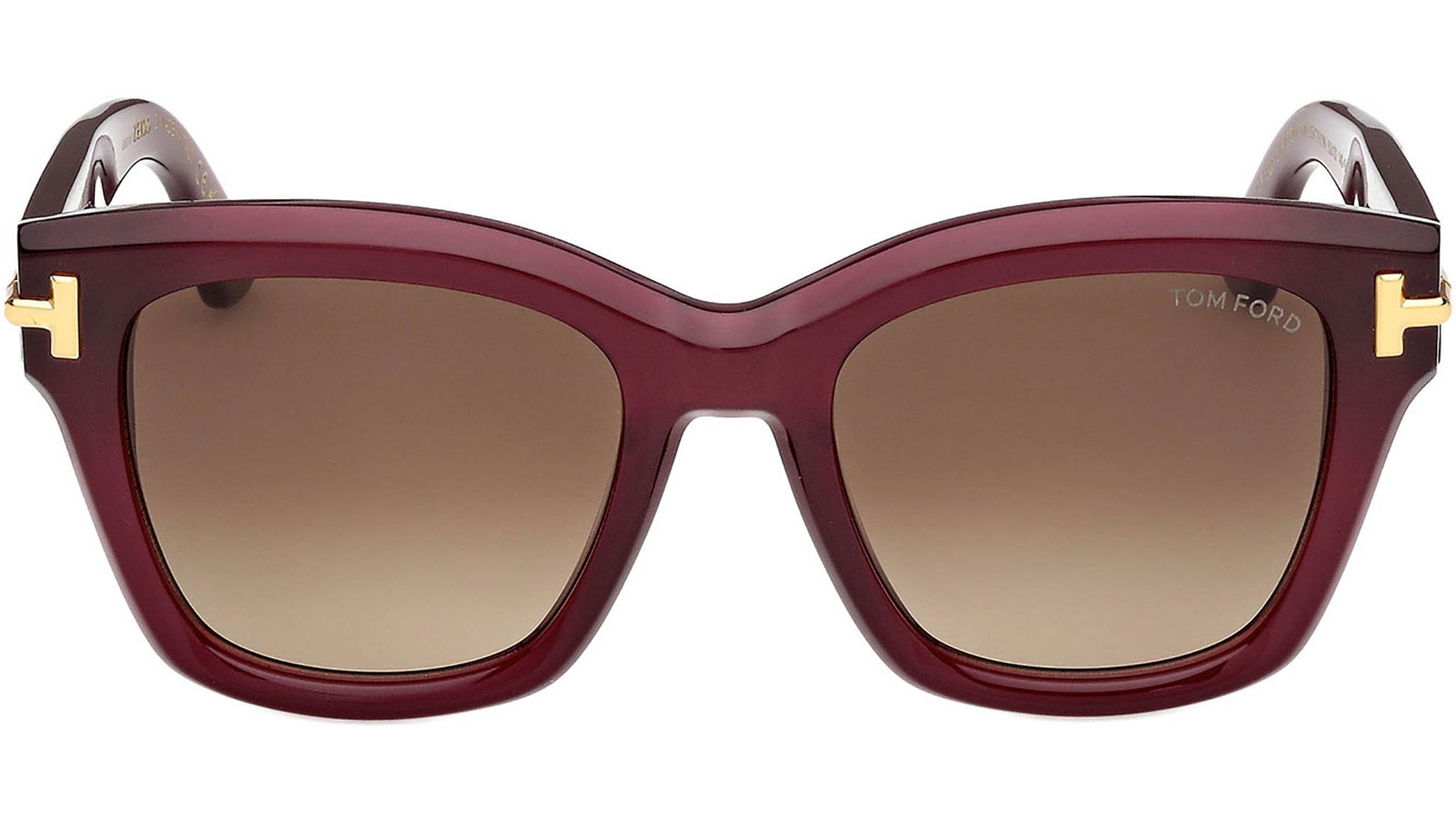 Tom Ford Icon sunglasses for women model FT1329 featuring shiny violet full-rim acetate frame and gradient brown lenses. Brand code: 1329. Color code: 81F. Authorised Tom Ford Online Reseller. Your glasses will include the original case and accessories and will be covered by a 12-month global warranty.