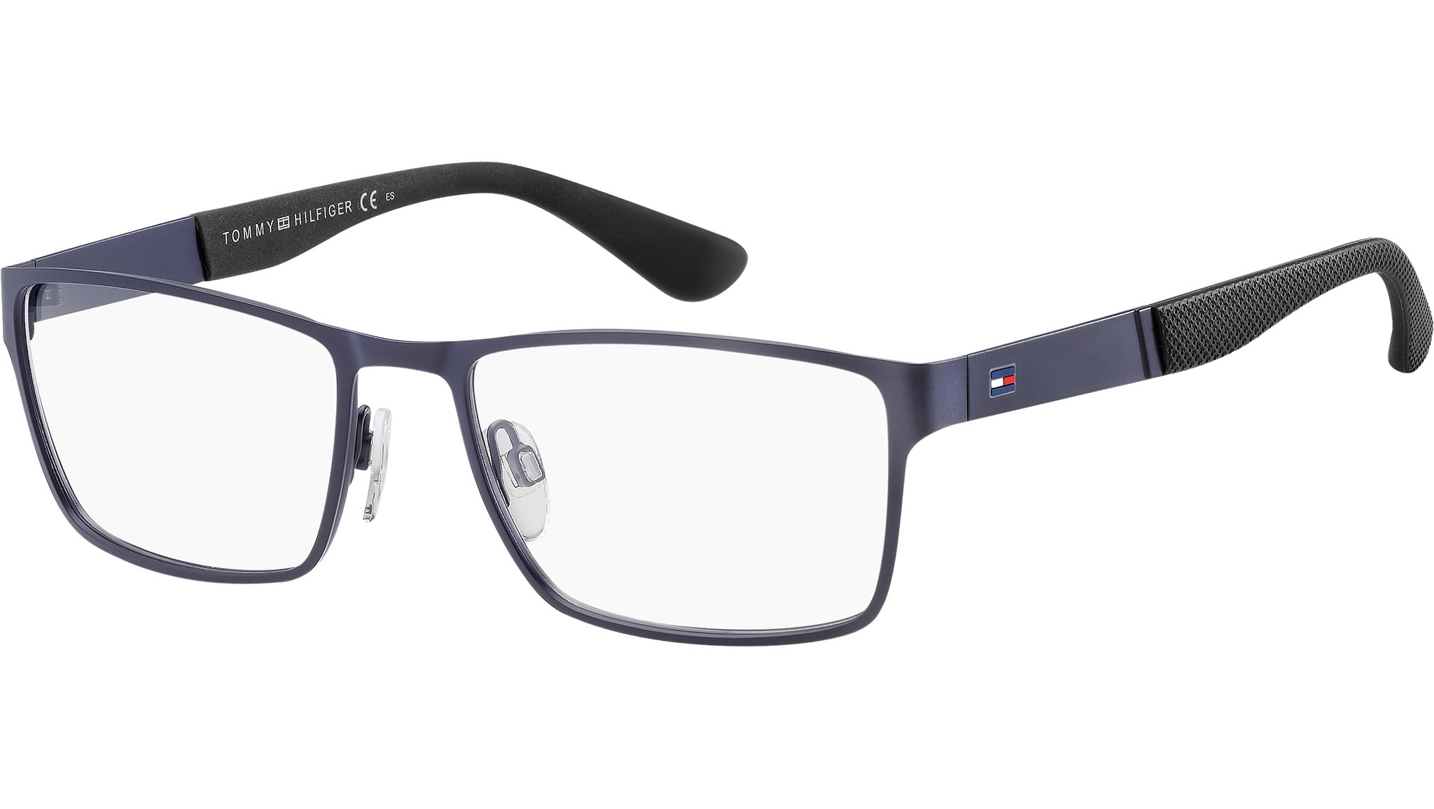 Tommy Hilfiger TH 1543 PJP glasses featuring blue rectangular metal frame and demo lenses. The easy-to-wear design features metal temples and rubber end tips finished with the famous Polo texture for an innovative touch experience. A must-have for a sporty and refined look. Brand line: Sporty. Style code: 101045. Color code: PJP. Authorized Tommy Hilfiger online reseller. Your glasses will include the original case and accessories and are covered by a 12-month global warranty.