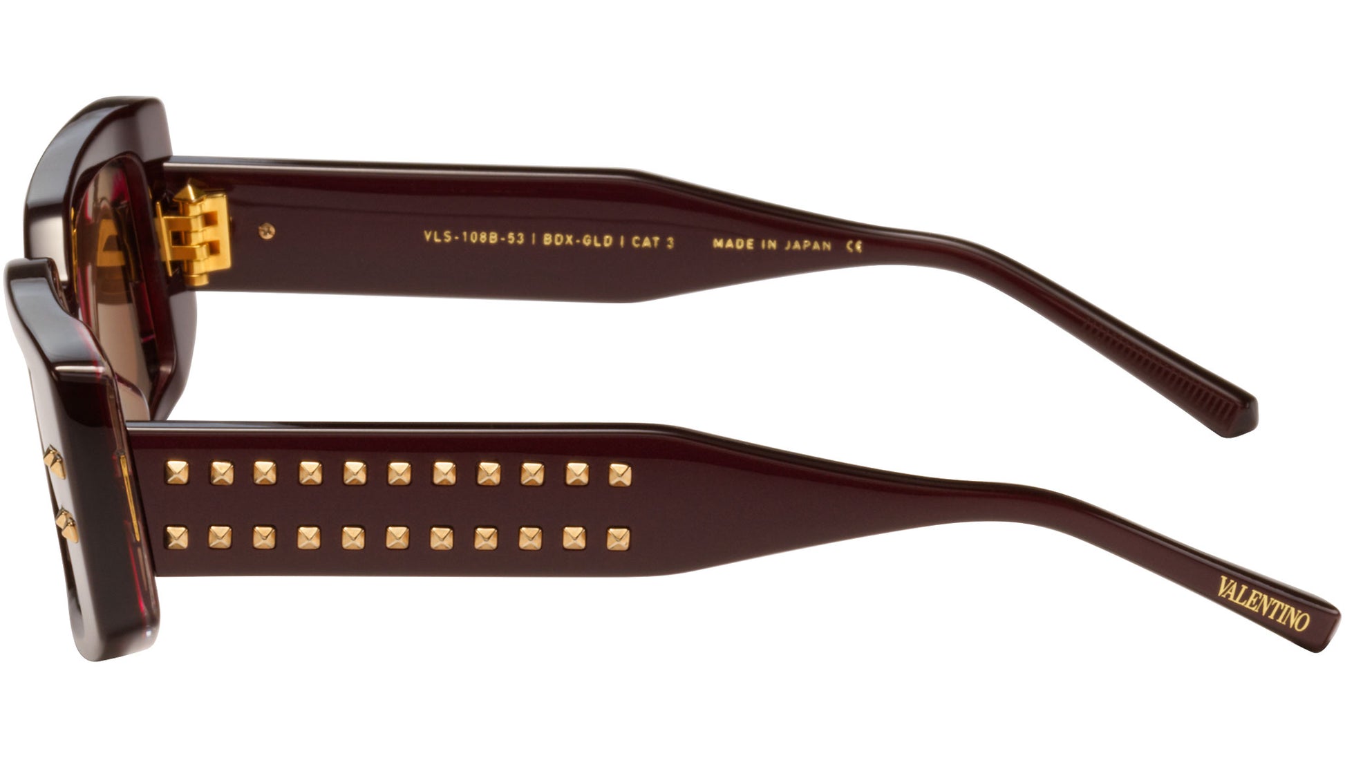 Notable design elements include chic clusters of iconic Valentino tridimensional titanium rockstuds on the front (8) and temples (22) that are hand-applied in the same generous proportions as Maison’s legendary handbags.