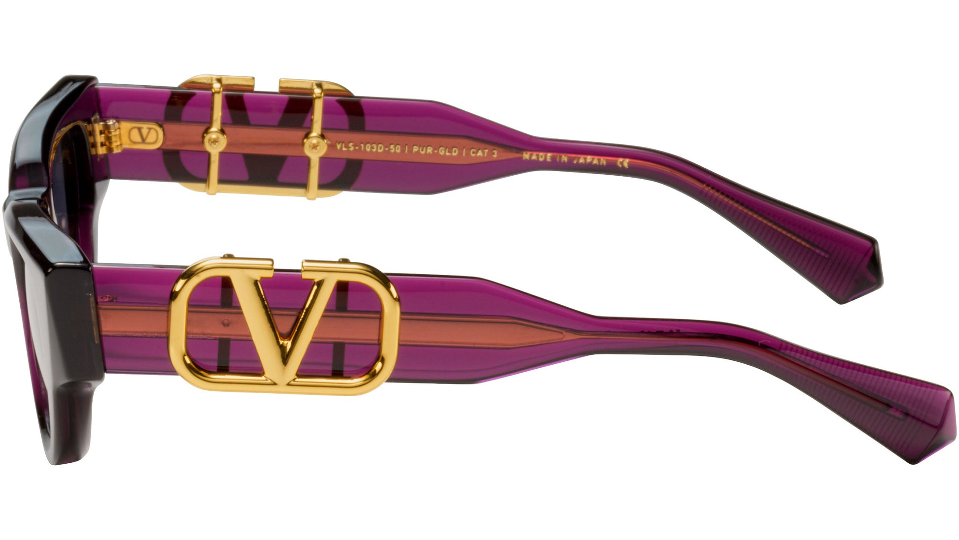 Featuring innovative tridimensional titanium VLogo buckle-style temple embellishments that are removable for a variety of looks, richly sculpted Rockstud-inspired temple tips, high-quality sun lenses in complimentary tones, and incomparable Made in Japan craftsmanship, Valentino Due is an undisputed contemporary object of desire.