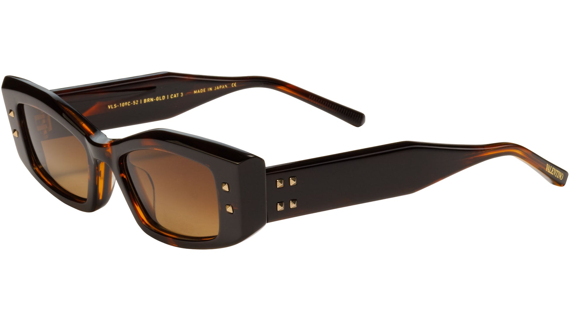 Functional embellishments include chic clusters of iconic Valentino tridimensional titanium Rockstud rivets on the front as well as on the richly sculpted, high-volume temples that narrow to Rockstud-inspired temple tips where the Maison's maker’s symbol is ultimately revealed. Hypnotically beguiling and utterly unforgettable, Valentino Quattro offers a sophisticated everyday aesthetic experience.