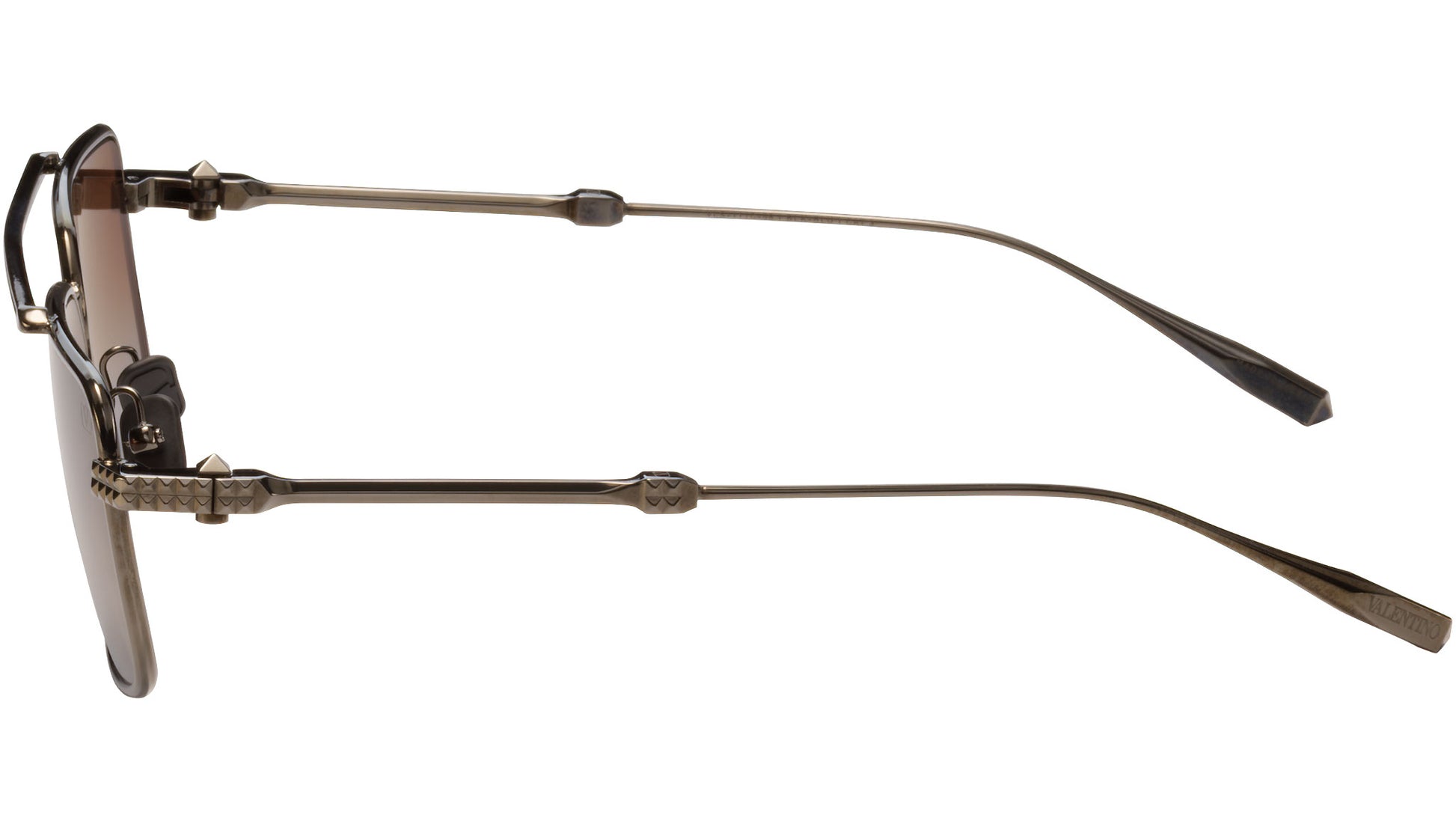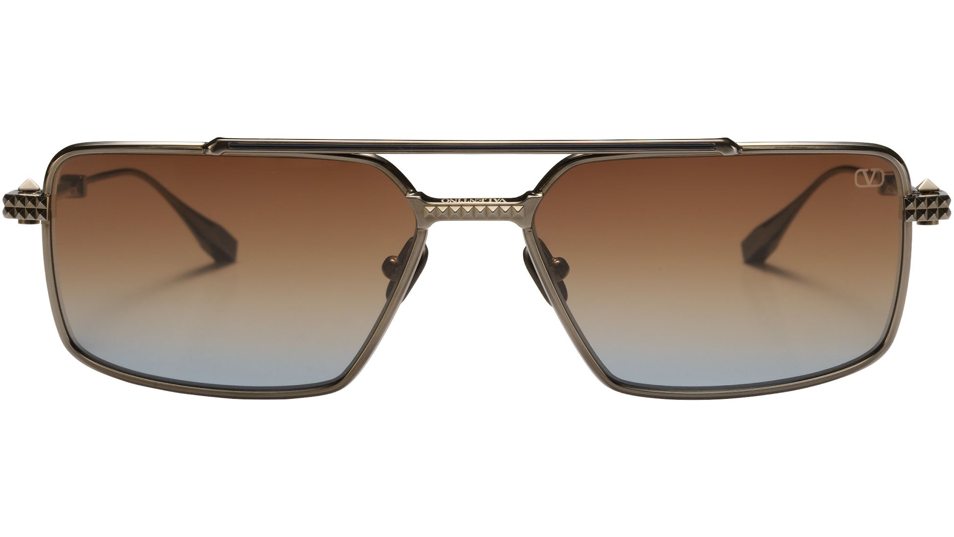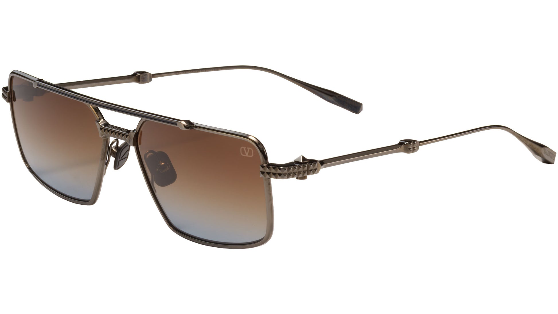 Valentino Sei is crafted like an exquisite piece of fine jewelry, featuring iconic Valentino tridimensional titanium rockstuds on its classic double bridge, elegant end-pieces, and gracefully flowing temples.