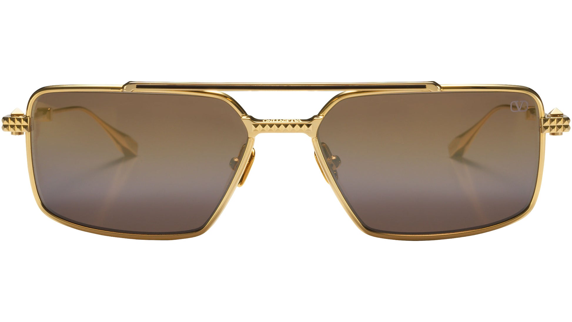 Valentino Sei is crafted like an exquisite piece of fine jewelry, featuring iconic Valentino tridimensional titanium rockstuds on its classic double bridge, elegant end-pieces, and gracefully flowing temples.