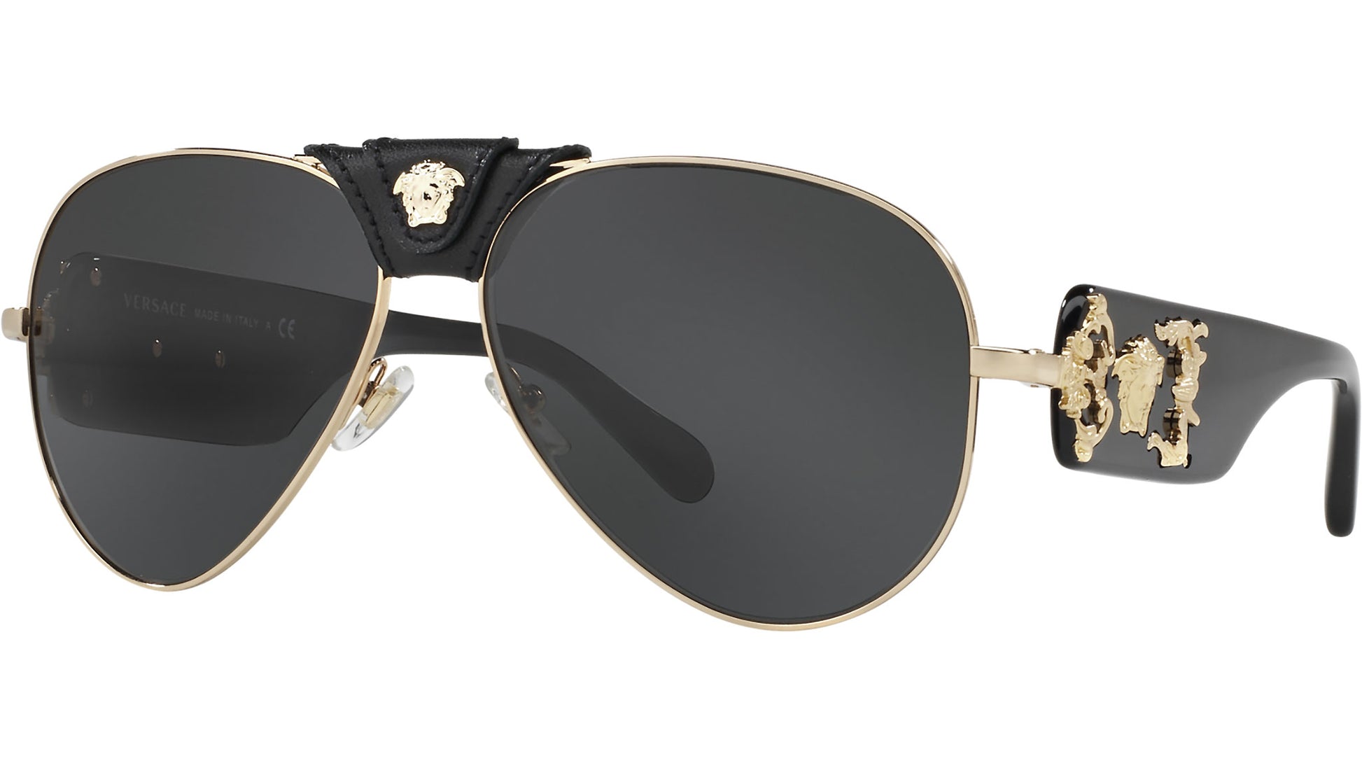 Versace sunglasses Collection model VE2150Q, gold frame variant, color code 100287 with dark grey lens. Versace is one of the world’s most iconic and famous luxury fashion houses. Proudly Italian, it is designed for men and women who desire a modern and glamorous style that combines sophistication and sex appeal. The Maison is the epitome of sensual glamour, sexy and empowering: a true symbol of Italian luxury.