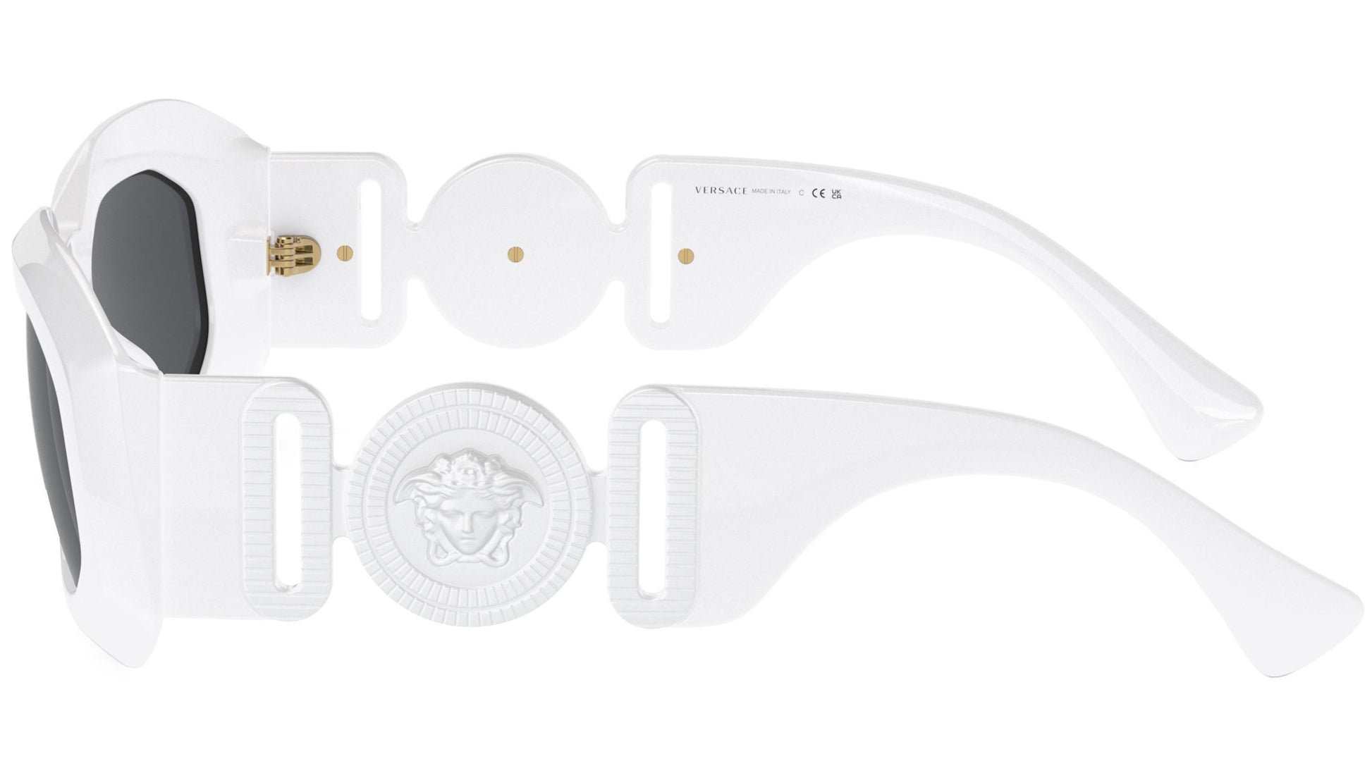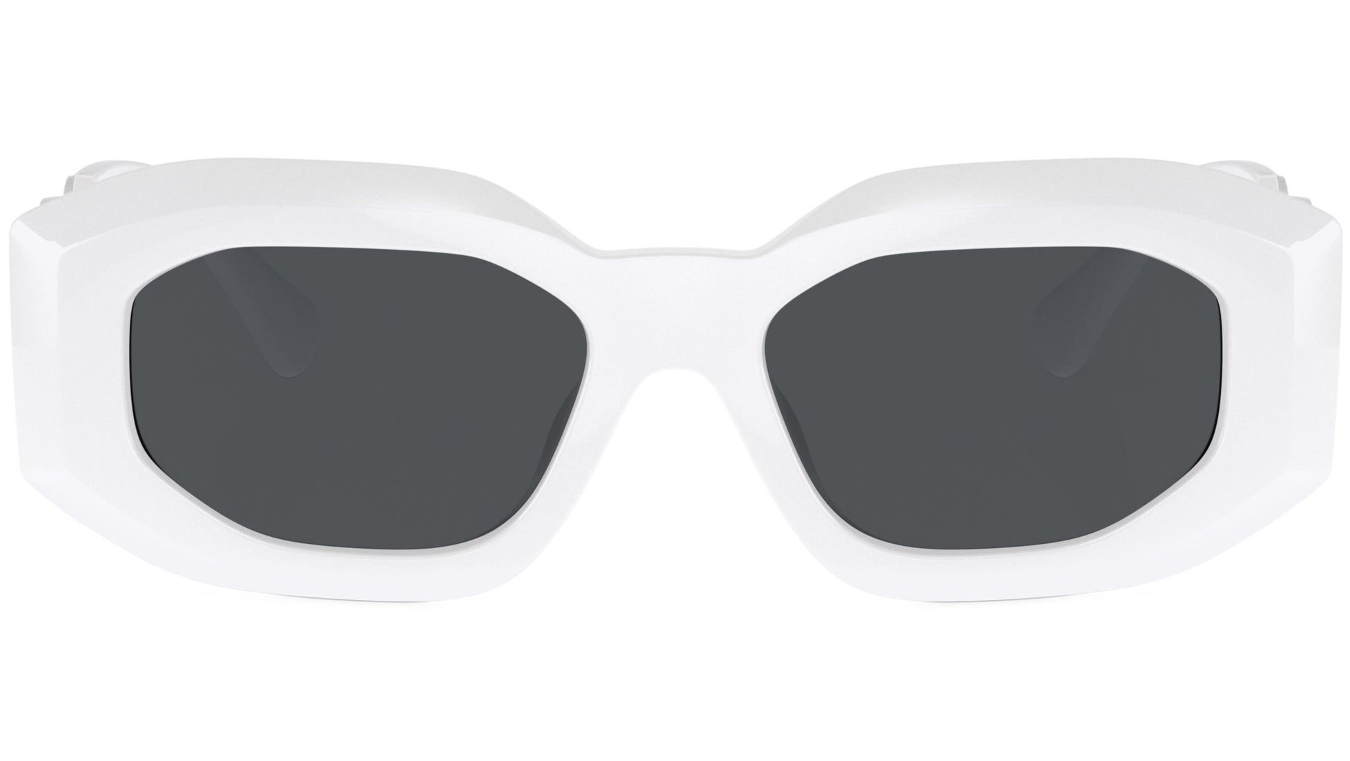 Versace sunglasses for men model 4425U featuring white full rim injection frame and base 6 decentered dark grey lenses. Universal fit. Frame line: Iconic. Brand code: 0VE4425U. Color code: 543887. Authorised Versace Eyewear Online Reseller. Your glasses will come including the original case and accessories and will be covered by 12 month global warranty.