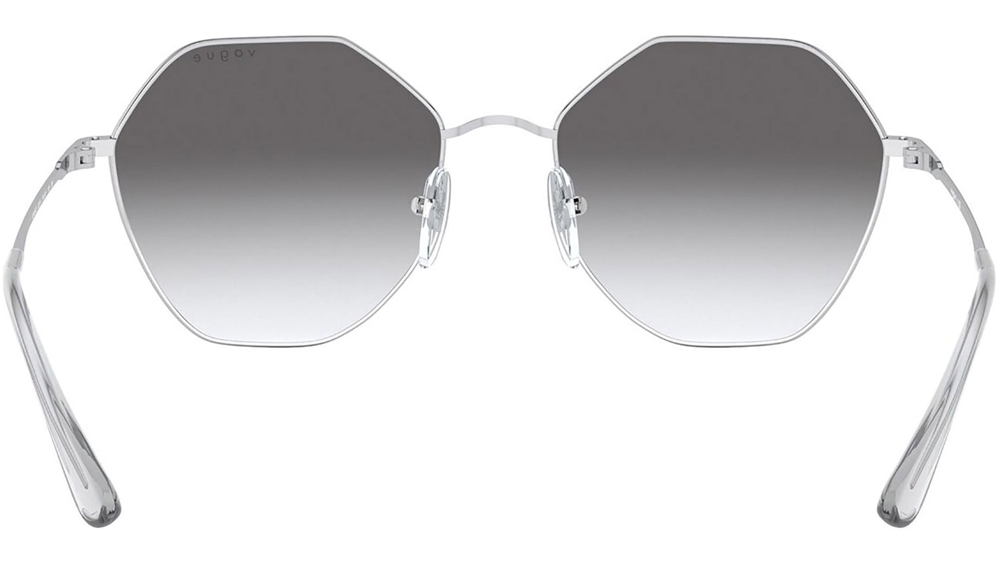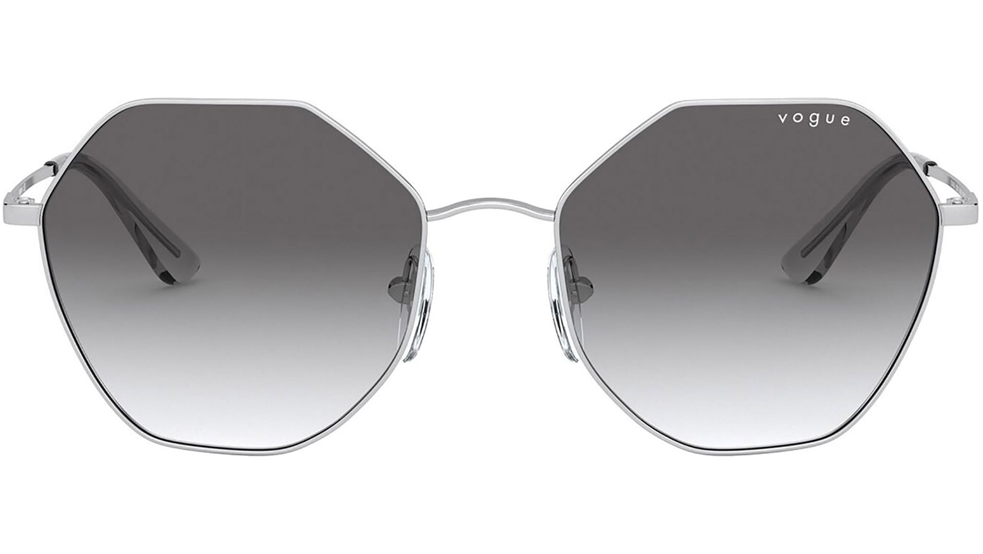 Vogue sunglasses for women model VO4180S 323/11 featuring silver metal frame and grey gradient base 4 CR-39 lenses. Adjustable nosepads. Frame line: In Vogue. Brand code: 0VO4180S. Color code: 323/11. Authorised Vogue Eyewear Online Reseller. Your glasses will come including the original case and accessories and will be covered by 12 month global warranty.