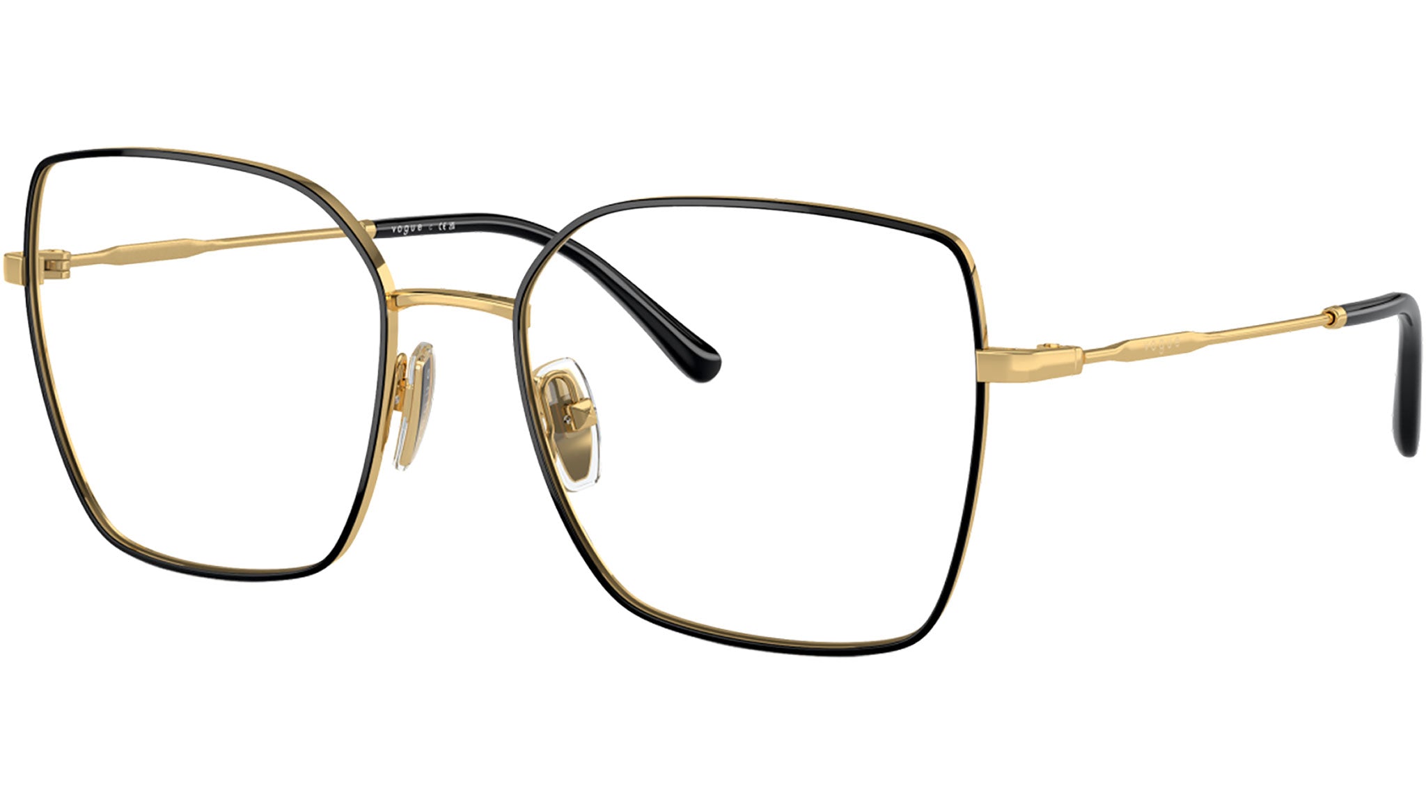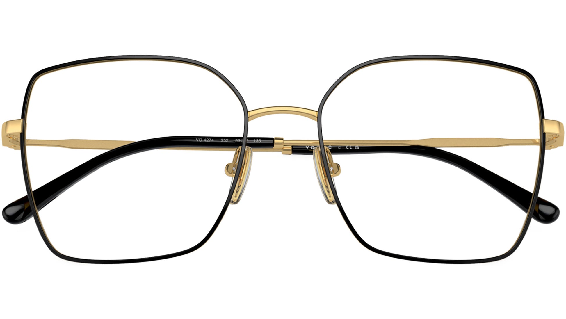 Vogue glasses for women model VO4274 352 featuring top black / gold metal frame and base 4 demo lens. Adjustable nosepads. Frame line: In Vogue. Brand code: 0VO4274. Color code: 352. Authorised Vogue Eyewear Online Reseller. Your glasses will come including the original case and accessories and will be covered by 12 month global warranty.