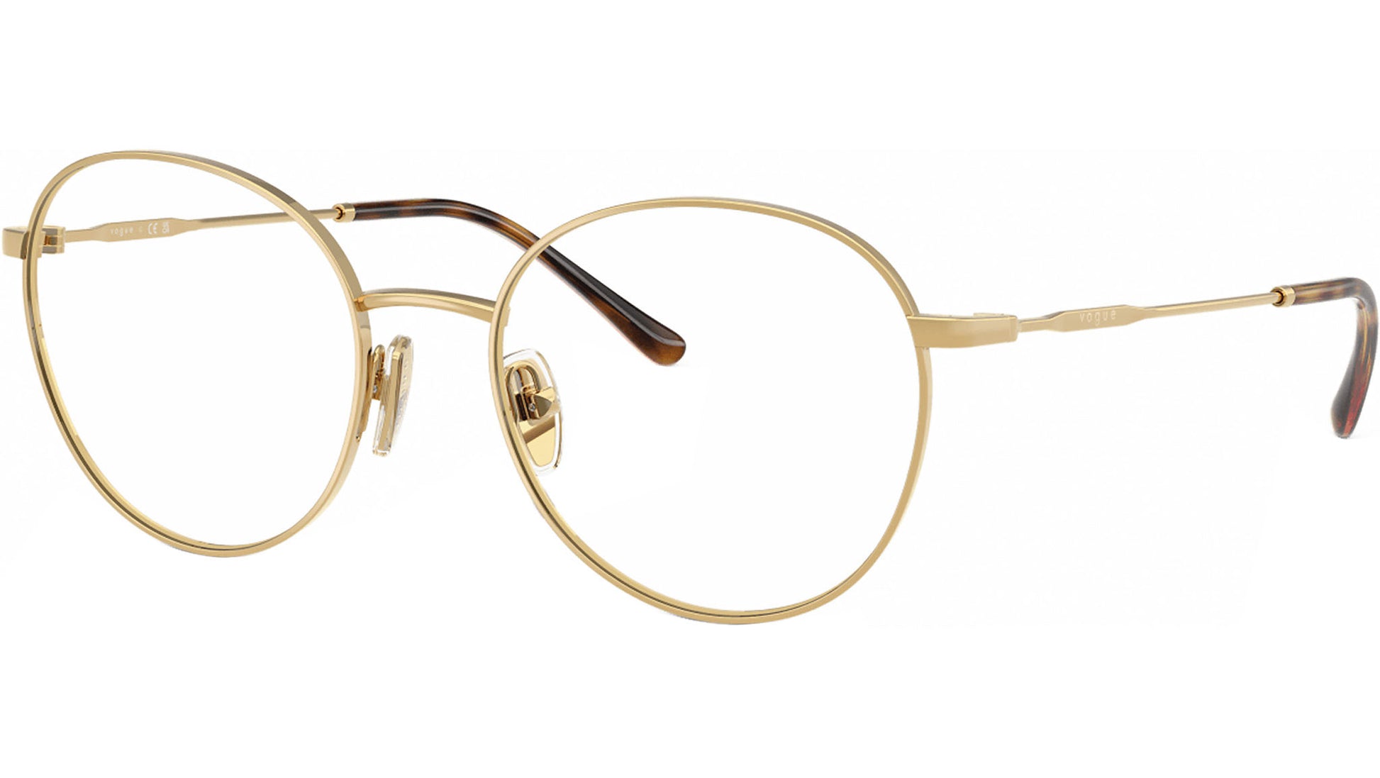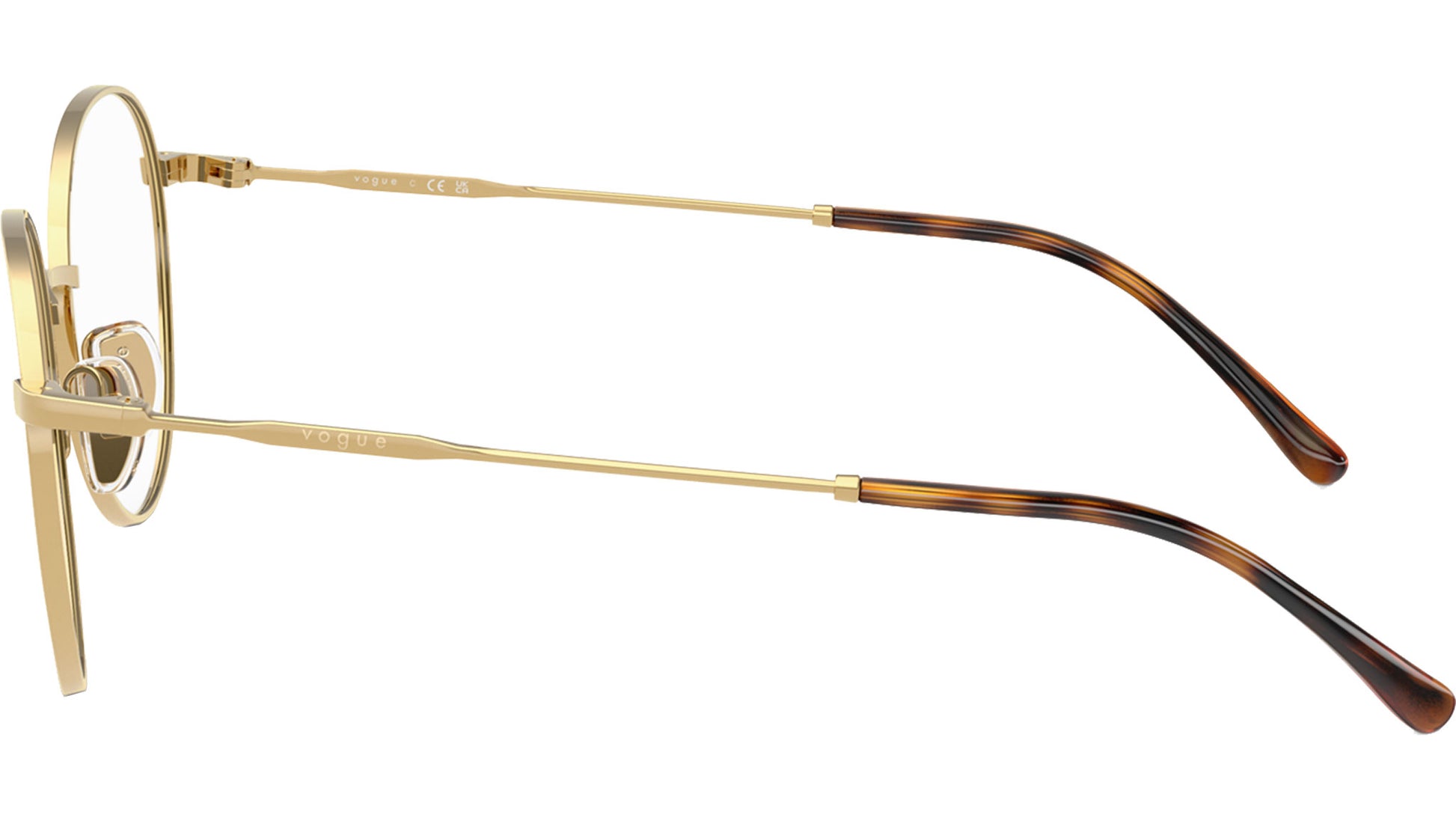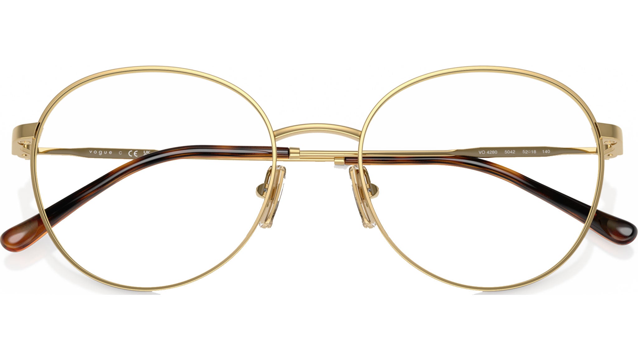 Vogue glasses for women model VO4280 5042 featuring gold metal frame and base 4 demo lens. Adjustable nosepads. Frame line: In Vogue. Brand code: 0VO4280. Color code: 5042. Authorised Vogue Eyewear Online Reseller. Your glasses will come including the original case and accessories and will be covered by 12 month global warranty.