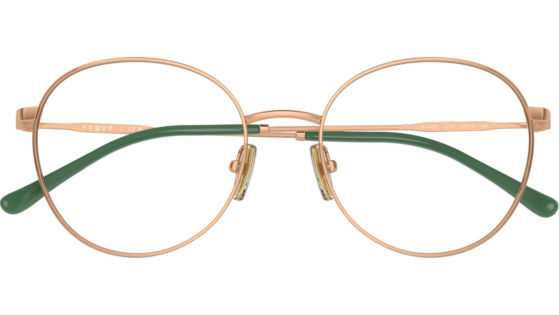 Vogue glasses for women model VO4280 5152 featuring rose gold metal frame and base 4 demo lens. Adjustable nosepads. Frame line: In Vogue. Brand code: 0VO4280. Color code: 5152. Authorised Vogue Eyewear Online Reseller. Your glasses will come including the original case and accessories and will be covered by 12 month global warranty.