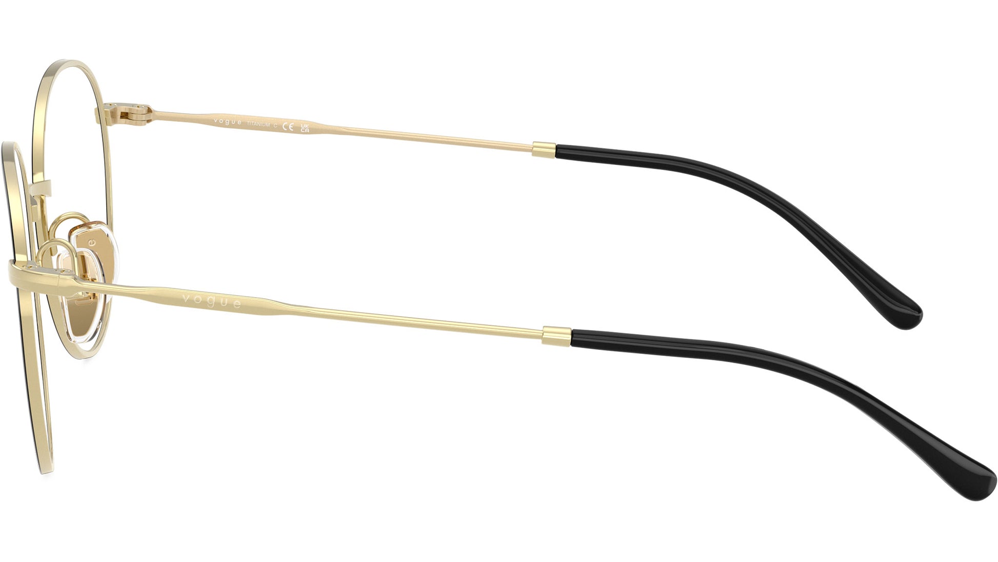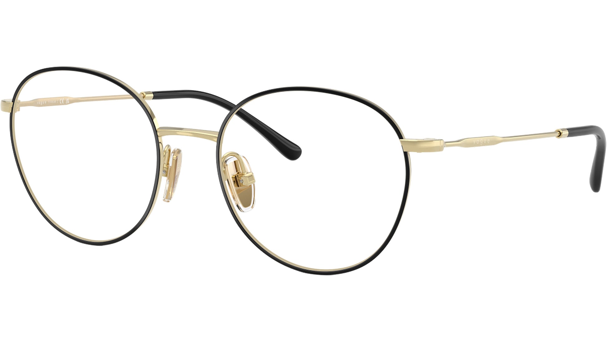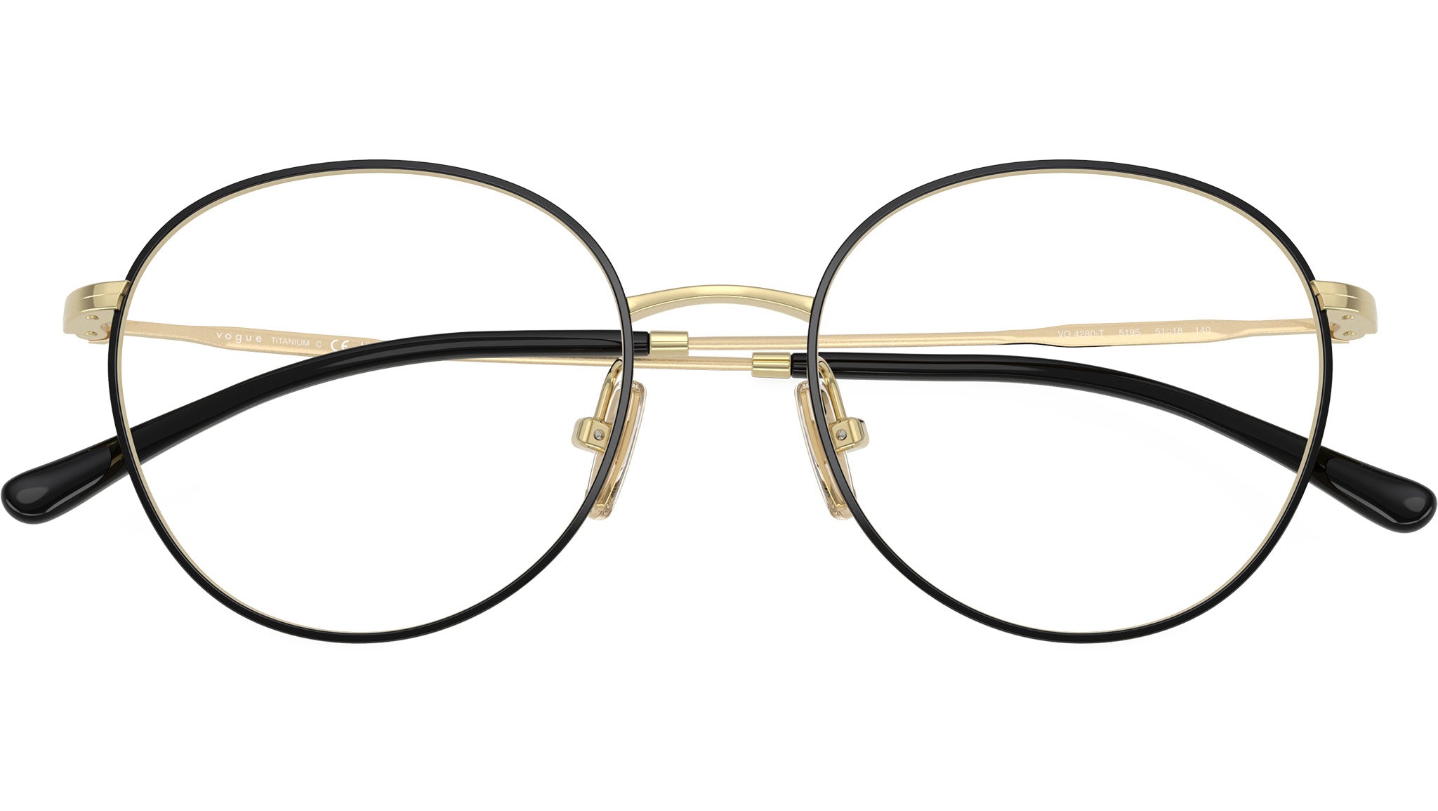 Vogue glasses for women model VO4280T 5195 featuring top black / light gold titanium frame and base 4 demo lens. Adjustable nosepads. Frame line: In Vogue. Brand code: 0VO4280T. Color code: 5195. Authorised Vogue Eyewear Online Reseller. Your glasses will come including the original case and accessories and will be covered by 12 month global warranty.