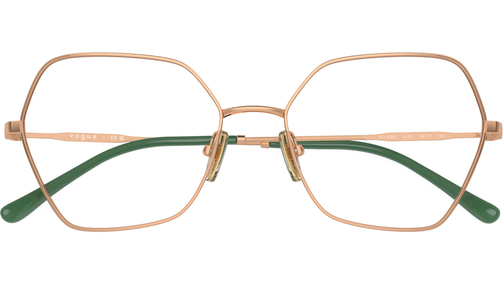 Vogue glasses for women model VO4281 5152 featuring rose gold metal frame and base 4 demo lens. Adjustable nosepads. Frame line: In Vogue. Brand code: 0VO4281. Color code: 5152. Authorised Vogue Eyewear Online Reseller. Your glasses will come including the original case and accessories and will be covered by 12 month global warranty.