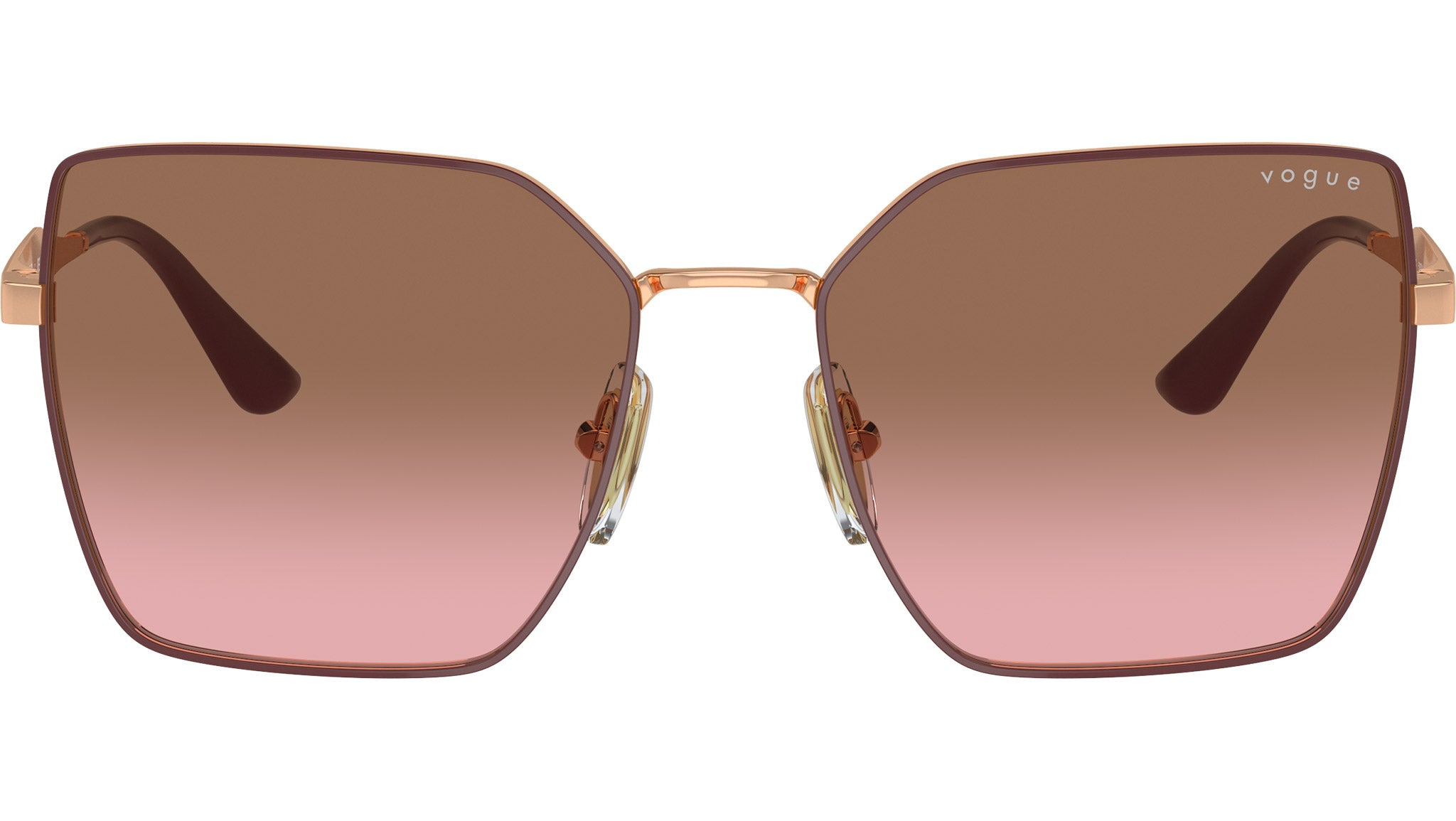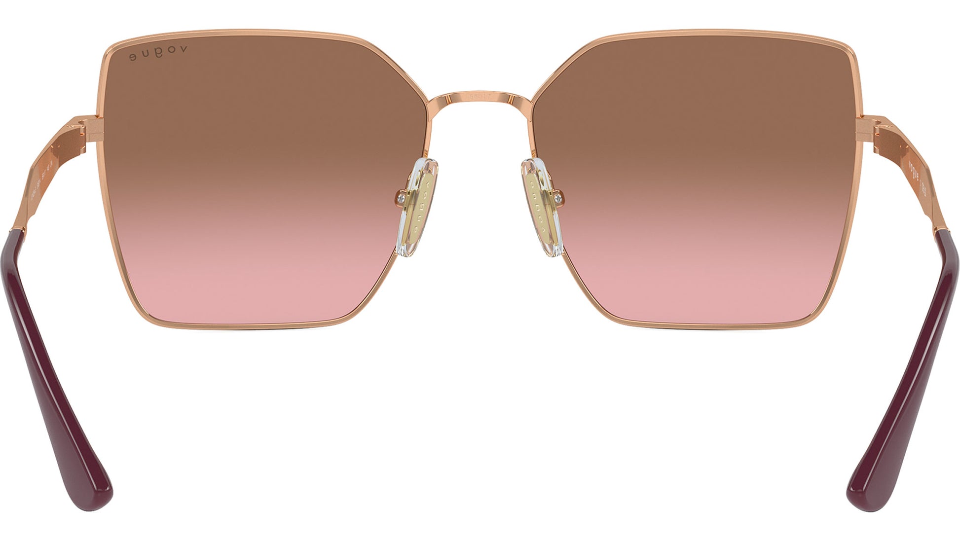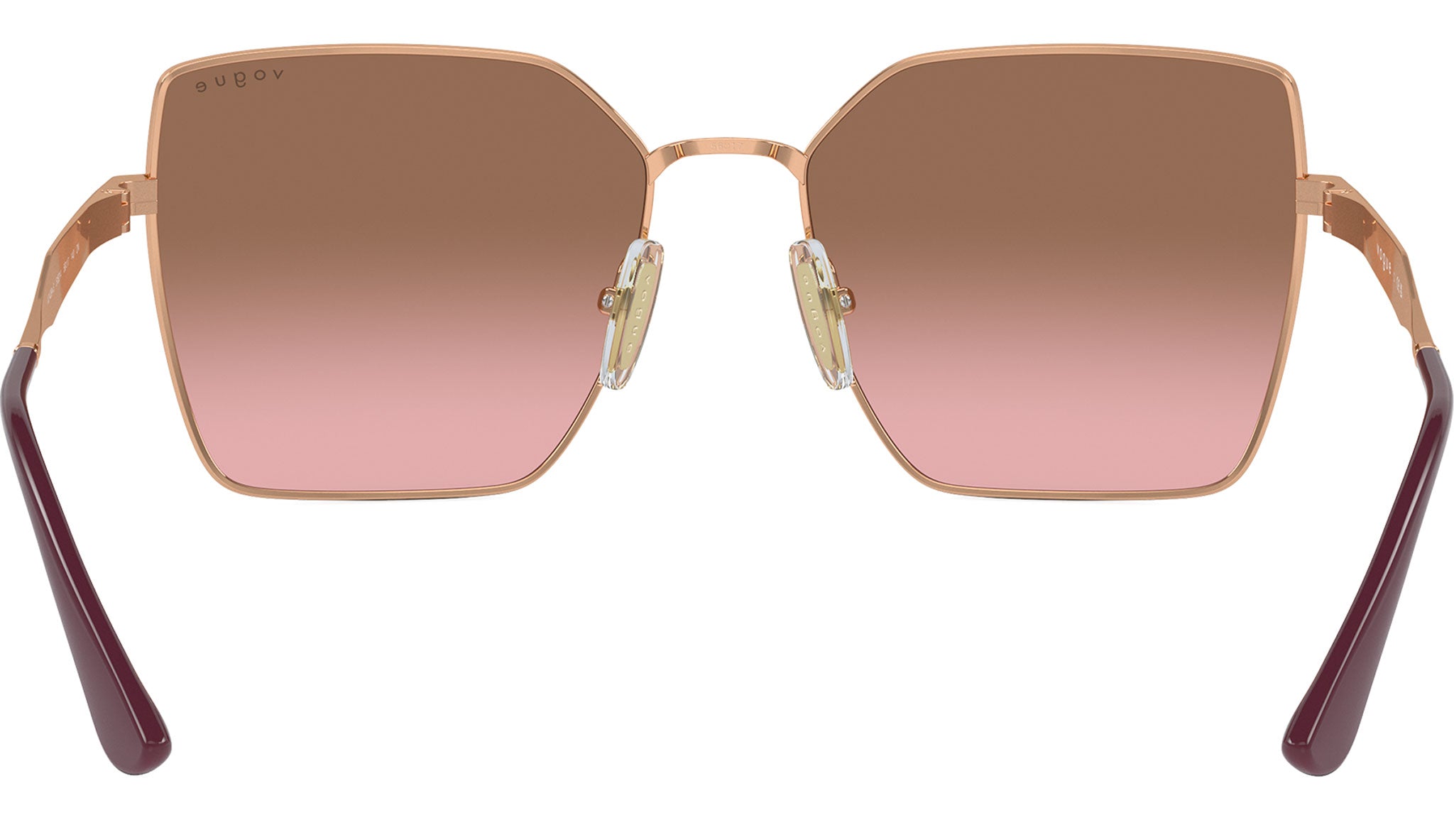 Vogue sunglasses for women model VO4284S 518214 featuring top bordeaux / rose gold metal frame and pink gradient brown base 6 polycarbonate lenses. Adjustable nosepads. Frame line: In Vogue. Brand code: 0VO4284S. Color code: 518214. Authorised Vogue Eyewear Online Reseller. Your glasses will come including the original case and accessories and will be covered by 12 month global warranty.