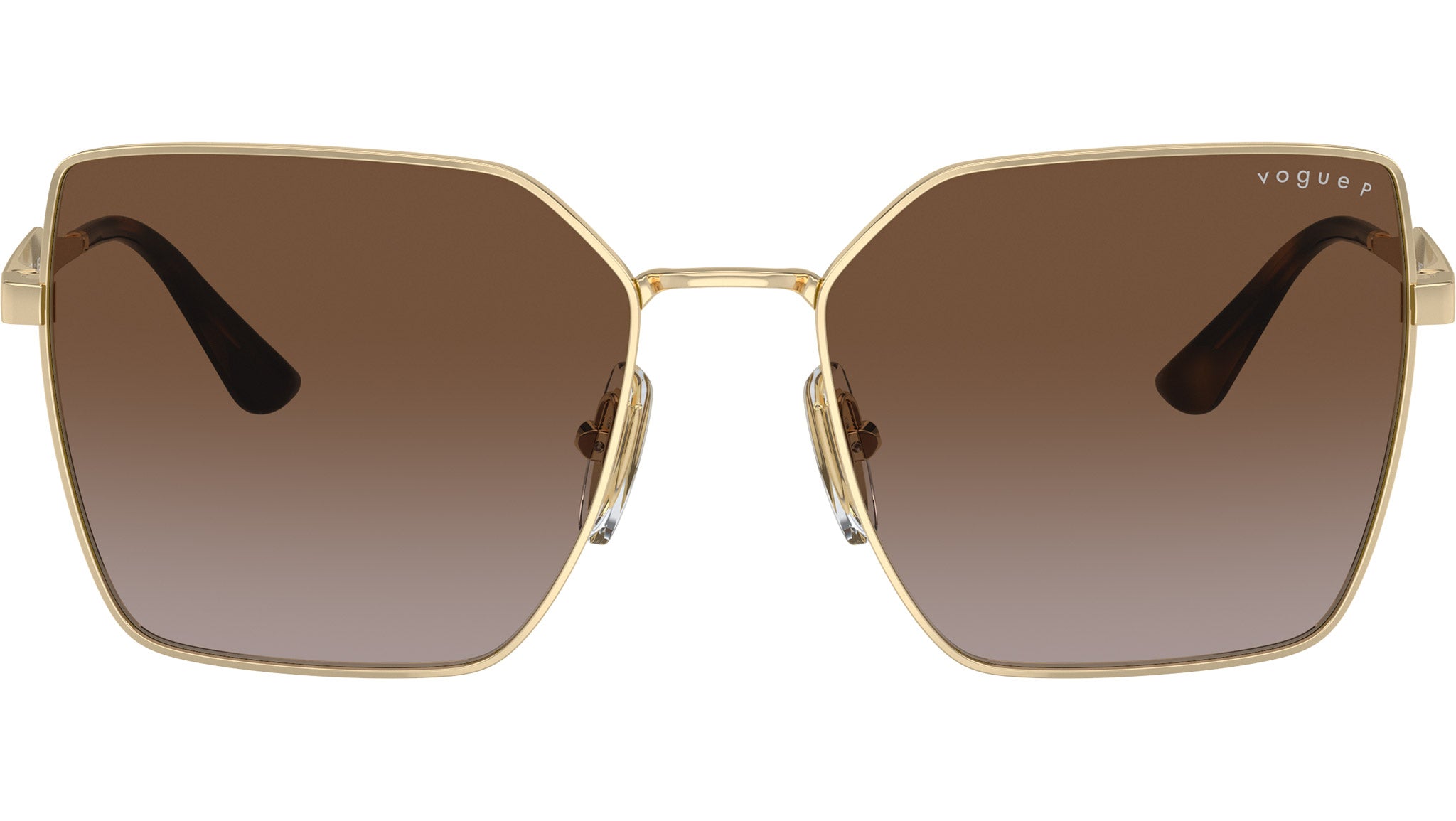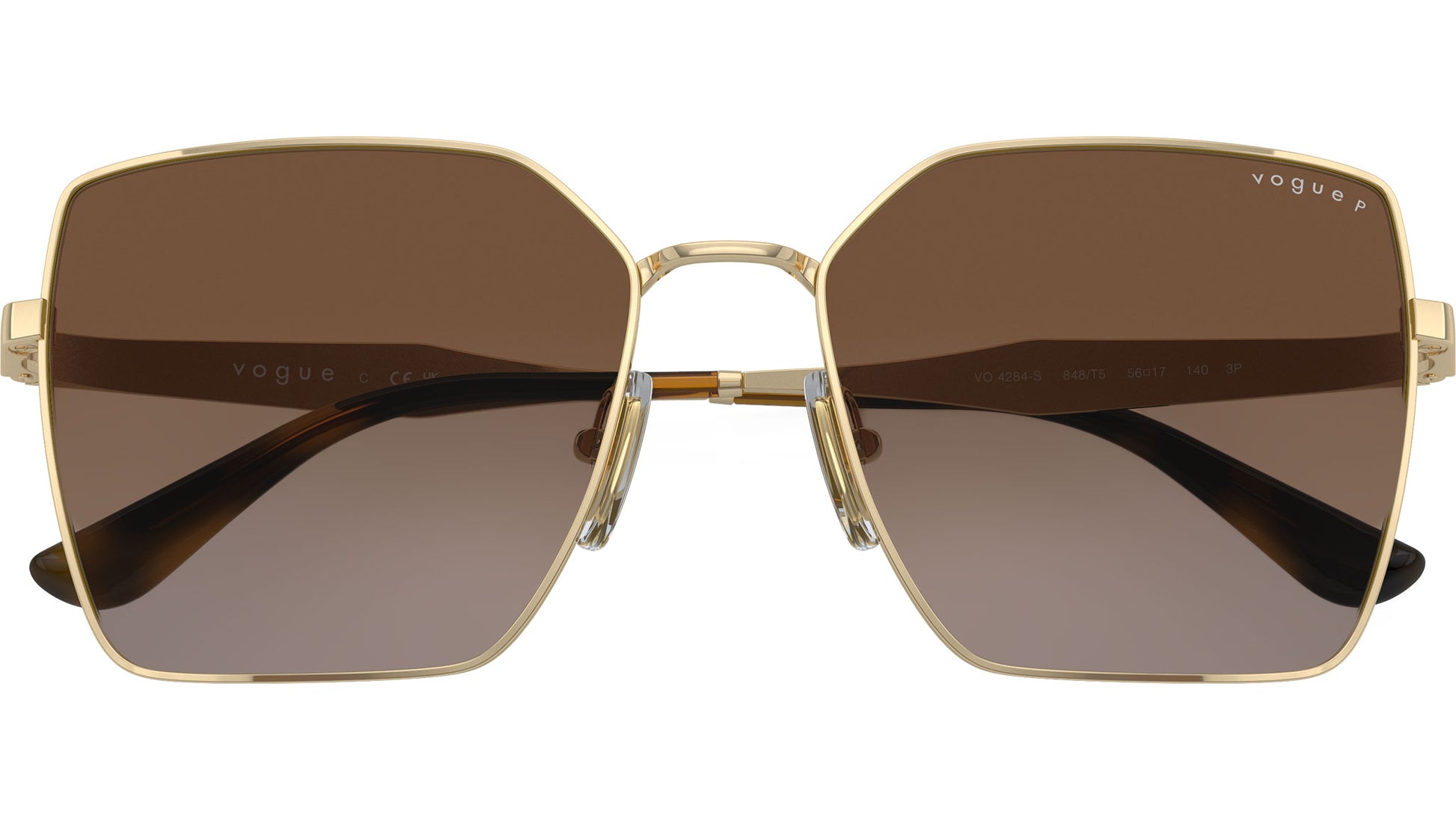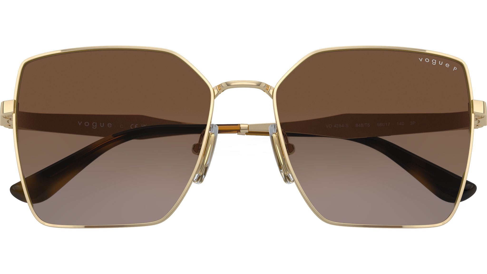 Vogue sunglasses for women model VO4284S 848/T5 featuring pale gold metal frame and gradient brown polar base 6 polycarbonate lenses. Adjustable nosepads. Frame line: In Vogue. Brand code: 0VO4284S. Color code: 848/T5. Authorised Vogue Eyewear Online Reseller. Your glasses will come including the original case and accessories and will be covered by 12 month global warranty.