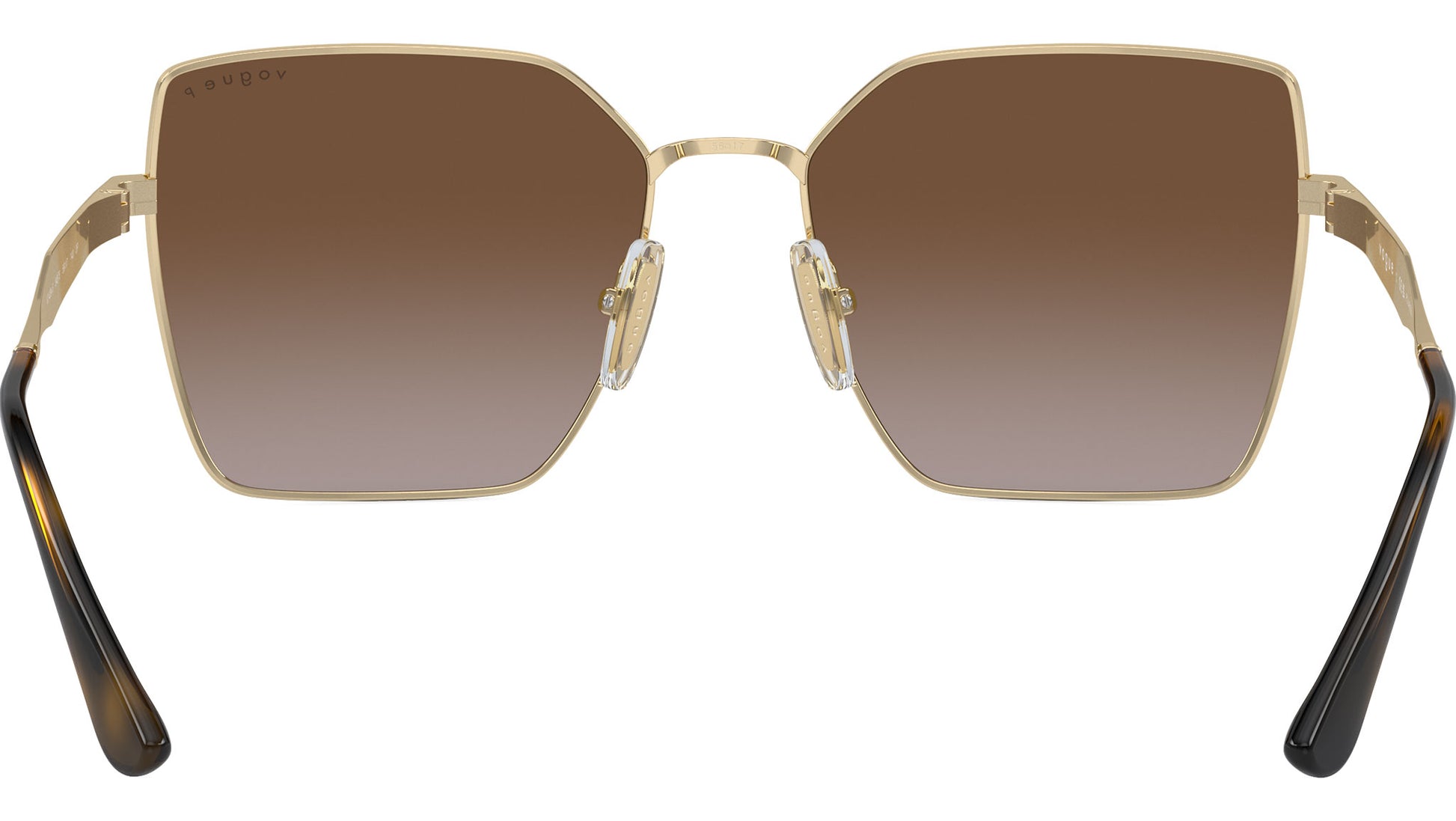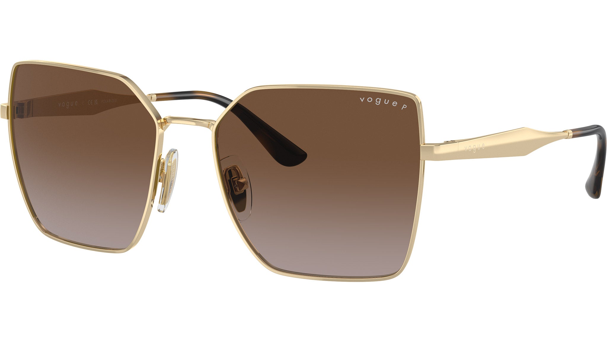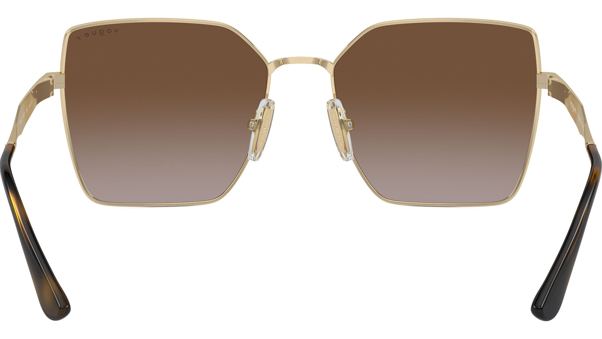 Vogue sunglasses for women model VO4284S 848/T5 featuring pale gold metal frame and gradient brown polar base 6 polycarbonate lenses. Adjustable nosepads. Frame line: In Vogue. Brand code: 0VO4284S. Color code: 848/T5. Authorised Vogue Eyewear Online Reseller. Your glasses will come including the original case and accessories and will be covered by 12 month global warranty.