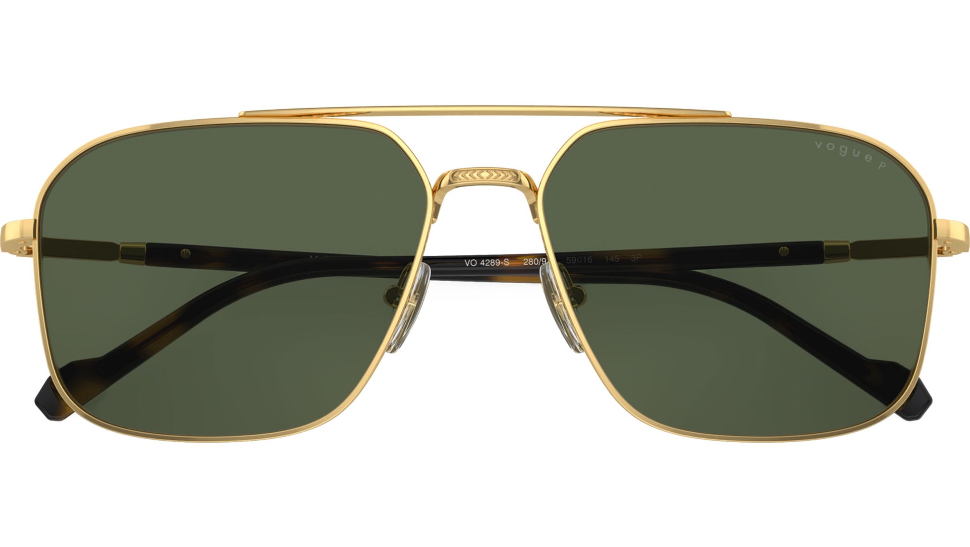 Vogue sunglasses for men model VO4289S 280/9A featuring gold metal frame and dark green polarized base 4 polycarbonate lenses. Adjustable nosepads. Frame line: Man. Brand code: 0VO4289S. Color code: 280/9A. Authorised Vogue Eyewear Online Reseller. Your glasses will come including the original case and accessories and will be covered by 12 month global warranty.