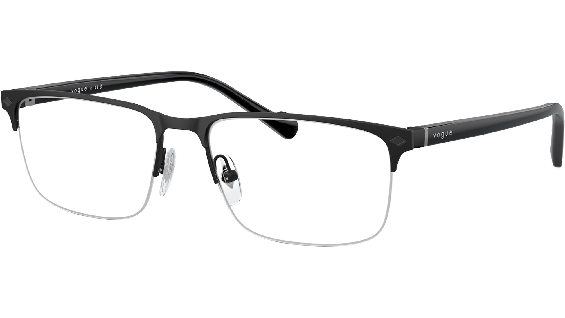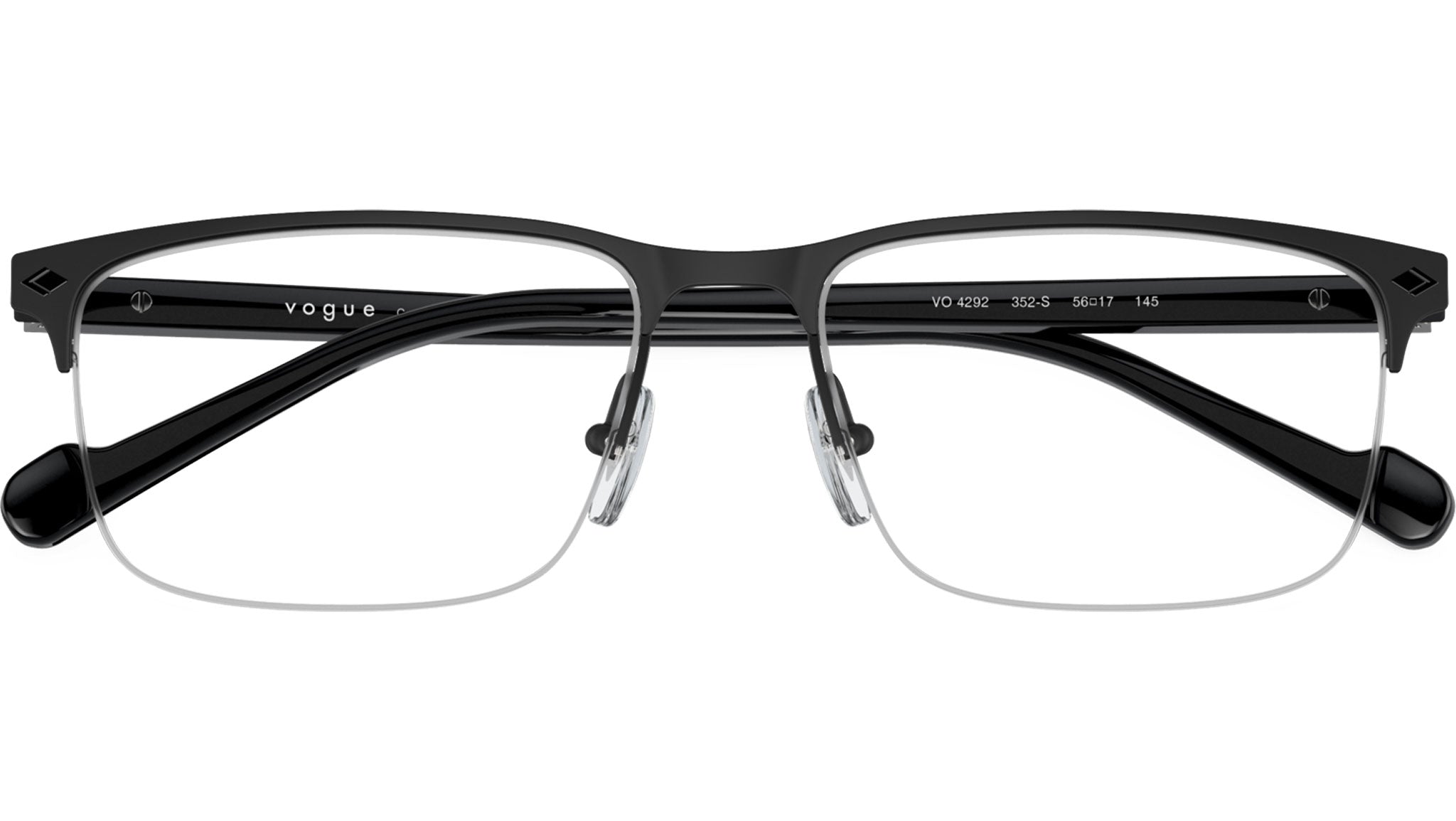 Vogue glasses for men model VO4292 352S featuring black metal frame and base 4 demo lens. Adjustable nosepads. Frame line: Man. Brand code: 0VO4292. Color code: 352S. Authorised Vogue Eyewear Online Reseller. Your glasses will come including the original case and accessories and will be covered by 12 month global warranty.