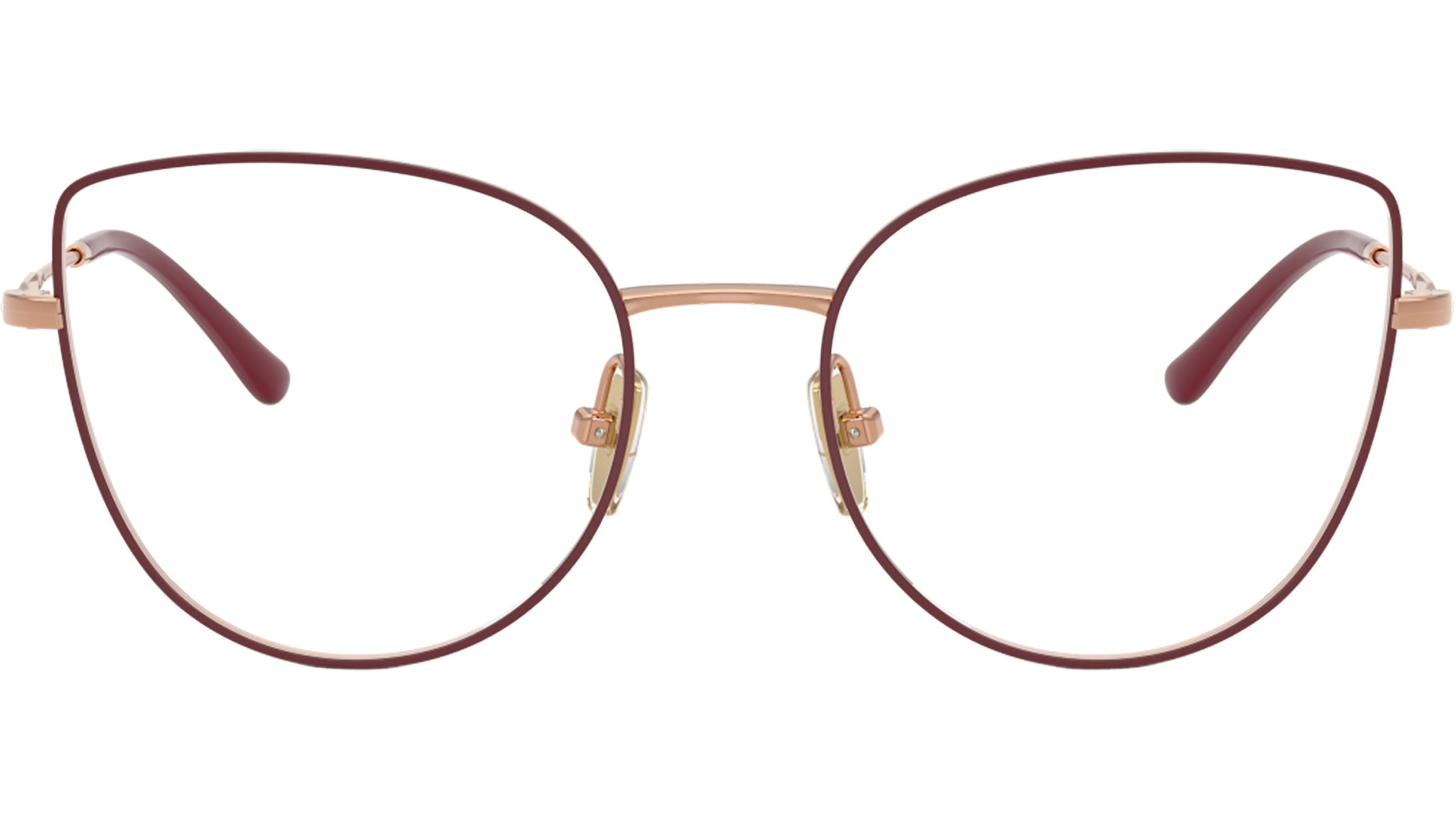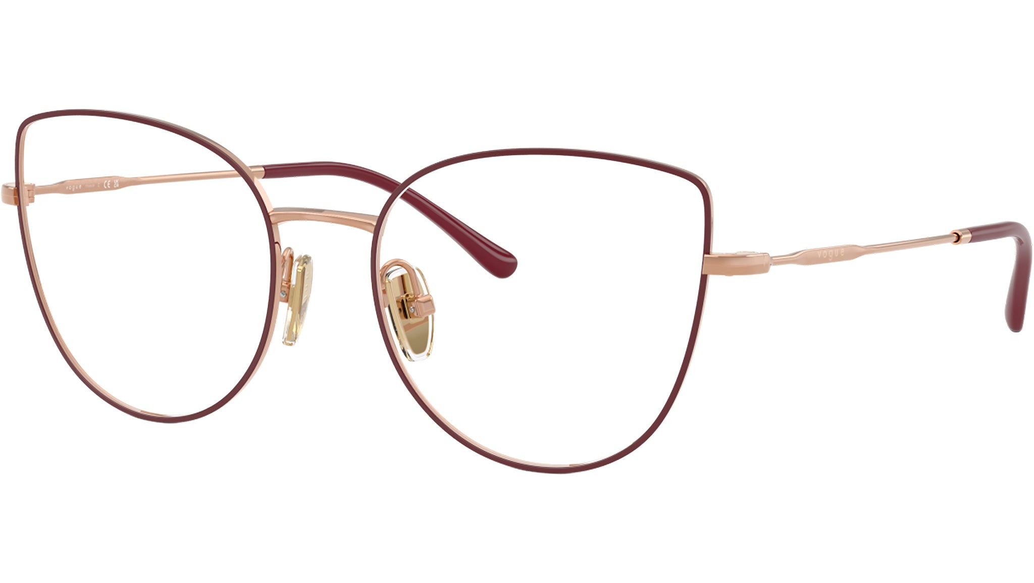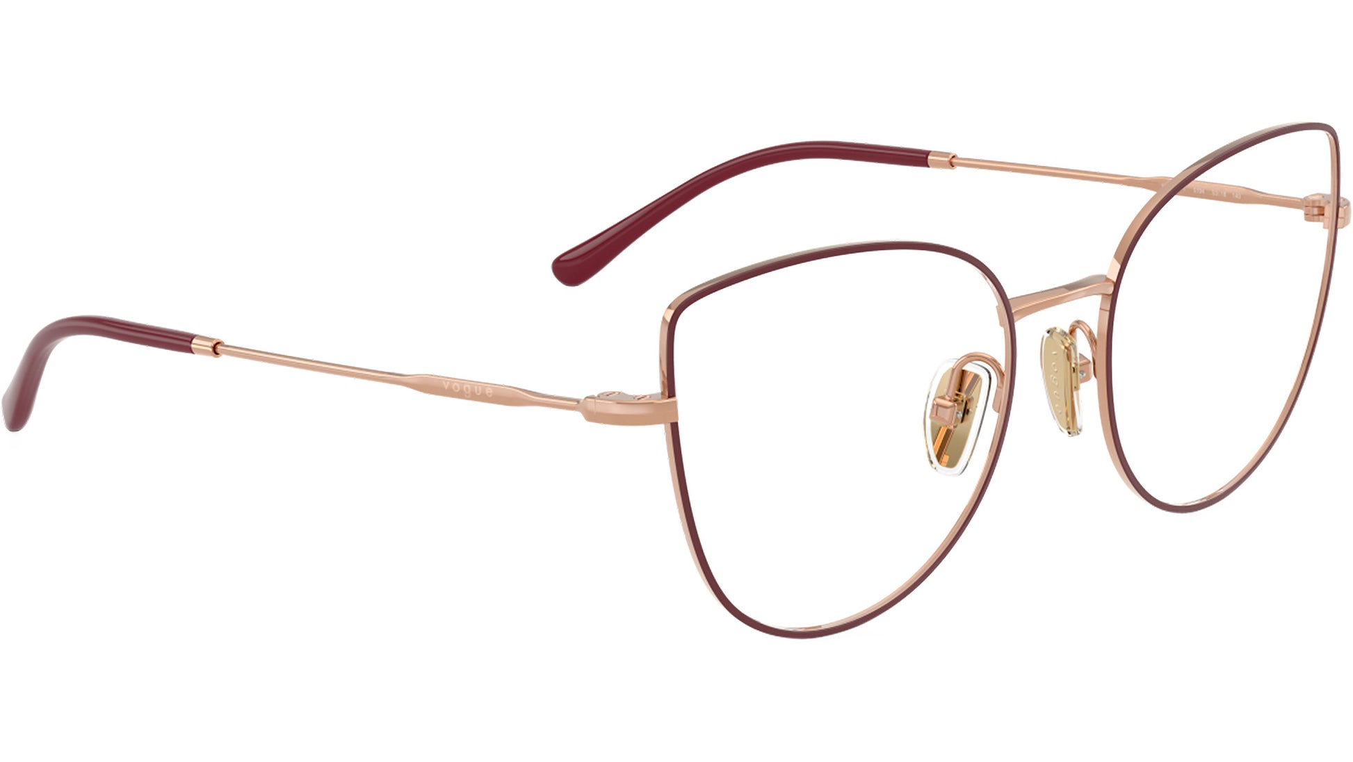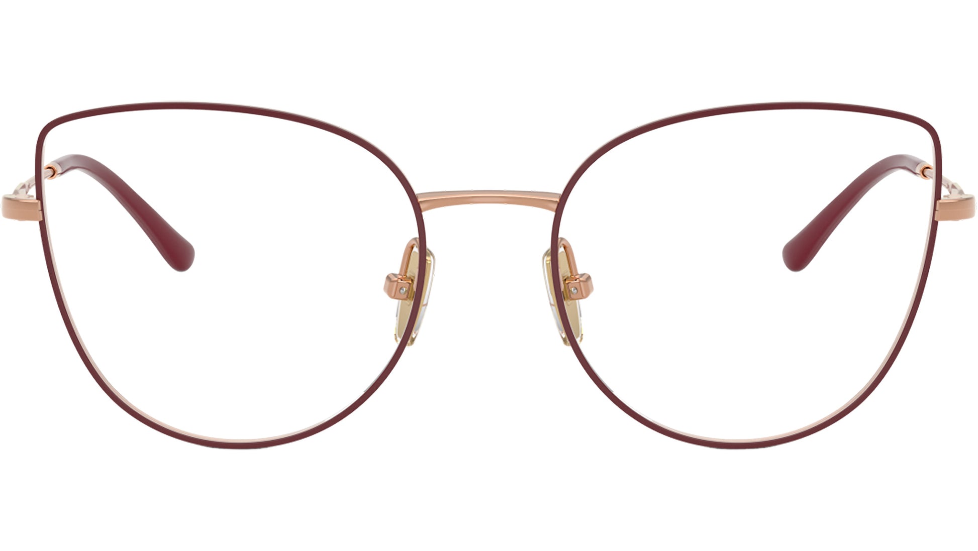 Vogue glasses for women model VO4298T 5194 featuring top bordeaux / rose gold titanium frame and base 4 demo lens. Adjustable nosepads. Frame line: In Vogue. Brand code: 0VO4298T. Color code: 5194. Authorised Vogue Eyewear Online Reseller. Your glasses will come including the original case and accessories and will be covered by 12 month global warranty.