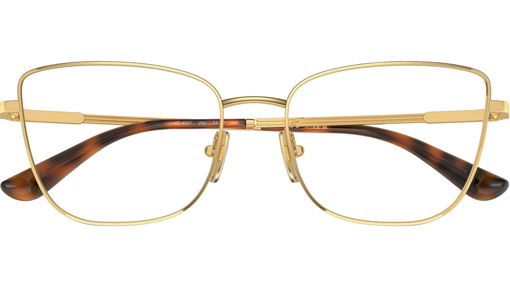 Vogue glasses for women model VO4307 280 featuring gold / top havana metal frame and base 4 demo lens. Adjustable nosepads. Frame line: In Vogue. Brand code: 0VO4307. Color code: 280. Authorised Vogue Eyewear Online Reseller. Your glasses will come including the original case and accessories and will be covered by 12 month global warranty.