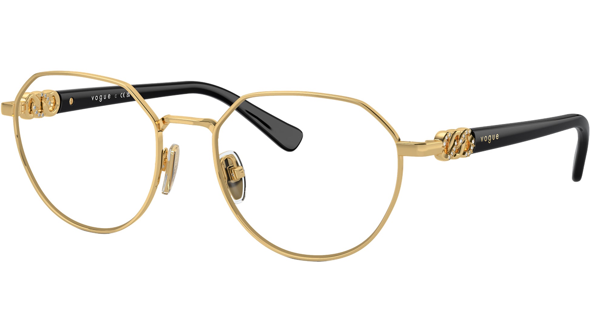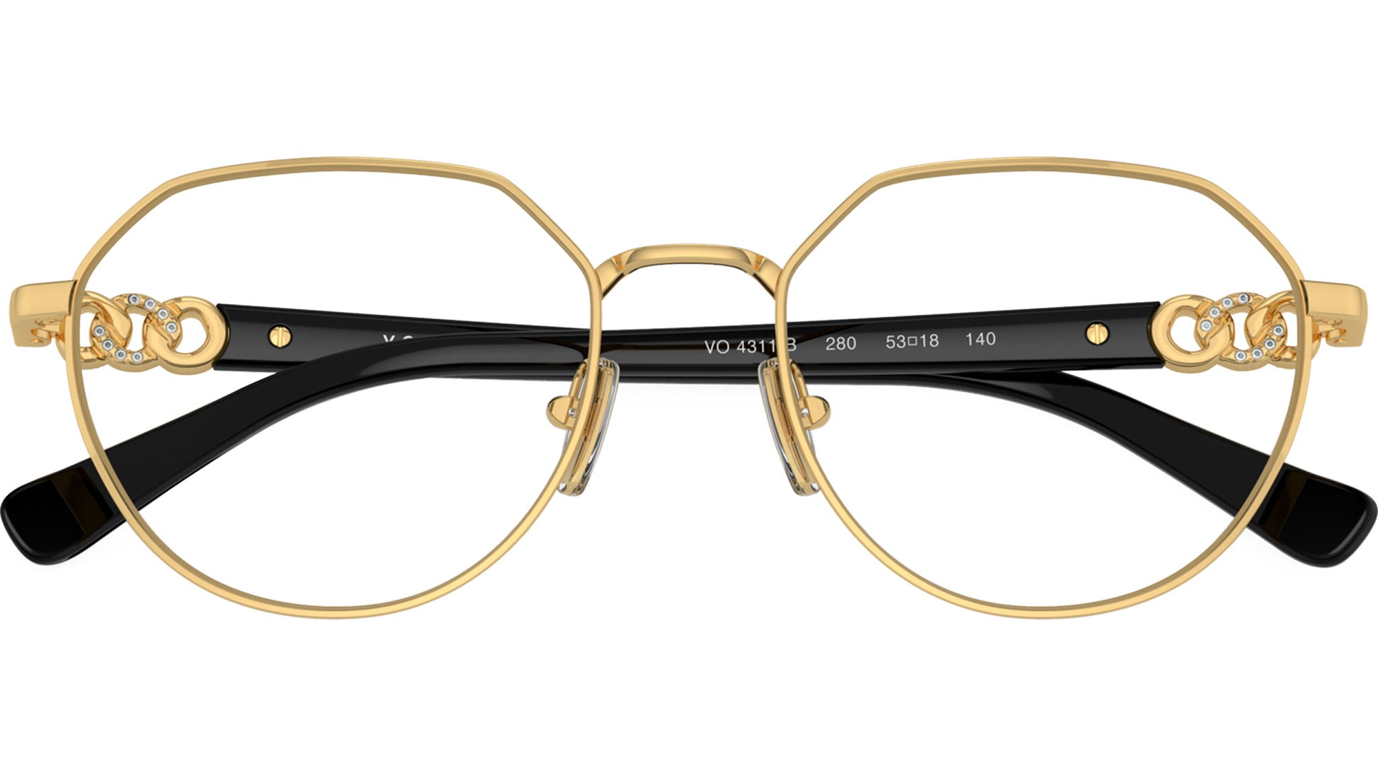 Vogue glasses for women model VO4311B 280 featuring gold metal frame and base 4 demo lens. Adjustable nosepads. Frame line: Evergreen. Brand code: 0VO4311B. Color code: 280. Authorised Vogue Eyewear Online Reseller. Your glasses will come including the original case and accessories and will be covered by 12 month global warranty.