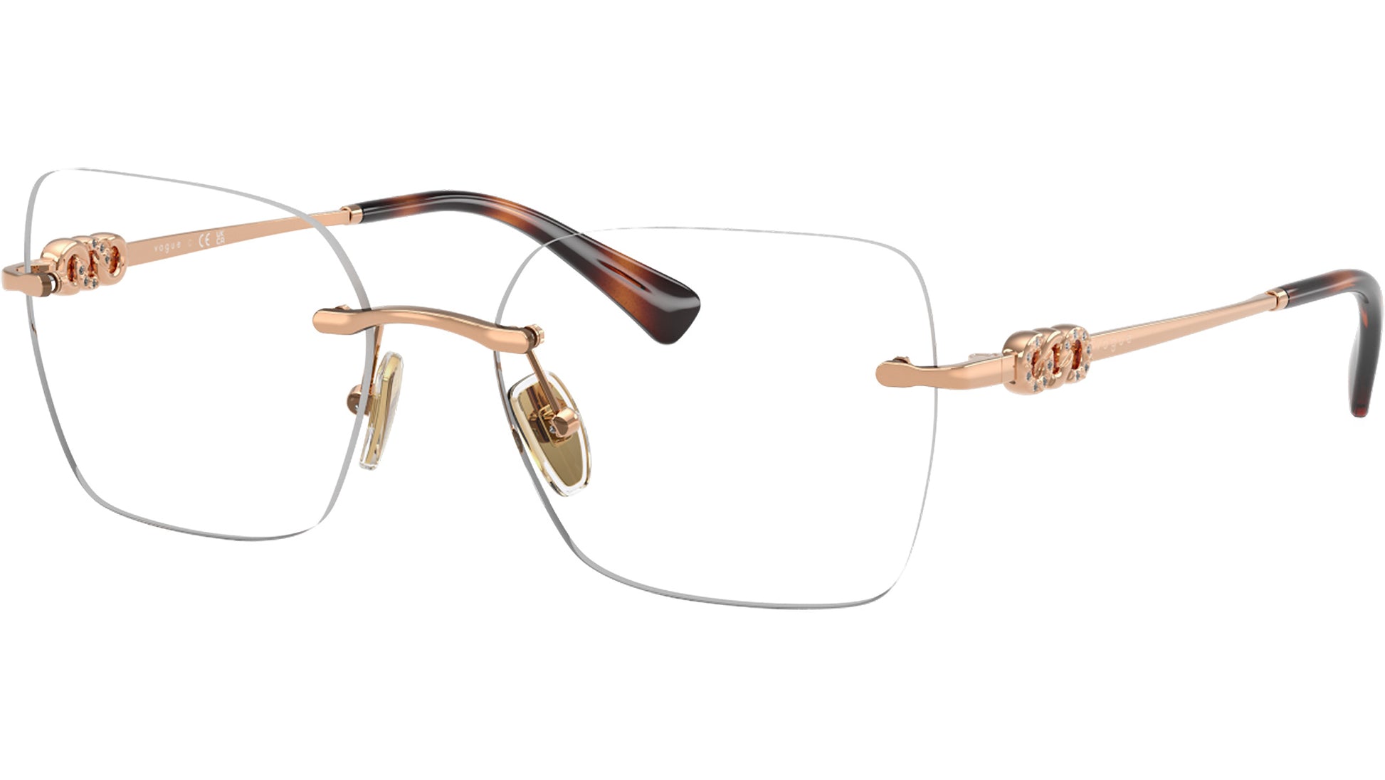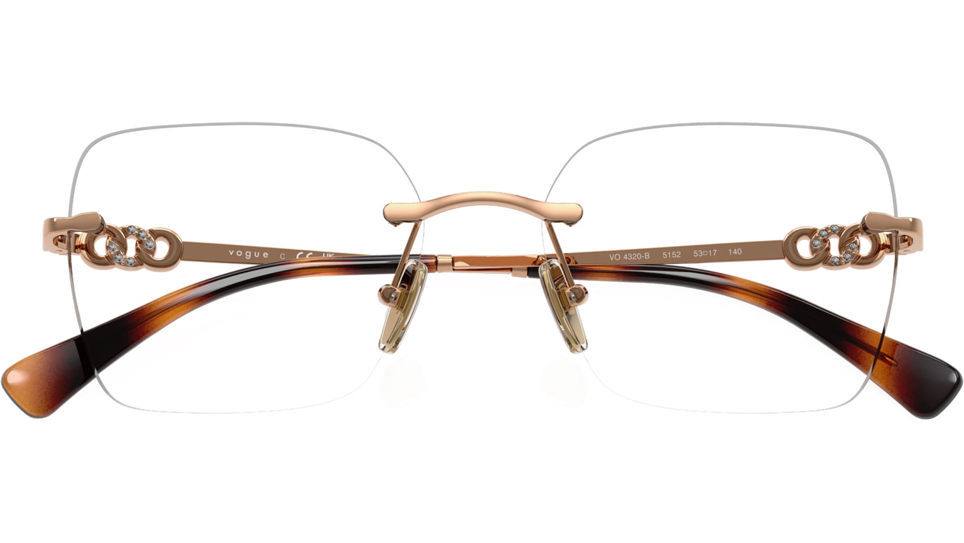Vogue glasses for women model VO4320B 5152 featuring rose gold metal frame and base 4 demo lens. Adjustable nosepads. Frame line: Evergreen. Brand code: 0VO4320B. Color code: 5152. Authorised Vogue Eyewear Online Reseller. Your glasses will come including the original case and accessories and will be covered by 12 month global warranty.