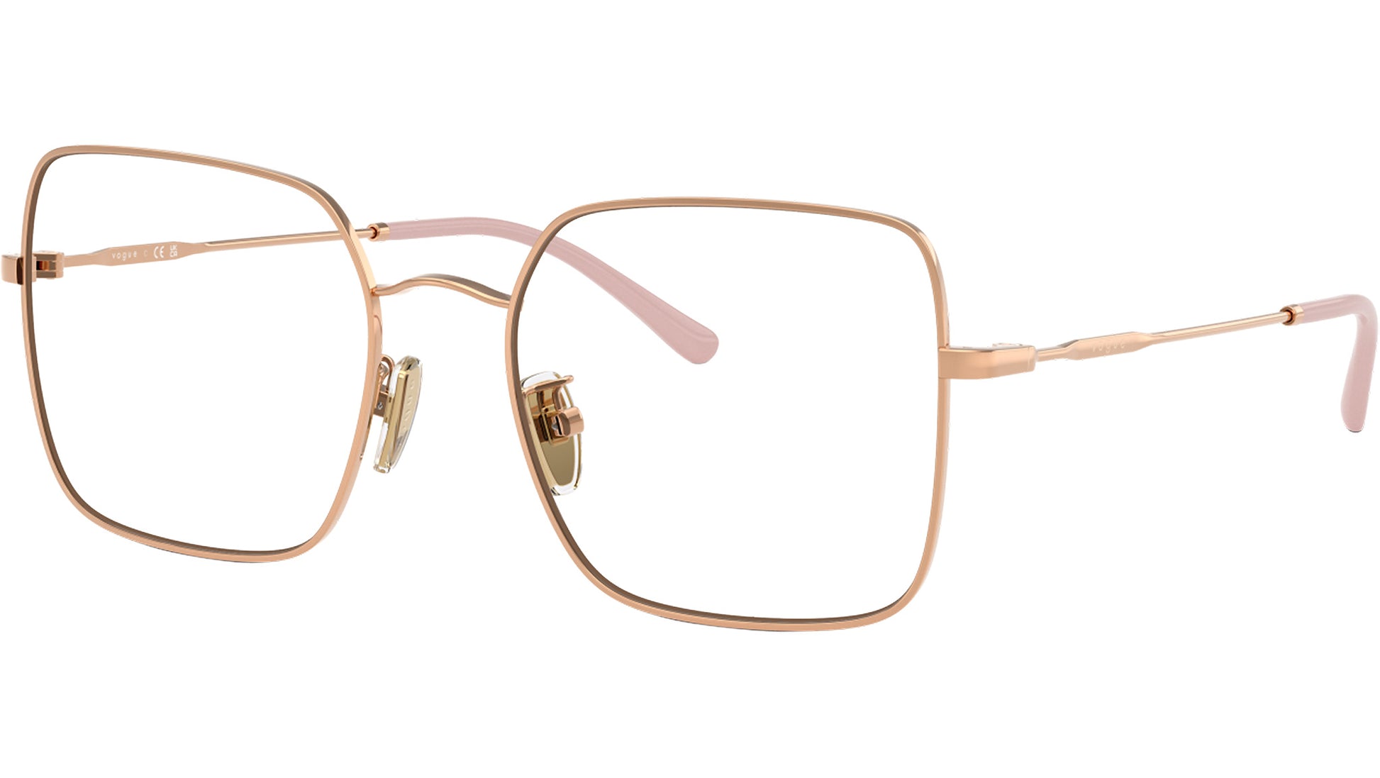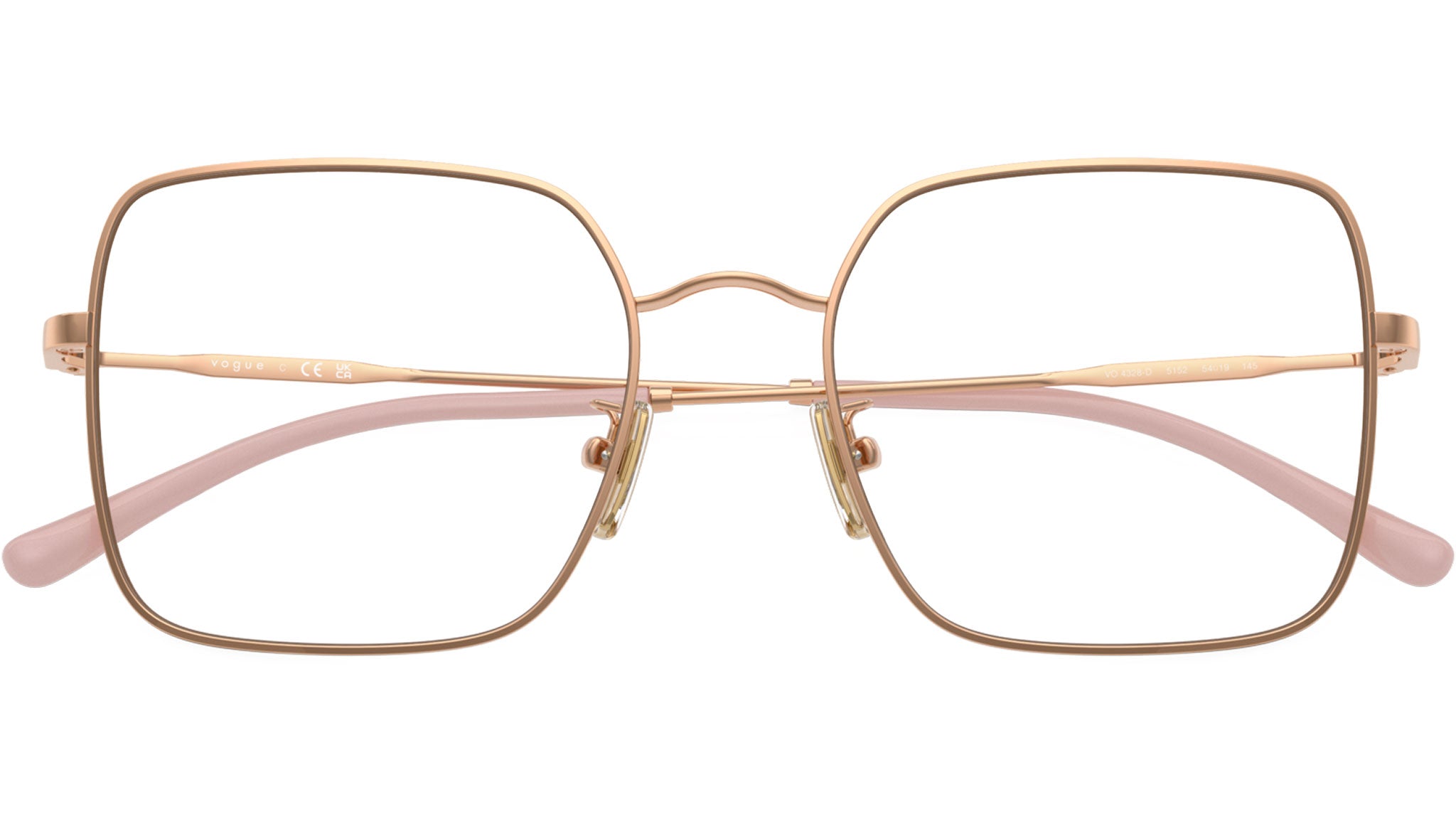 Vogue glasses for women model VO4328D 5152 featuring rose gold metal frame and base 4 demo lens. Low bridge fit. Frame line: In Vogue. Brand code: 0VO4328D. Color code: 5152. Authorised Vogue Eyewear Online Reseller. Your glasses will come including the original case and accessories and will be covered by 12 month global warranty.