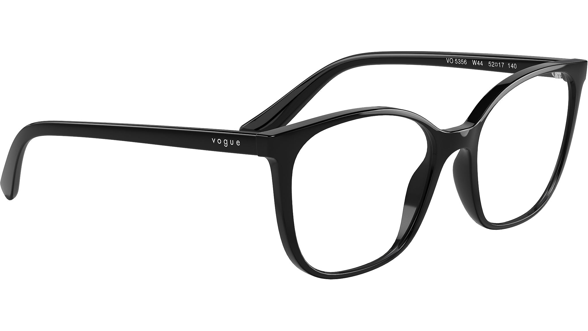 Vogue glasses for women model VO5356 W44 featuring black injection frame and base 4 demo lens. High bridge fit. Frame line: In Vogue. Brand code: 0VO5356. Color code: W44. Authorised Vogue Eyewear Online Reseller. Your glasses will come including the original case and accessories and will be covered by 12 month global warranty.
