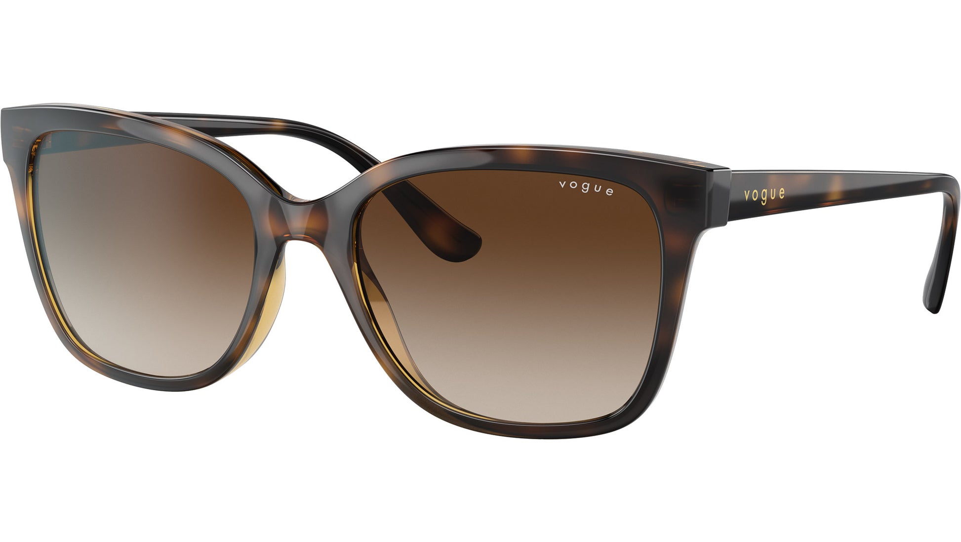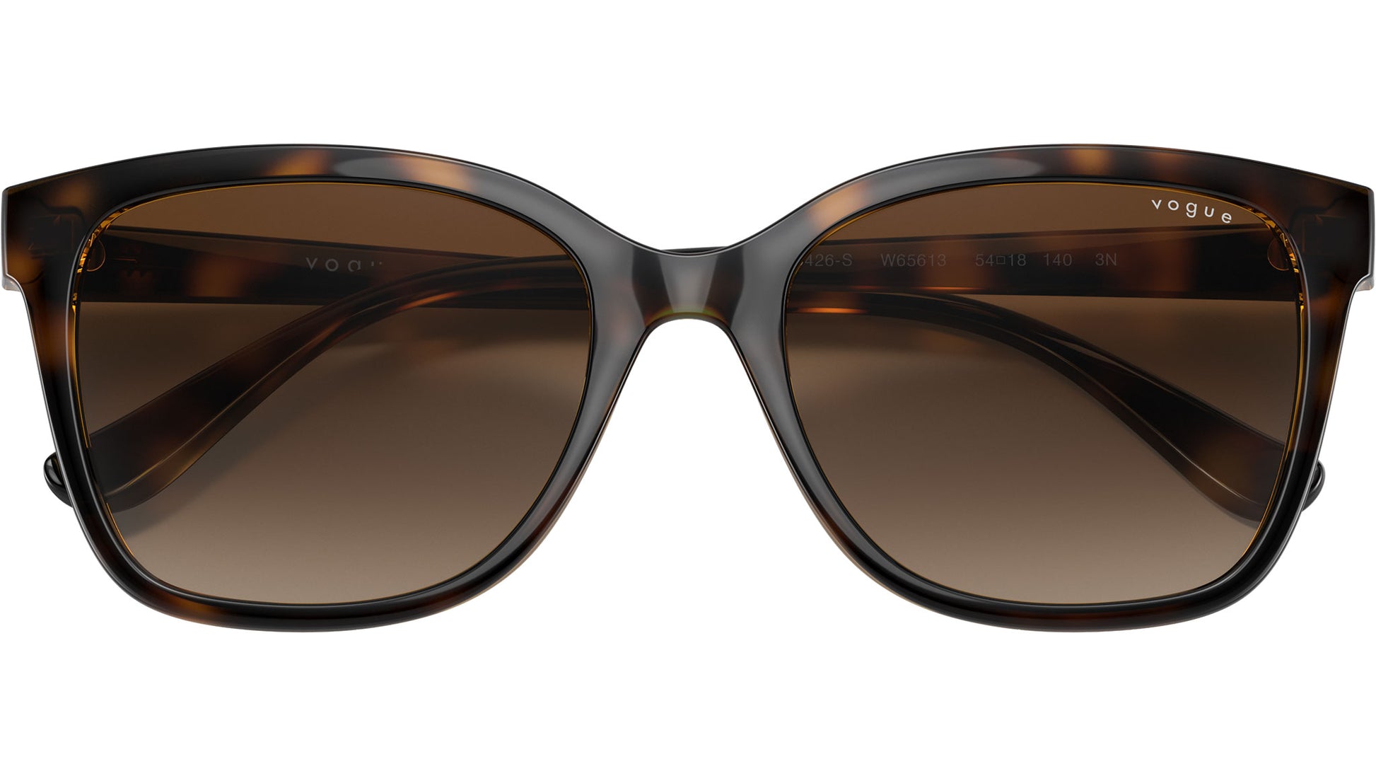 Vogue sunglasses for women model VO5426S W65613 featuring dark havana injection frame and brown gradient base 6 polycarbonate lenses. High bridge fit. Frame line: Evergreen. Brand code: 0VO5426S. Color code: W65613. Authorised Vogue Eyewear Online Reseller. Your glasses will come including the original case and accessories and will be covered by 12 month global warranty.