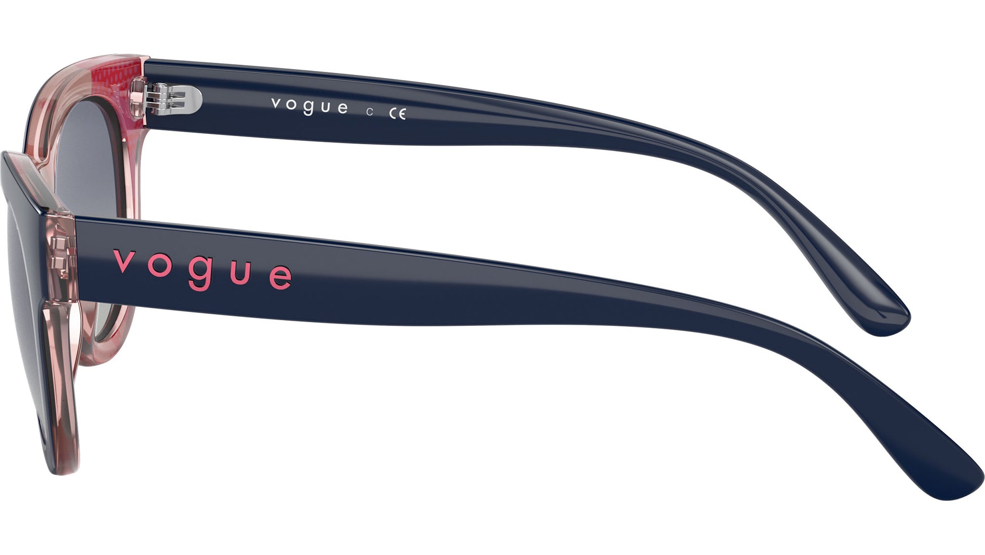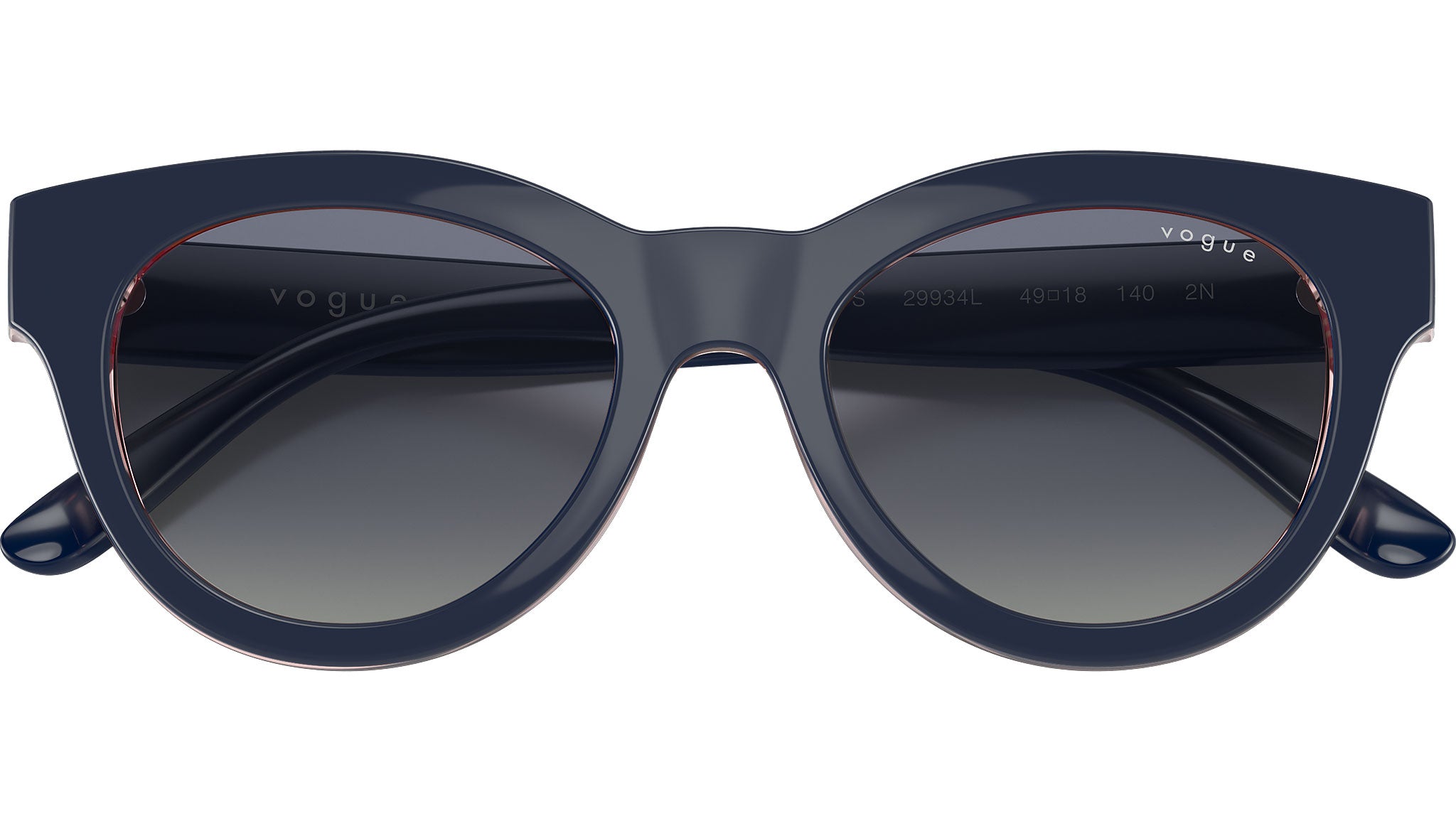 Vogue sunglasses for women model VO5429S 29934L featuring top dark blue / serigraphy injection frame and grey gradient dark blue base 6 polycarbonate lenses. High bridge fit. Frame line: In Vogue. Brand code: 0VO5429S. Color code: 29934L. Authorised Vogue Eyewear Online Reseller. Your glasses will come including the original case and accessories and will be covered by 12 month global warranty.