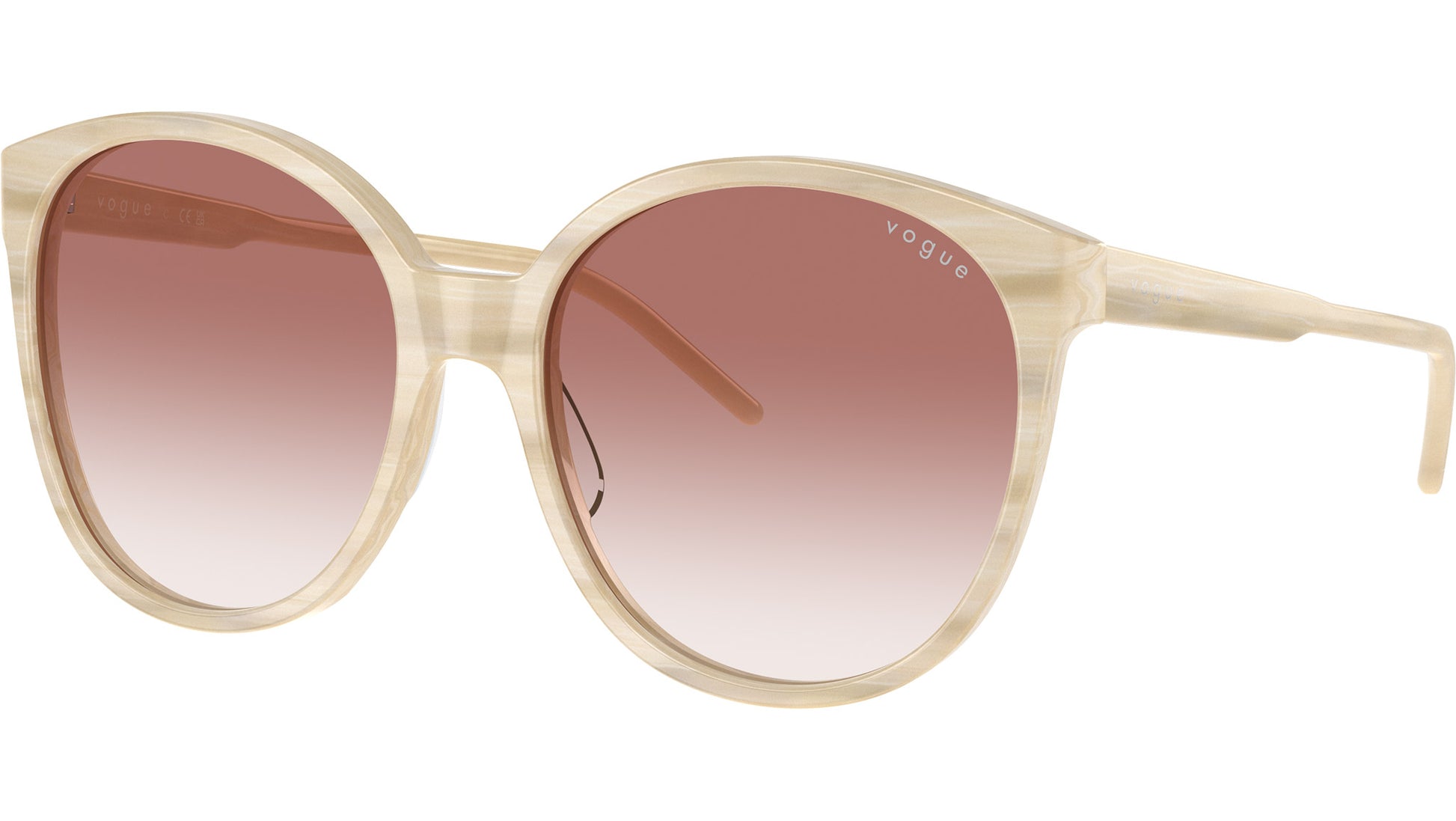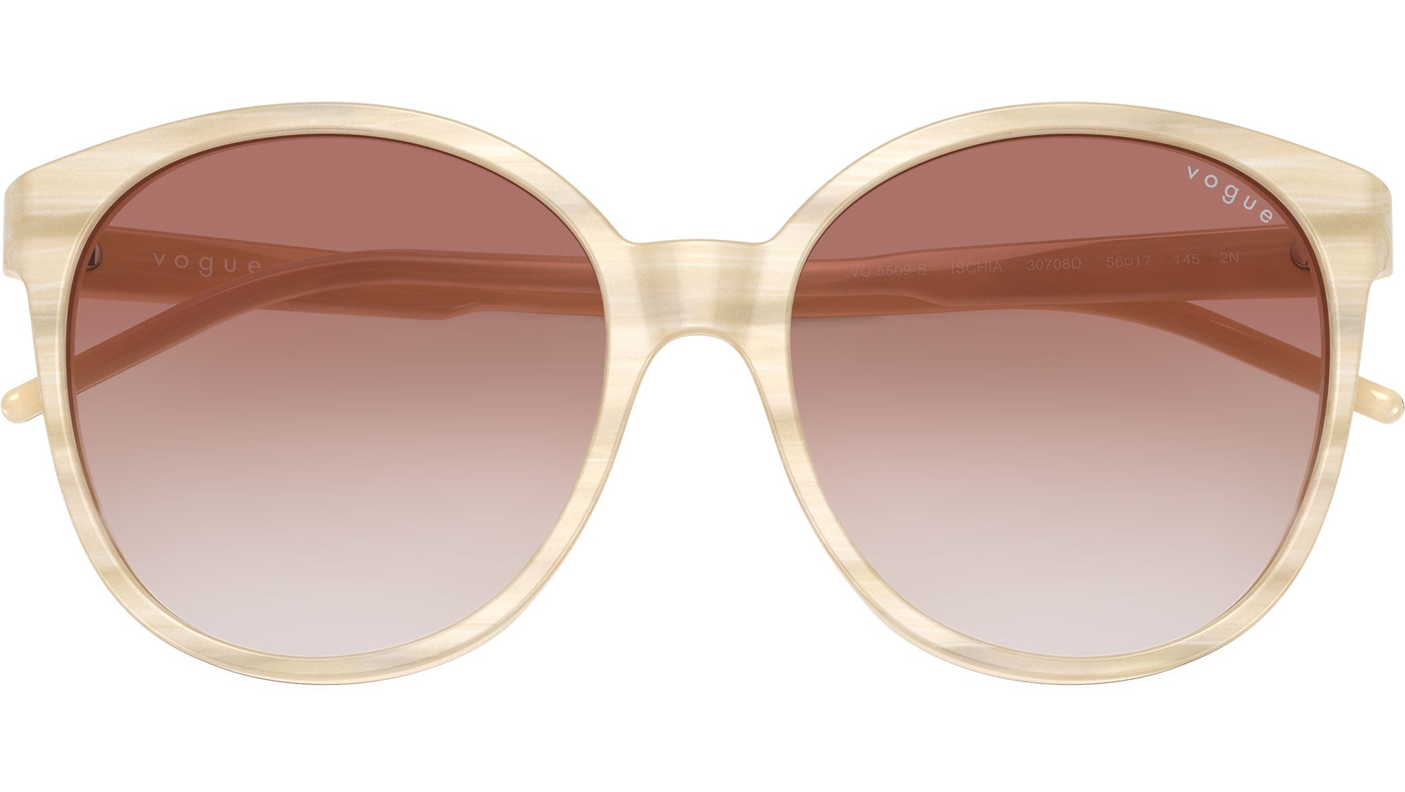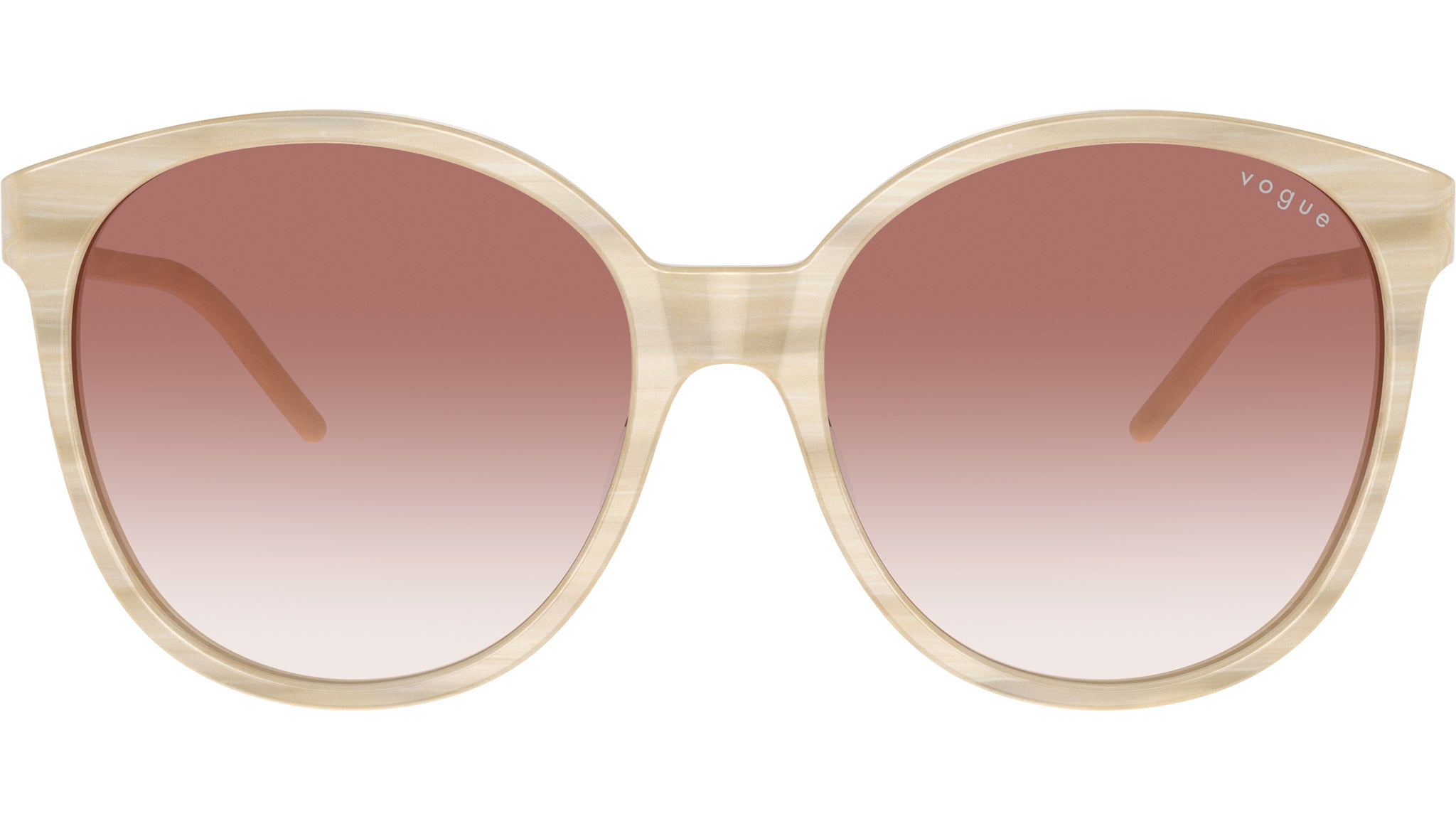 Vogue sunglasses for women model VO5509S 30708D featuring beige horn acetate frame and clear gradient pink base 6 CR-39 lenses. High bridge fit. Frame line: In Vogue. Brand code: 0VO5509S. Color code: 30708D. Authorised Vogue Eyewear Online Reseller. Your glasses will come including the original case and accessories and will be covered by 12 month global warranty.