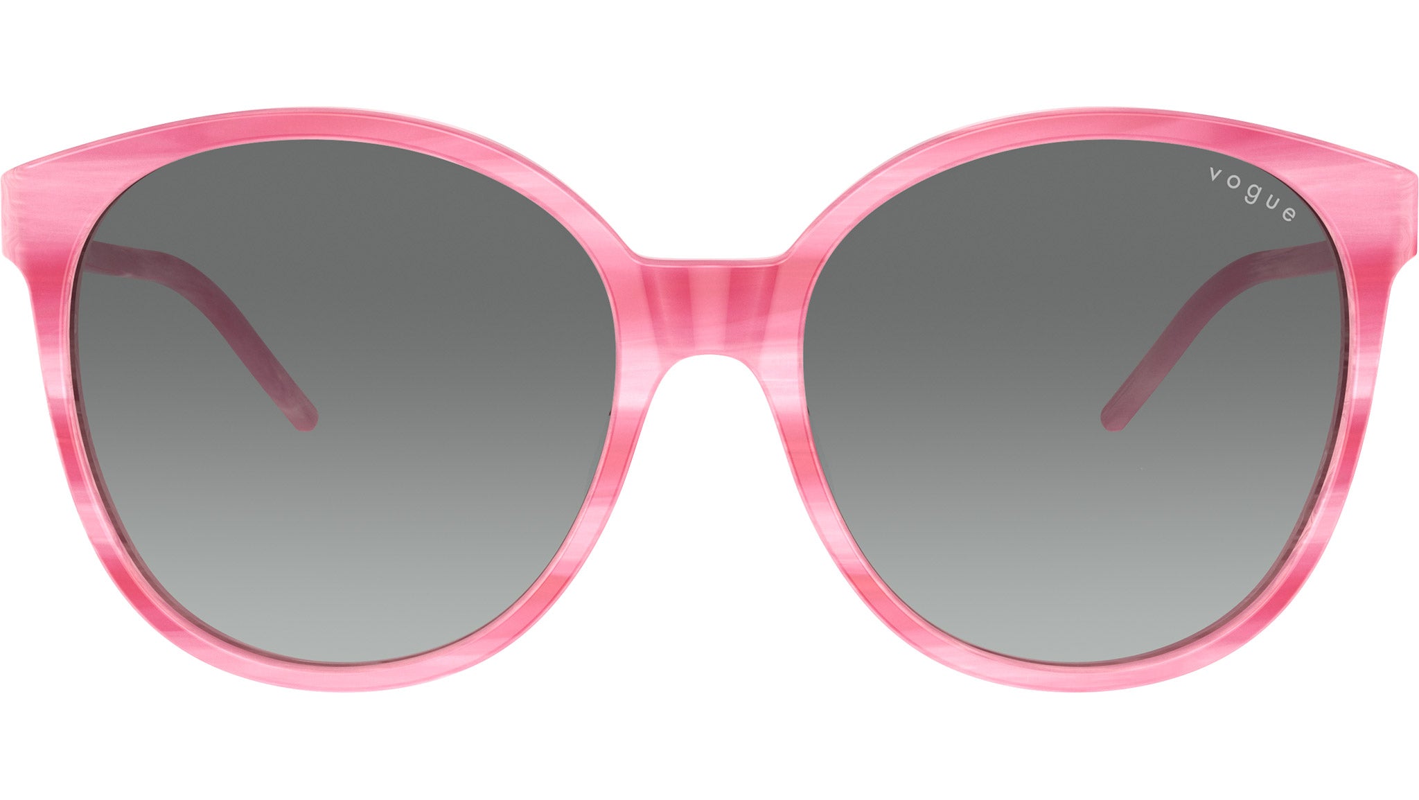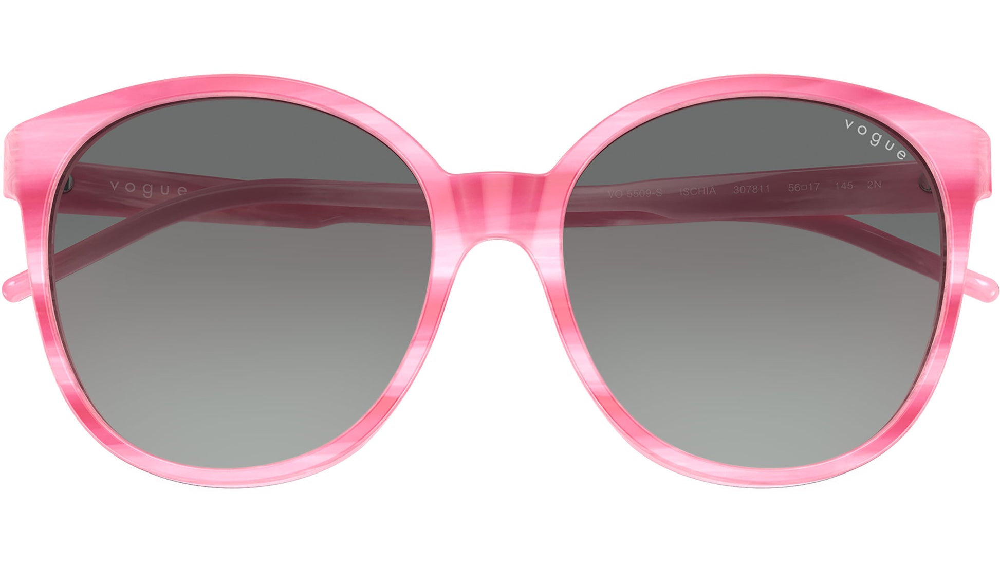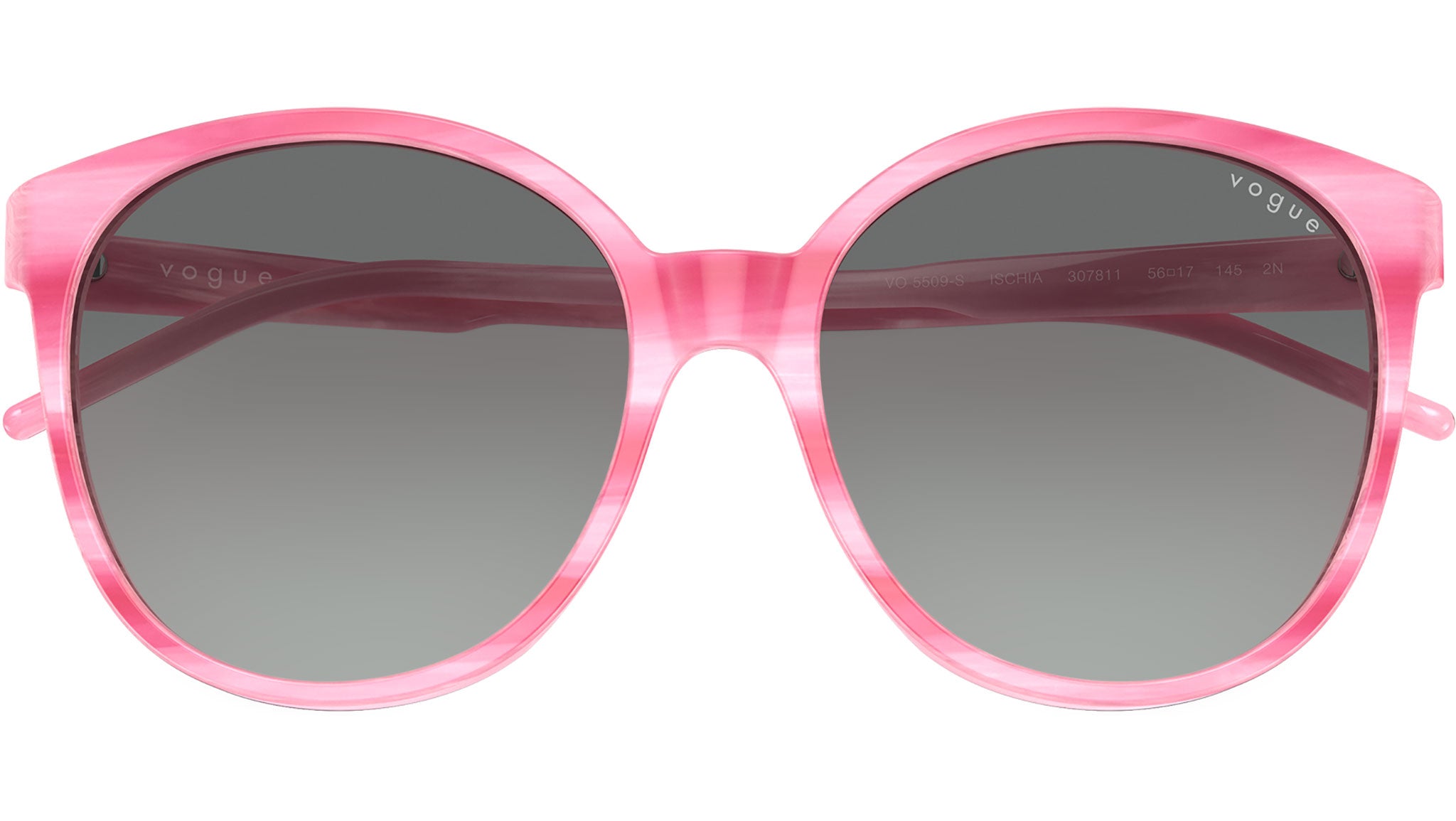 Vogue sunglasses for women model VO5509S 307811 featuring pink horn acetate frame and gradient grey base 6 CR-39 lenses. High bridge fit. Frame line: In Vogue. Brand code: 0VO5509S. Color code: 307811. Authorised Vogue Eyewear Online Reseller. Your glasses will come including the original case and accessories and will be covered by 12 month global warranty.