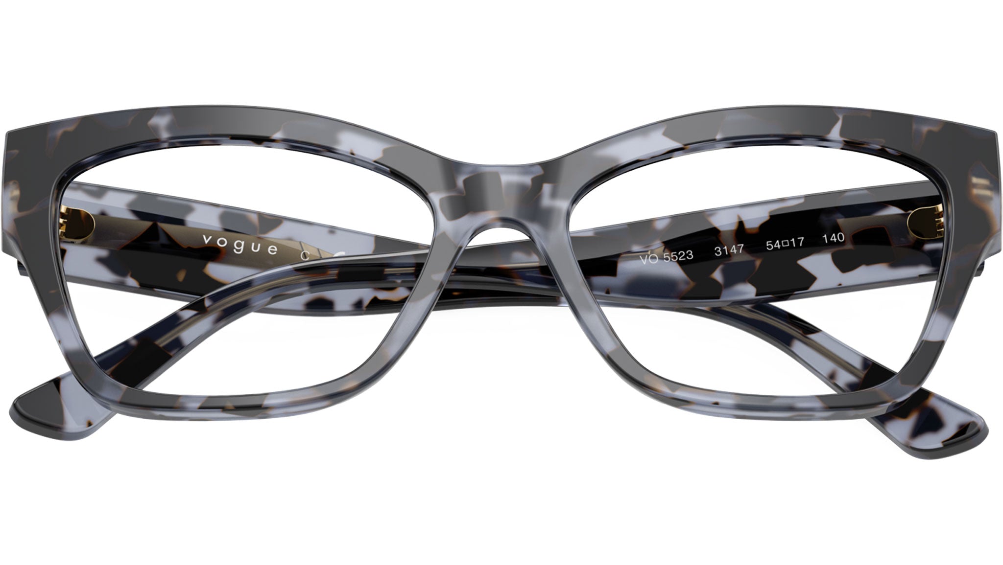 Vogue glasses for women model VO5523 3147 featuring blue tortoise acetate frame and base 4 demo lens. High bridge fit. Frame line: Forerunner. Brand code: 0VO5523. Color code: 3147. Authorised Vogue Eyewear Online Reseller. Your glasses will come including the original case and accessories and will be covered by 12 month global warranty.