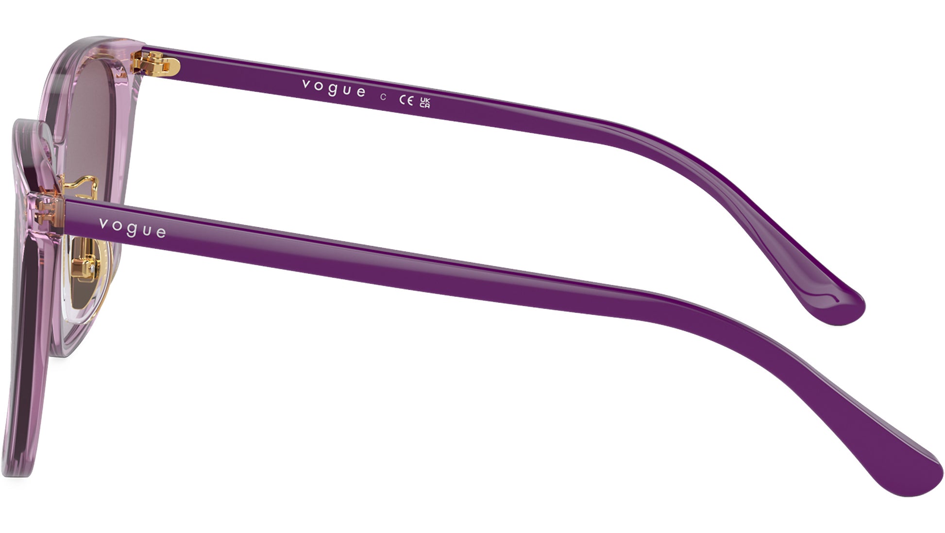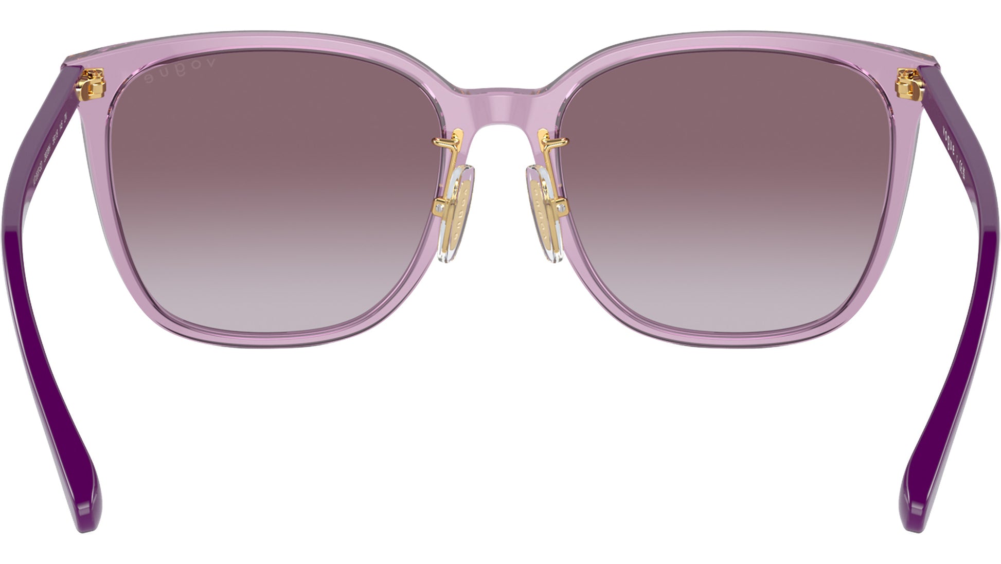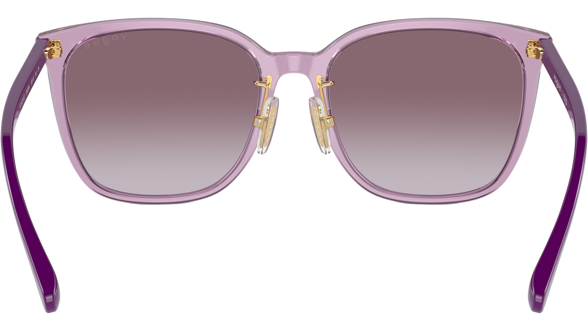 Vogue sunglasses for women model VO5537SD 29228H featuring transparent violet acetate frame and violet gradient base 4 CR-39 lenses. Low bridge fit. Frame line: In Vogue. Brand code: 0VO5537SD. Color code: 29228H. Authorised Vogue Eyewear Online Reseller. Your glasses will come including the original case and accessories and will be covered by 12 month global warranty.