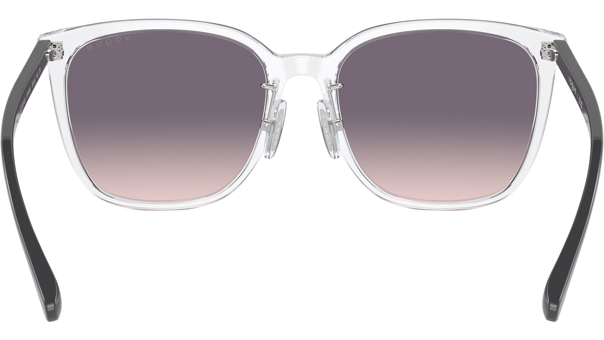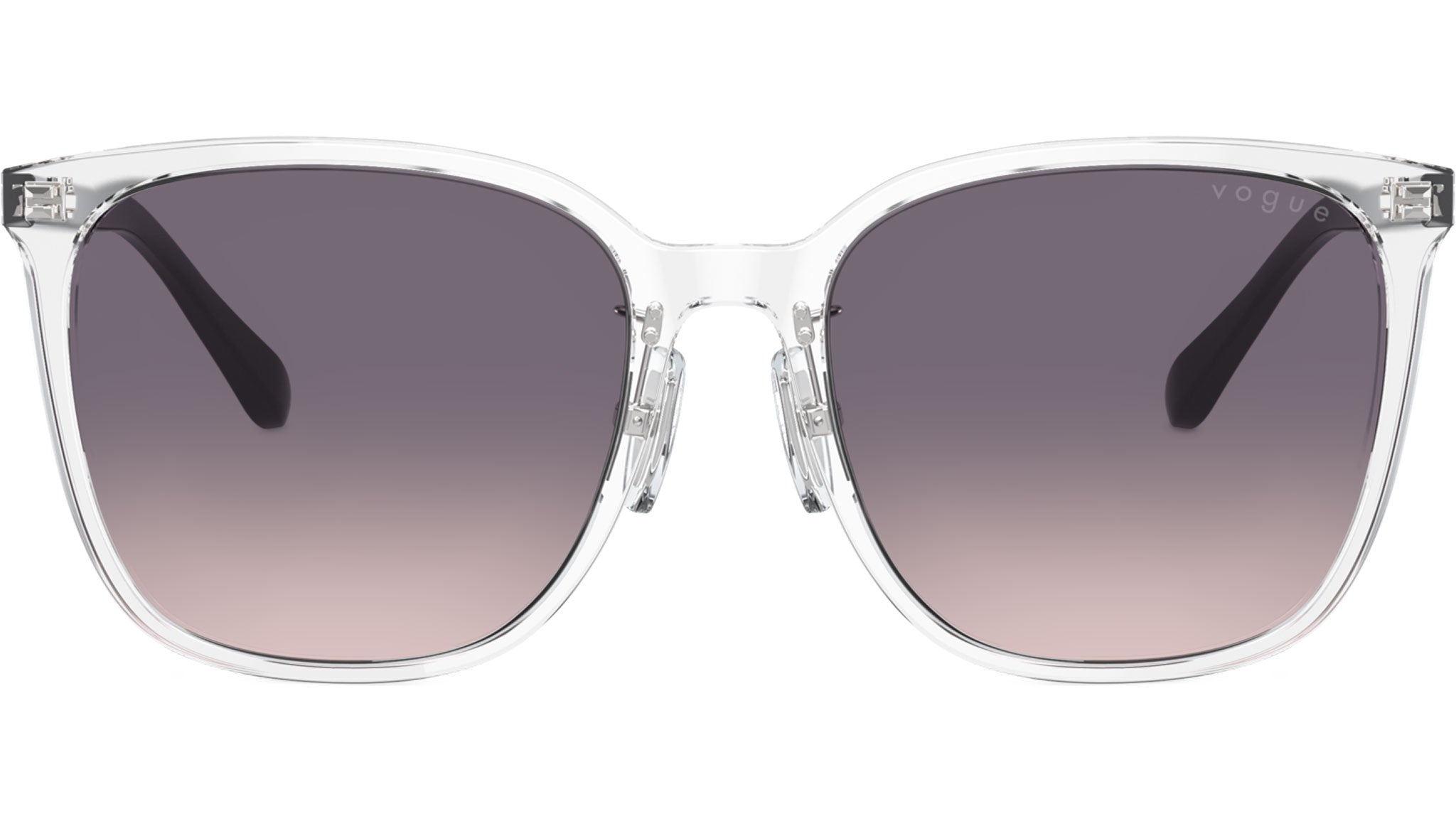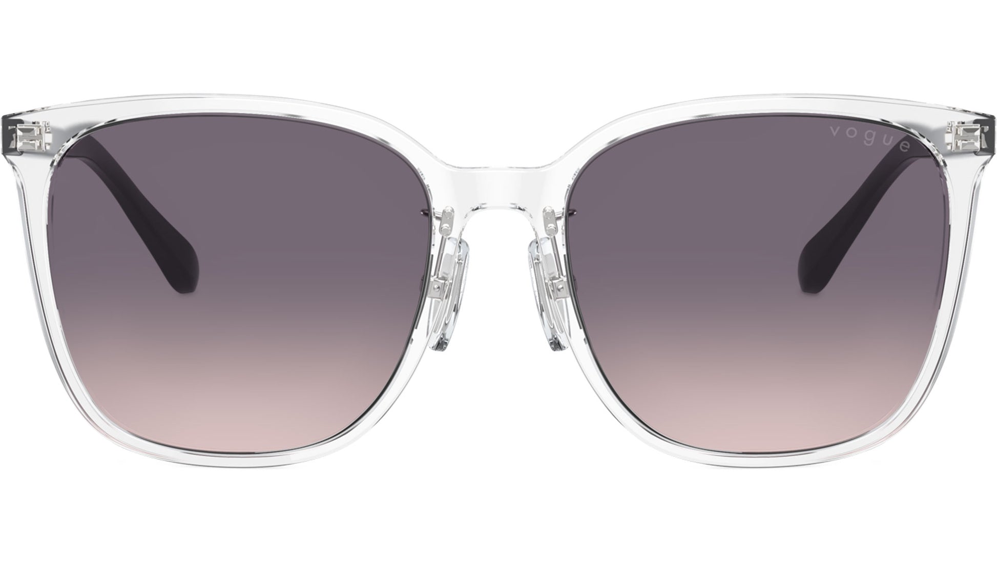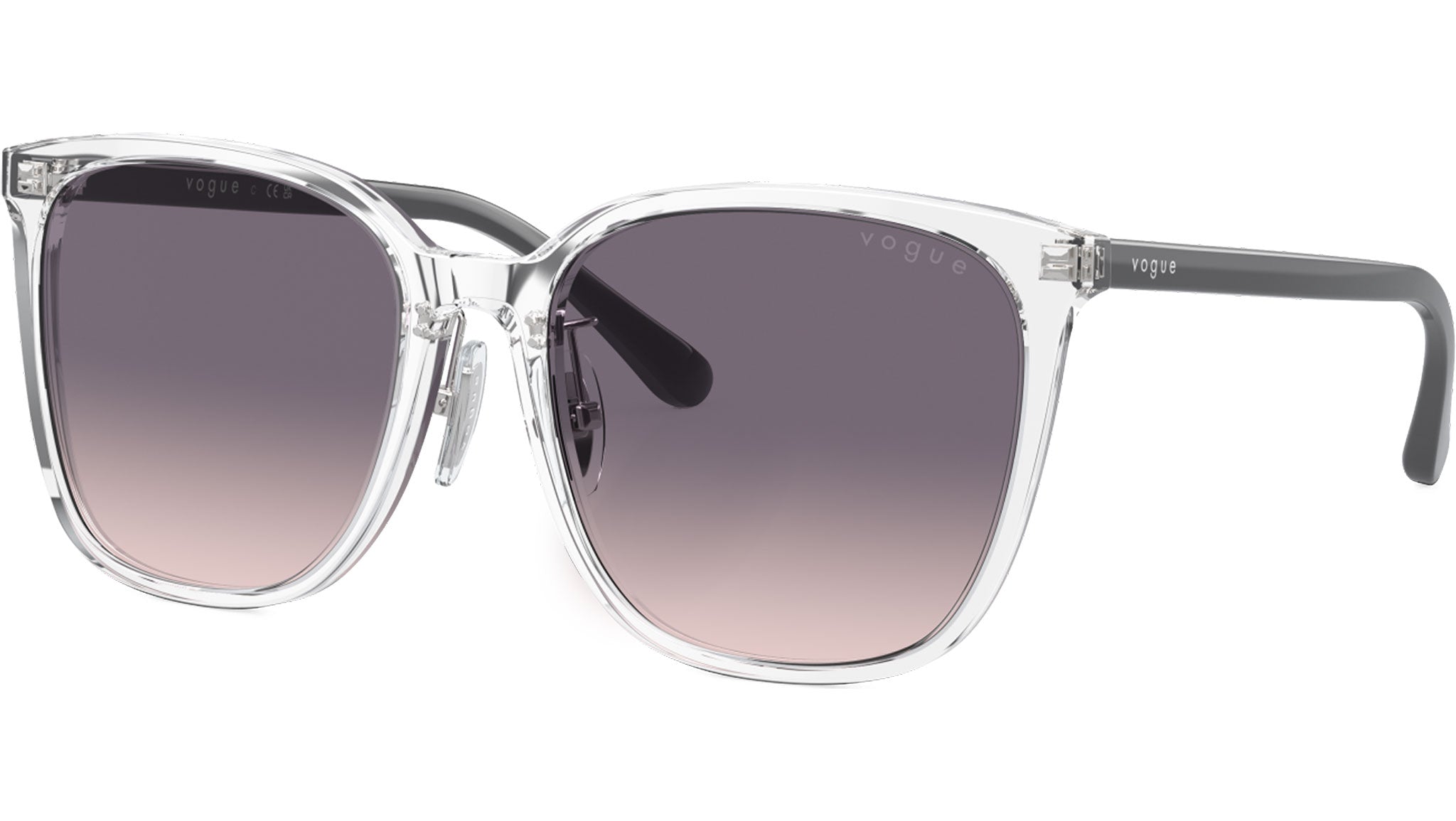 Vogue sunglasses for women model VO5537SD W74536 featuring transparent acetate frame and pink gradient dark violet base 4 CR-39 lenses. Low bridge fit. Frame line: In Vogue. Brand code: 0VO5537SD. Color code: W74536. Authorised Vogue Eyewear Online Reseller. Your glasses will come including the original case and accessories and will be covered by 12 month global warranty.