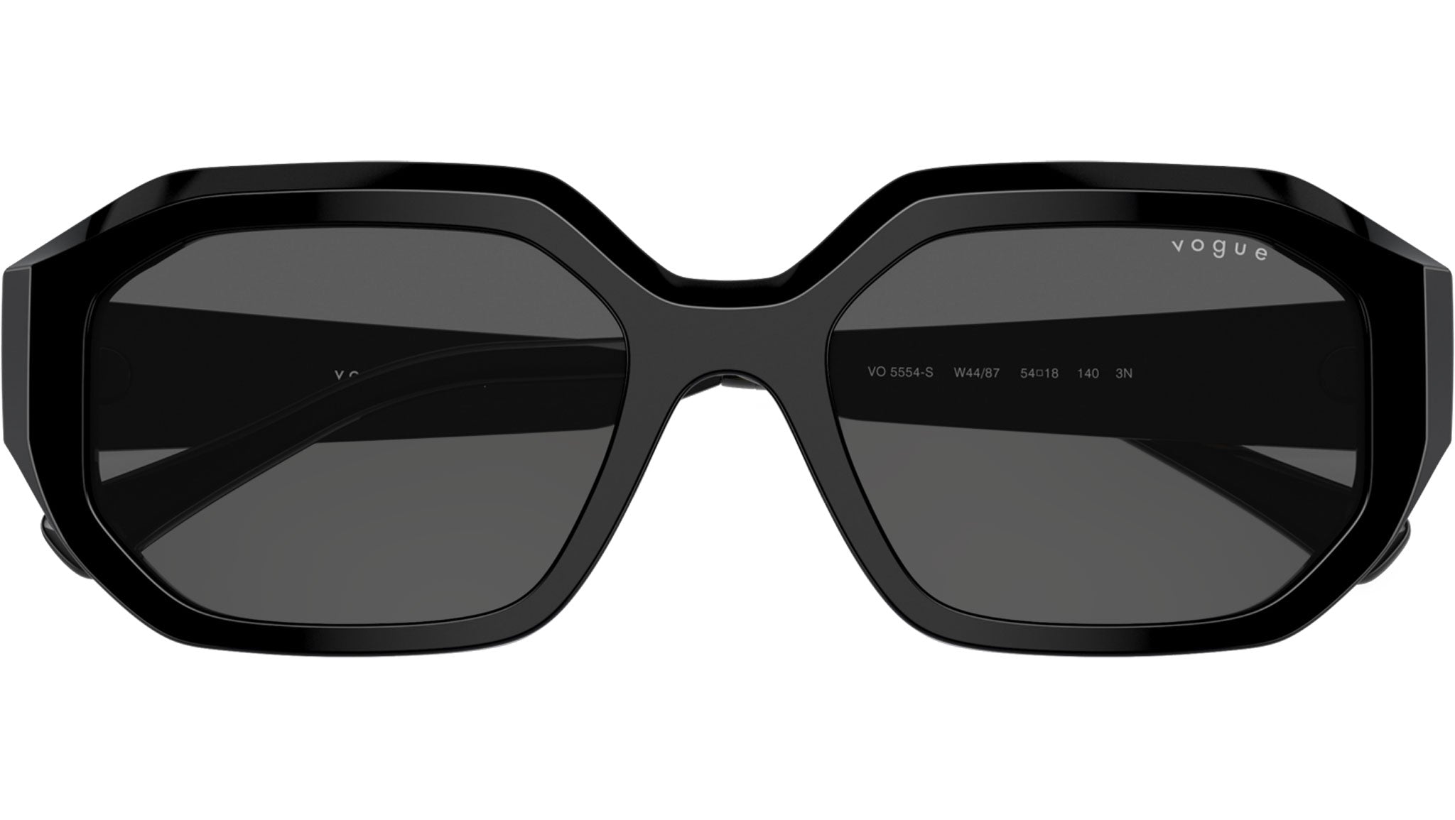 Vogue sunglasses for women model VO5554S W44/87 featuring black acetate frame and dark grey base 6 CR-39 lenses. High bridge fit. Frame line: Forerunner. Brand code: 0VO5554S. Color code: W44/87. Authorised Vogue Eyewear Online Reseller. Your glasses will come including the original case and accessories and will be covered by 12 month global warranty.