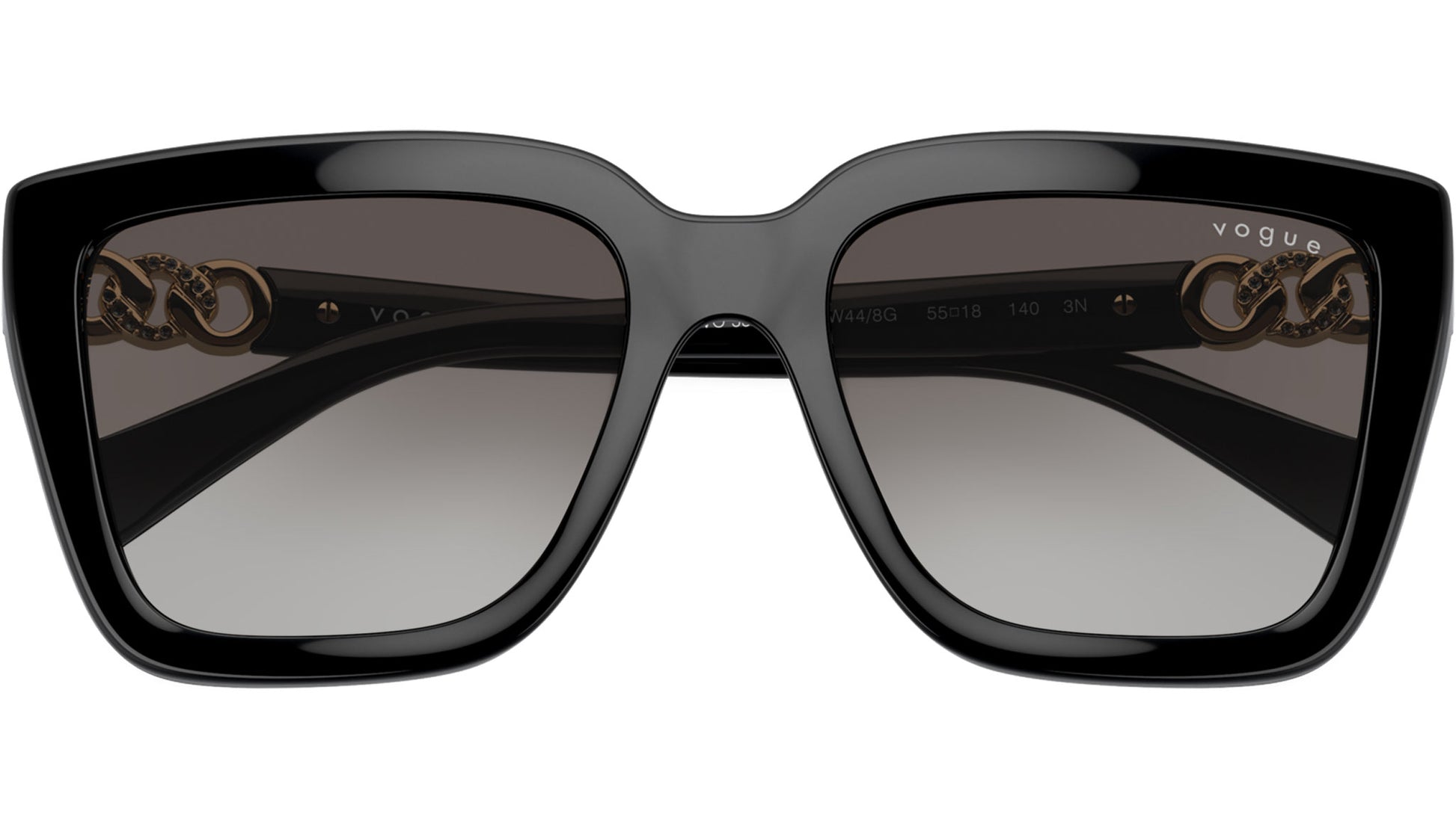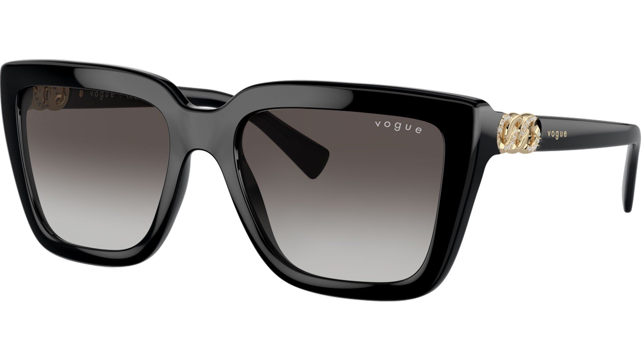 Vogue sunglasses for women model VO5575SB W44/8G featuring black nylon frame and grey gradient black base 6 polycarbonate lenses. High bridge fit. Frame line: Evergreen. Brand code: 0VO5575SB. Color code: W44/8G. Authorised Vogue Eyewear Online Reseller. Your glasses will come including the original case and accessories and will be covered by 12 month global warranty.