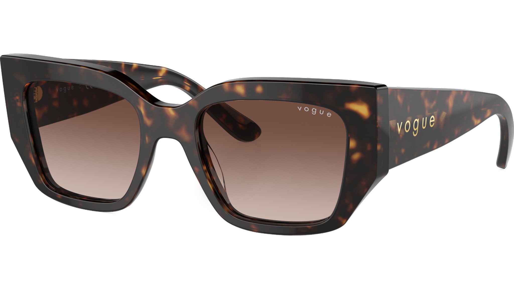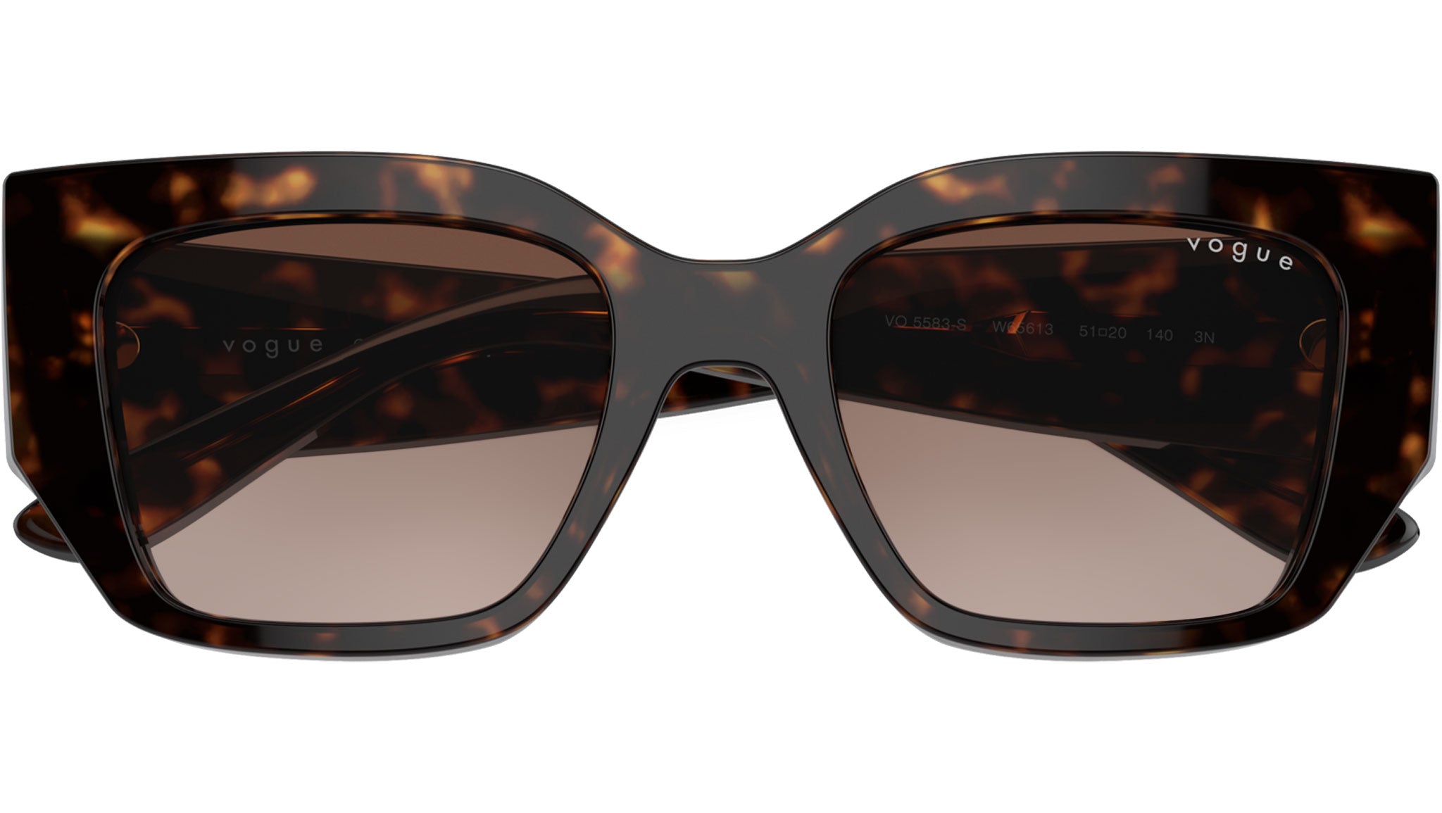Vogue sunglasses for women model VO5583S W65613 featuring dark havana acetate frame and gradient brown base 2 CR-39 lenses. High bridge fit. Frame line: Forerunner. Brand code: 0VO5583S. Color code: W65613. Authorised Vogue Eyewear Online Reseller. Your glasses will come including the original case and accessories and will be covered by 12 month global warranty.